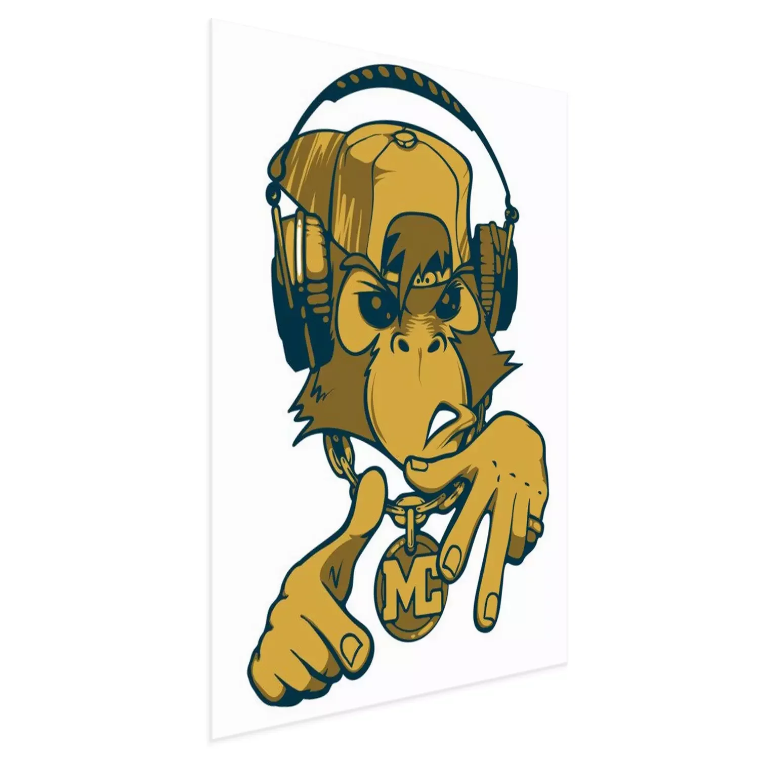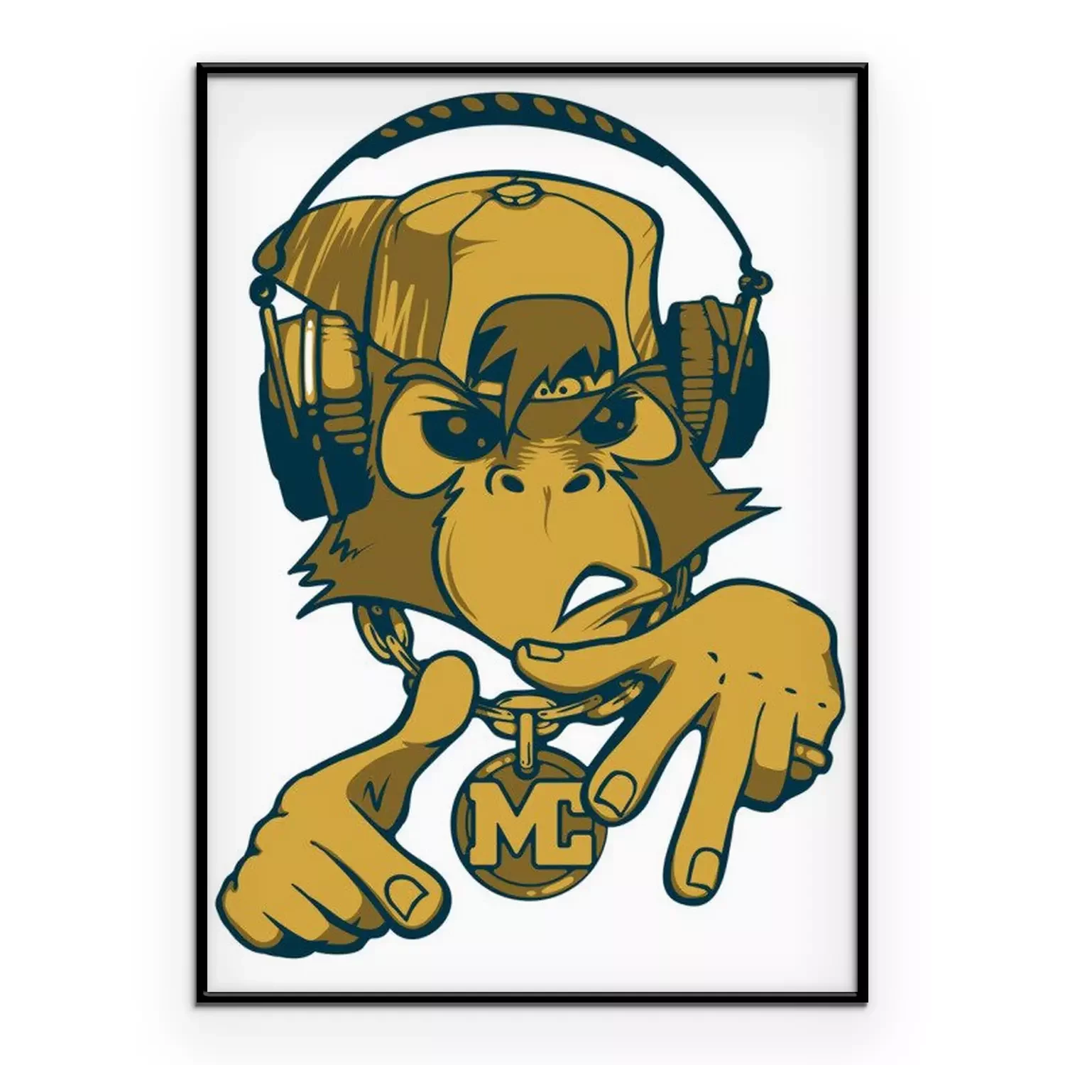 Poster: Monkey rapper. Monkey MC. Chimpansees met een koptelefoon
