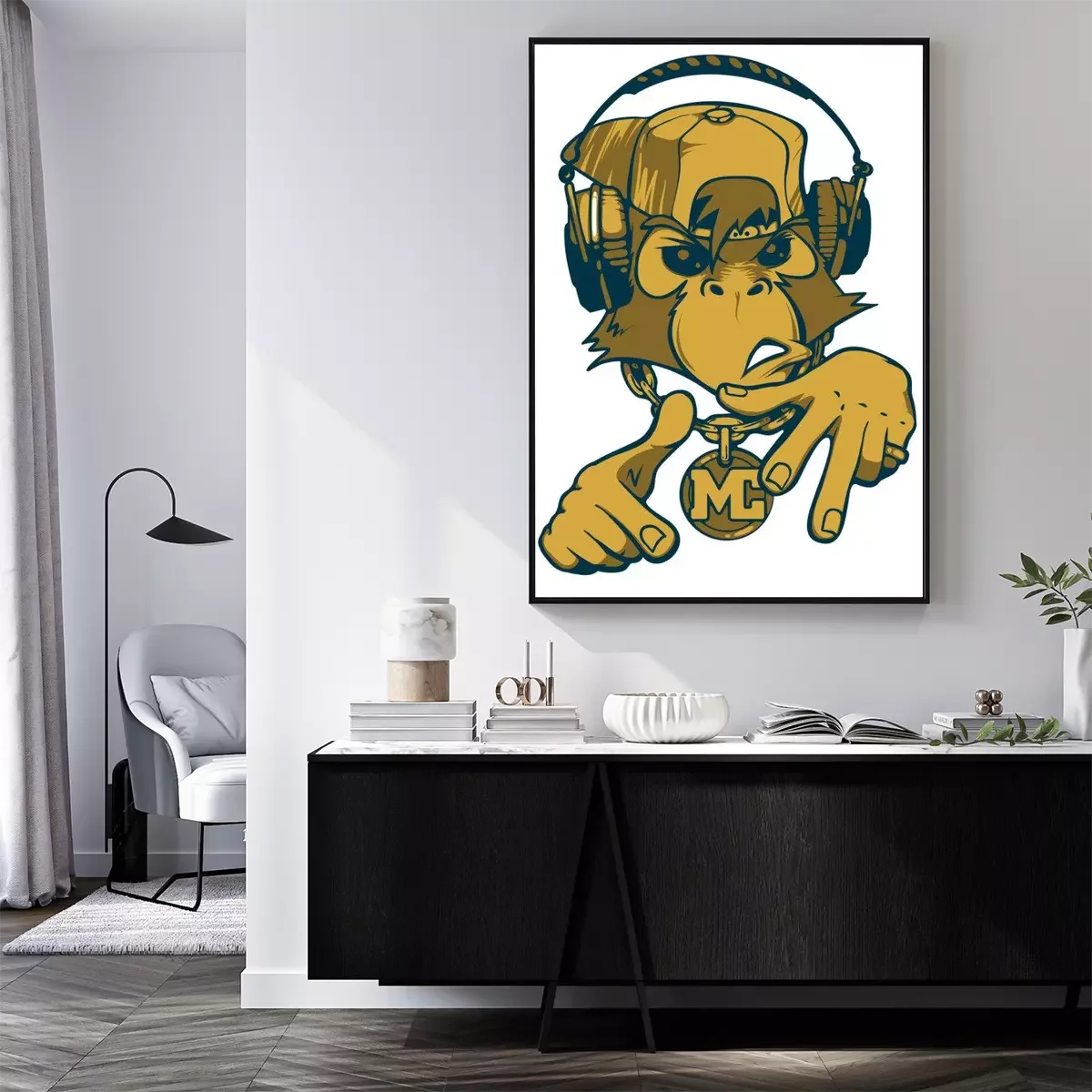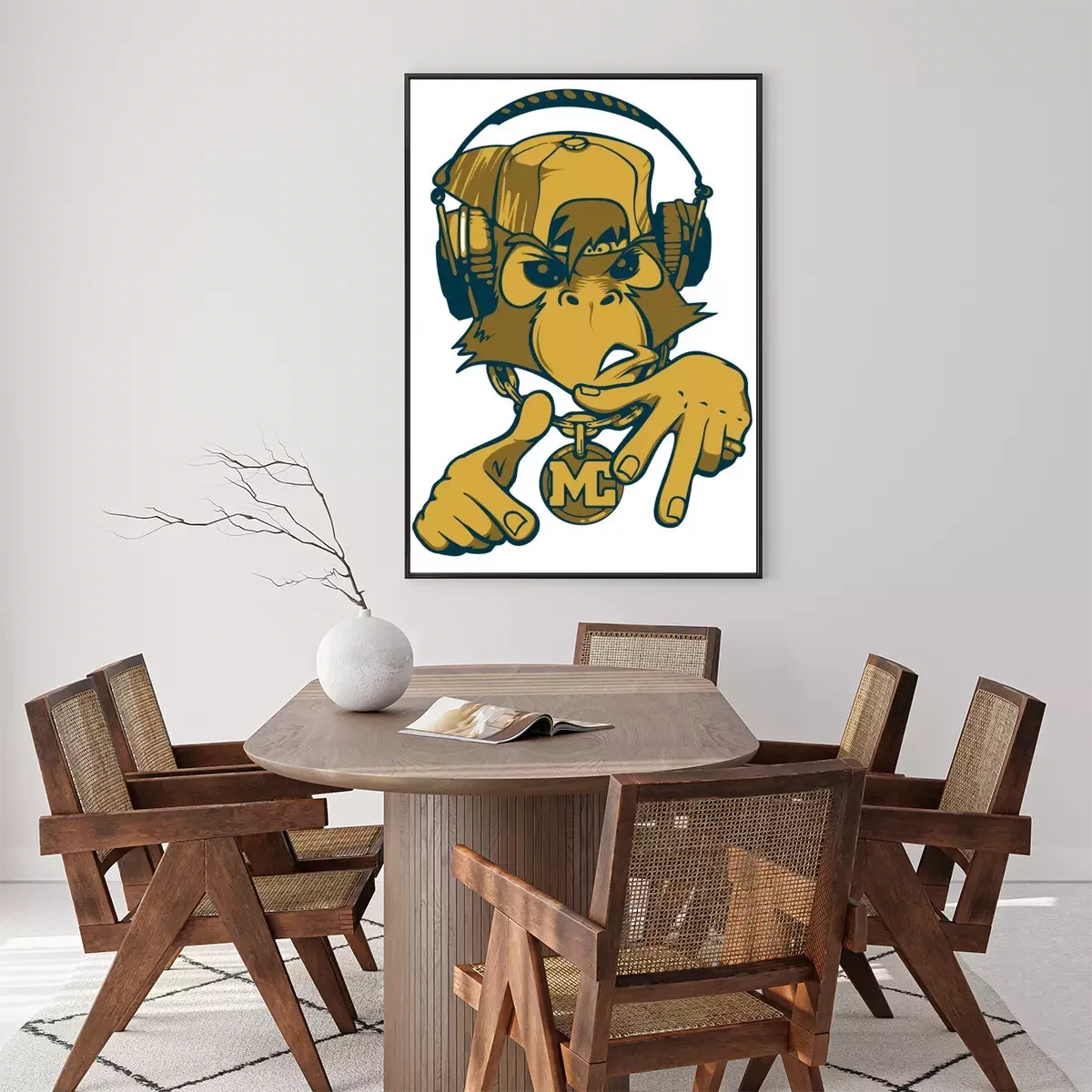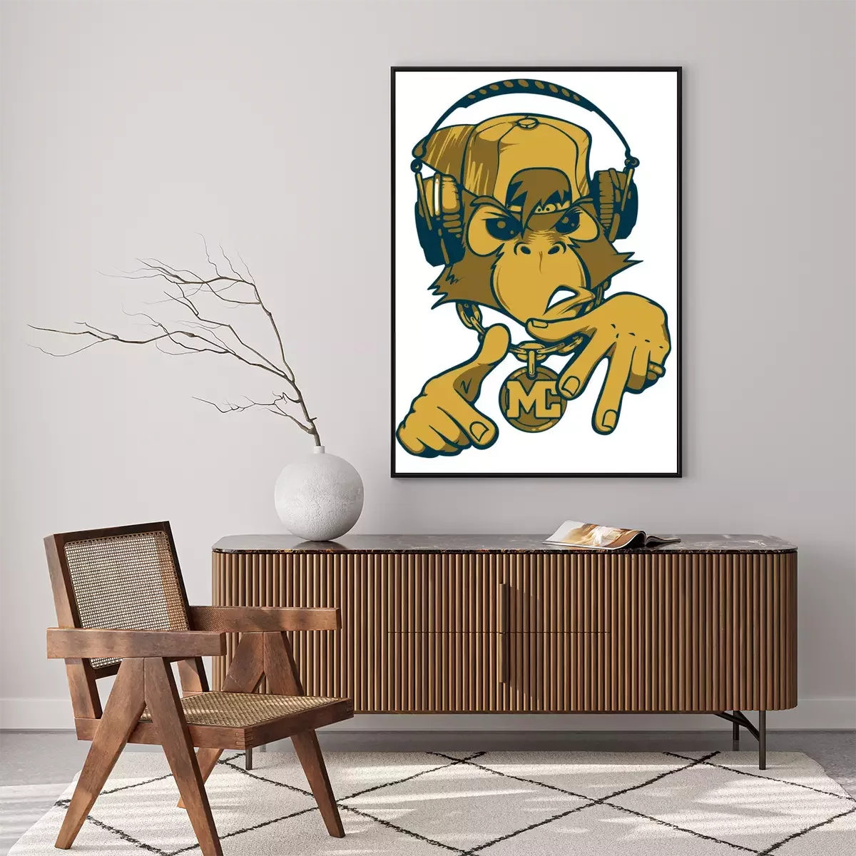 Poster Monkey rapper. Monkey MC. Chimpansees met een koptelefoon