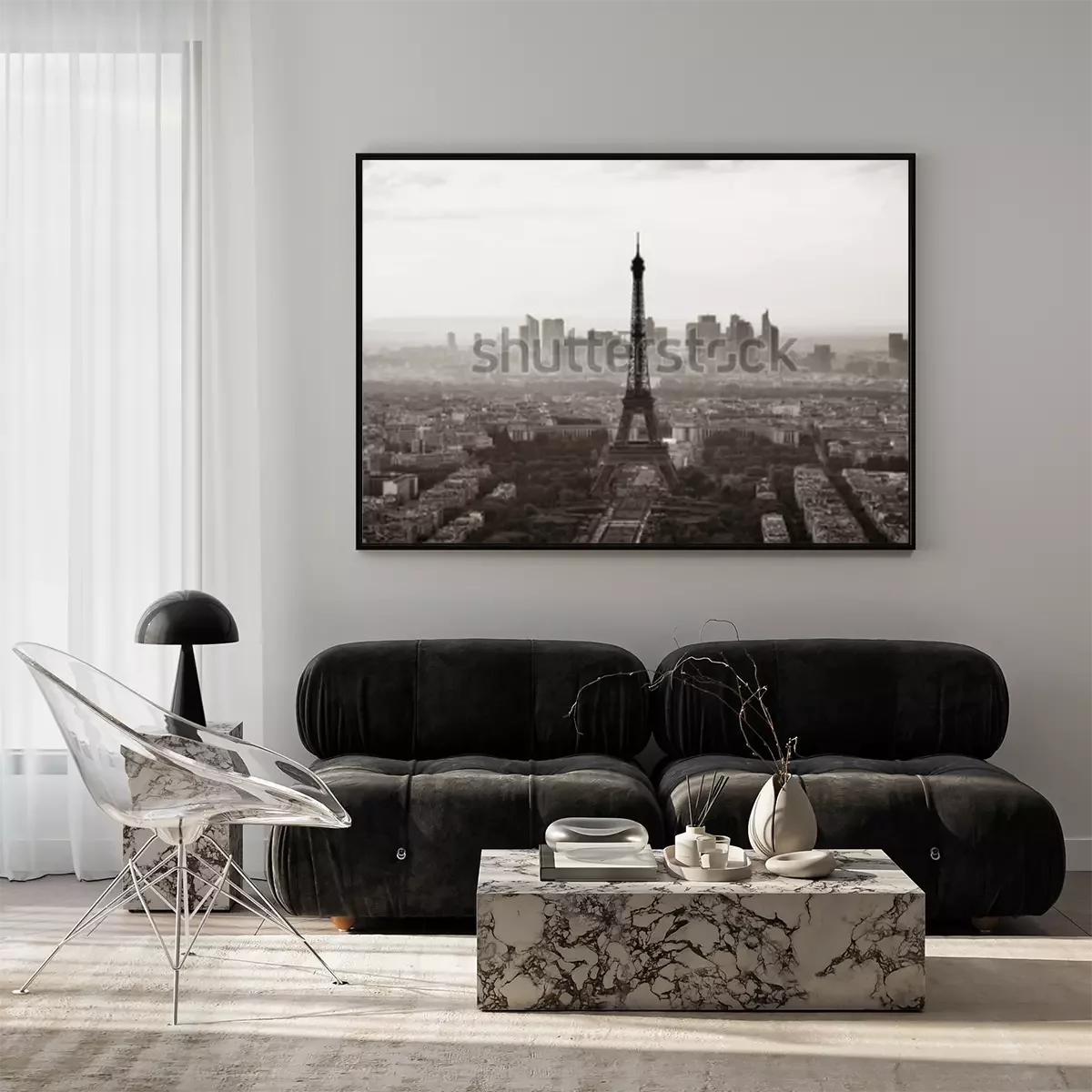 Poster: Monochroom Parijs en de Eiffeltoren