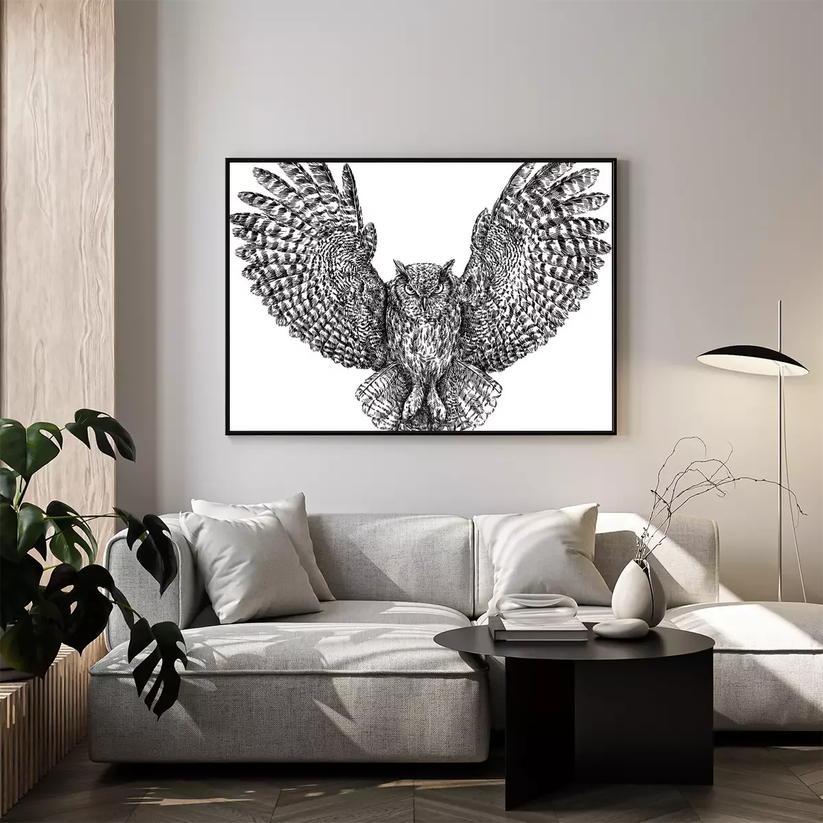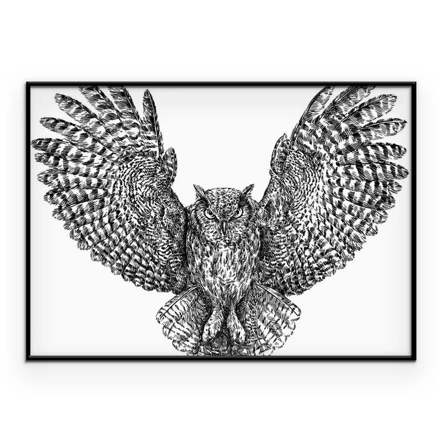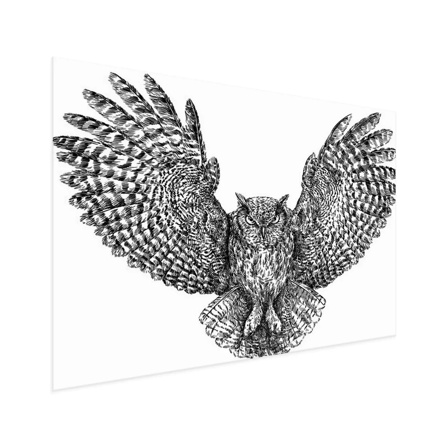 Poster: Monochroom uil tijdens de vlucht