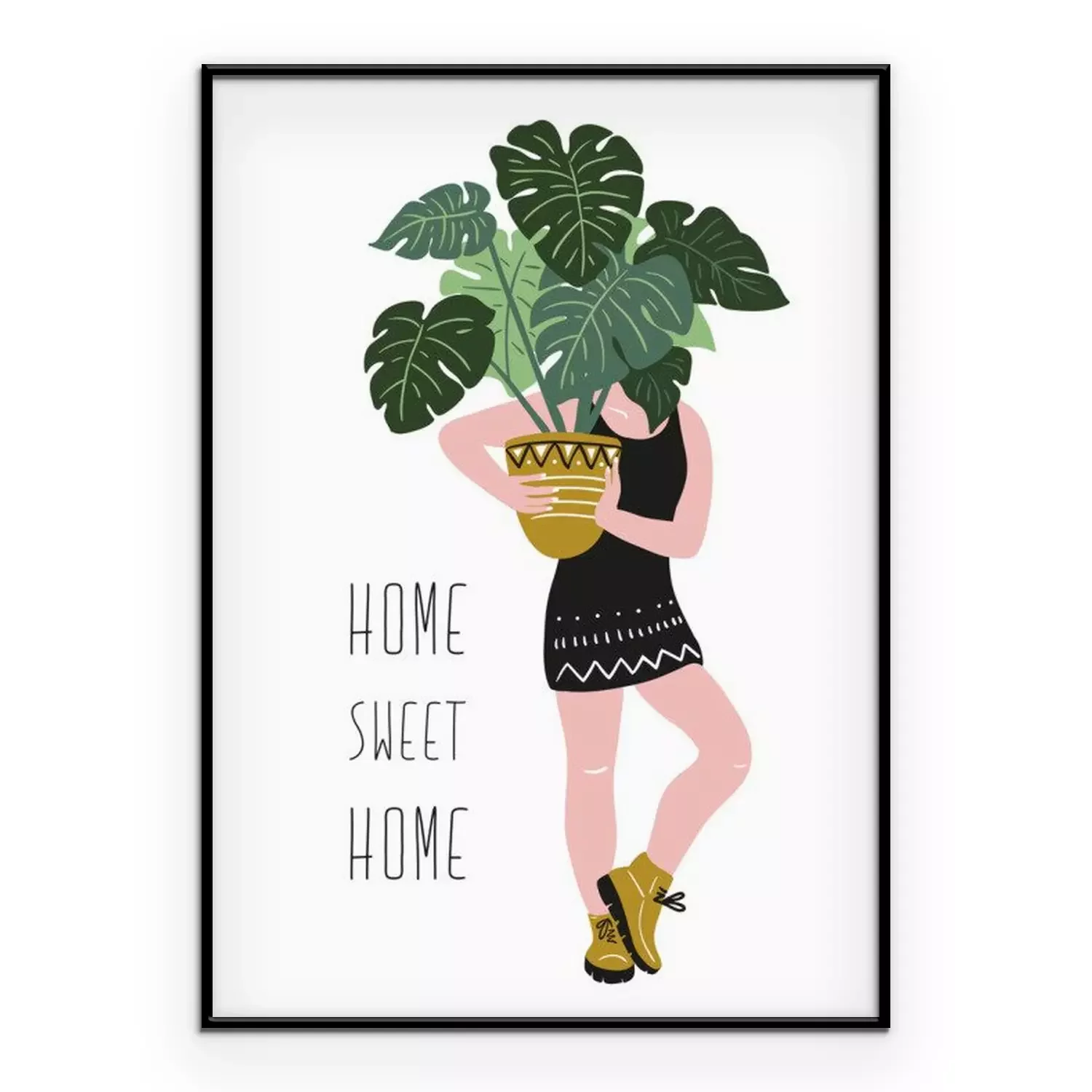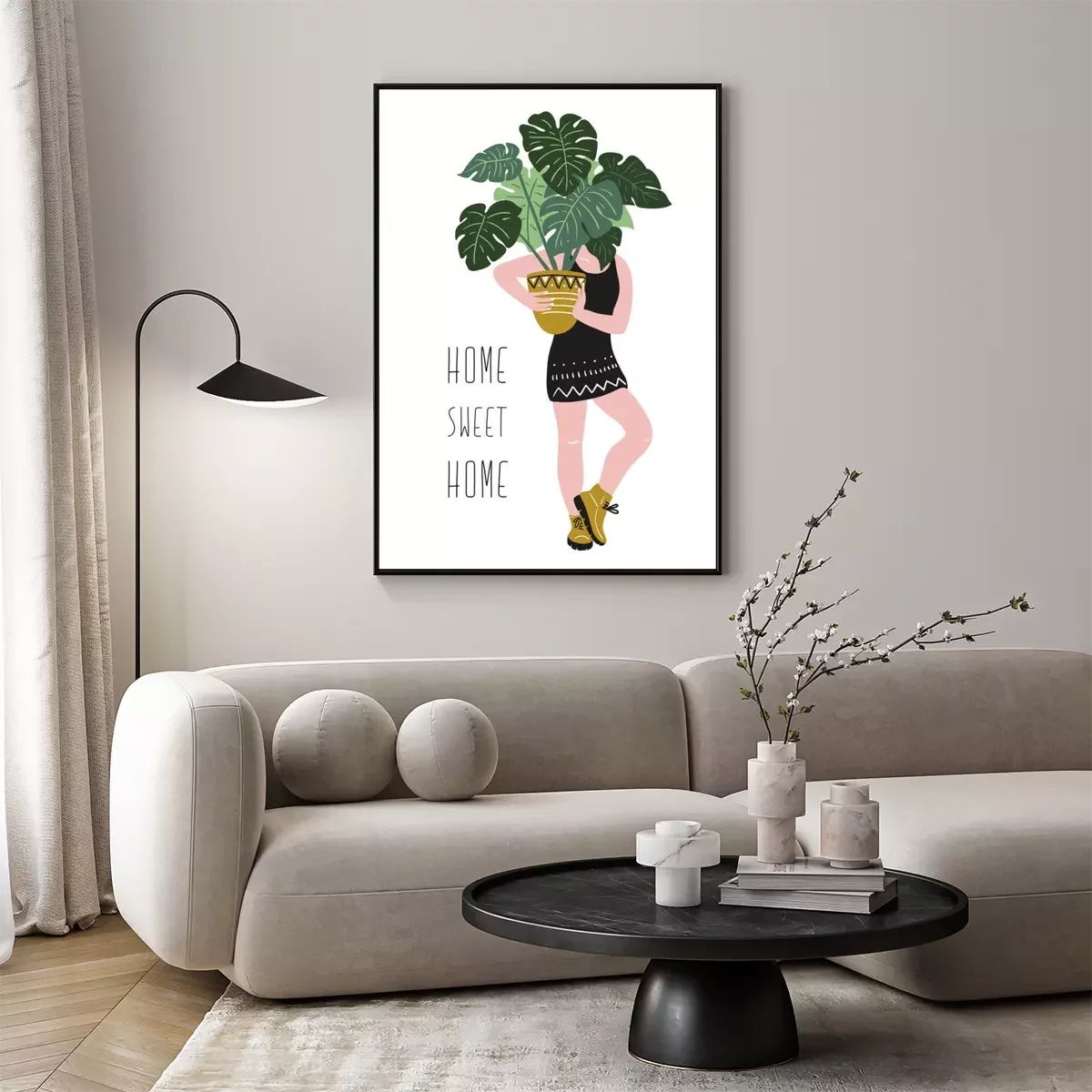 Poster: Monsterabladeren die het vrouwelijke silhouet verdoezelen