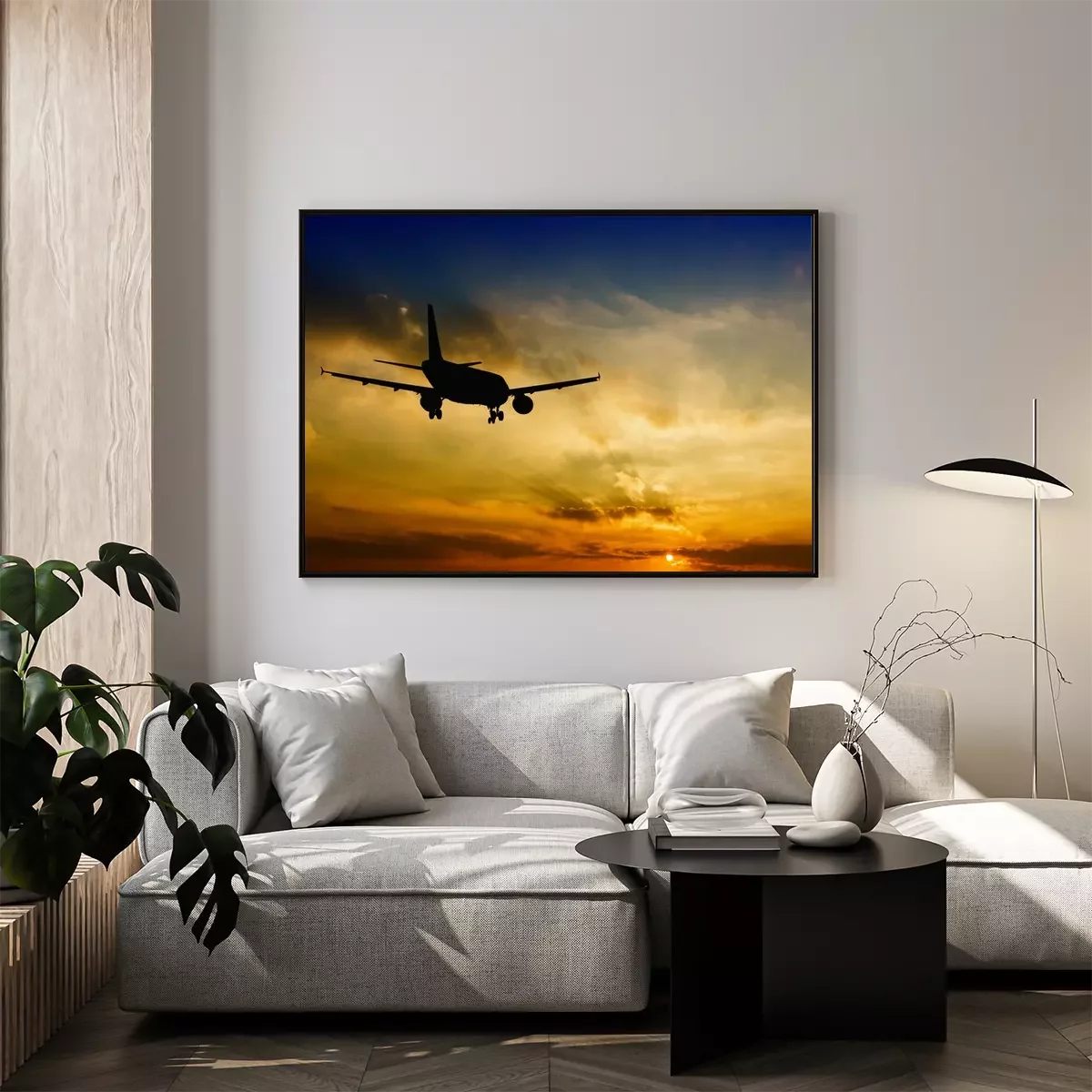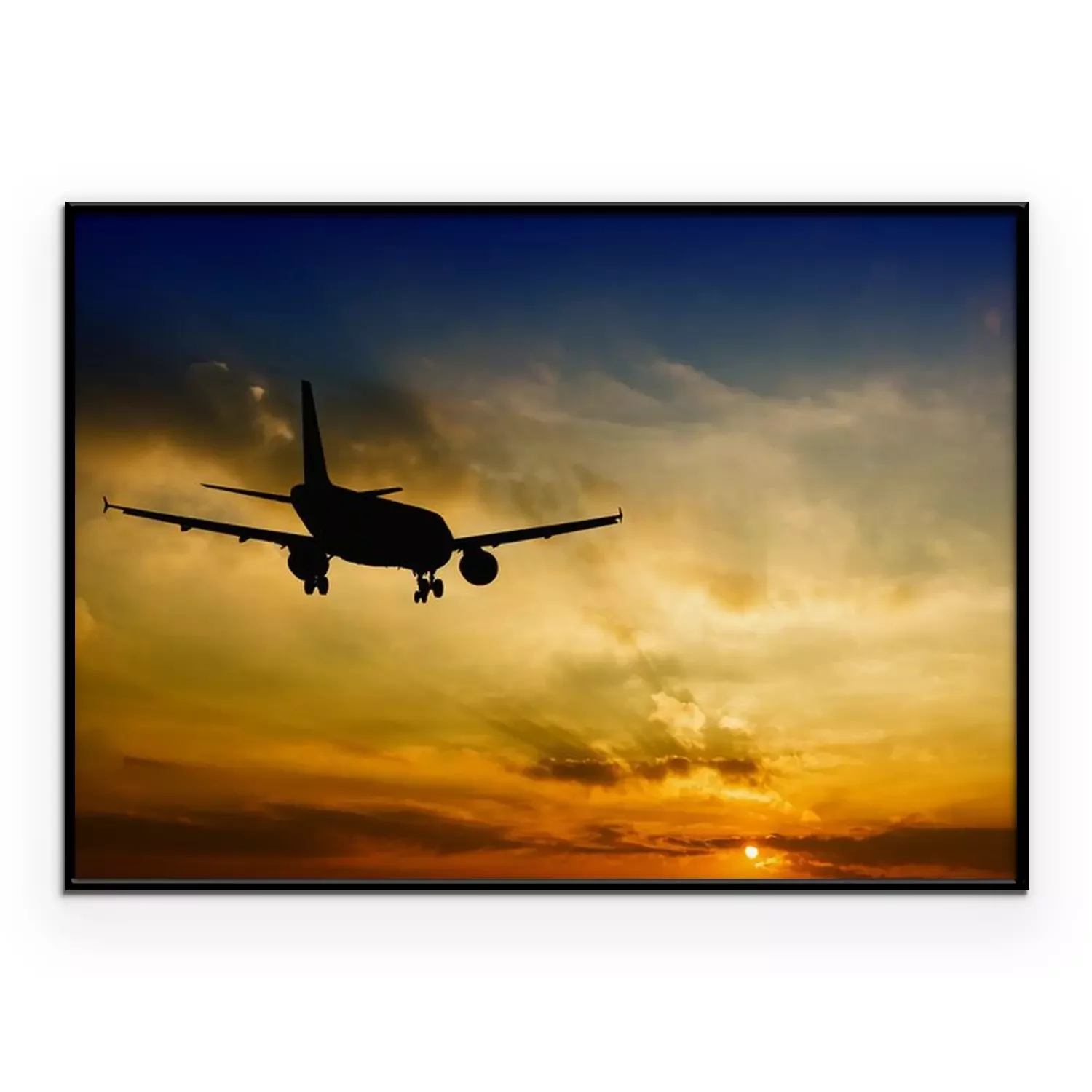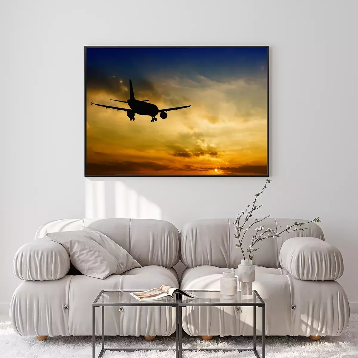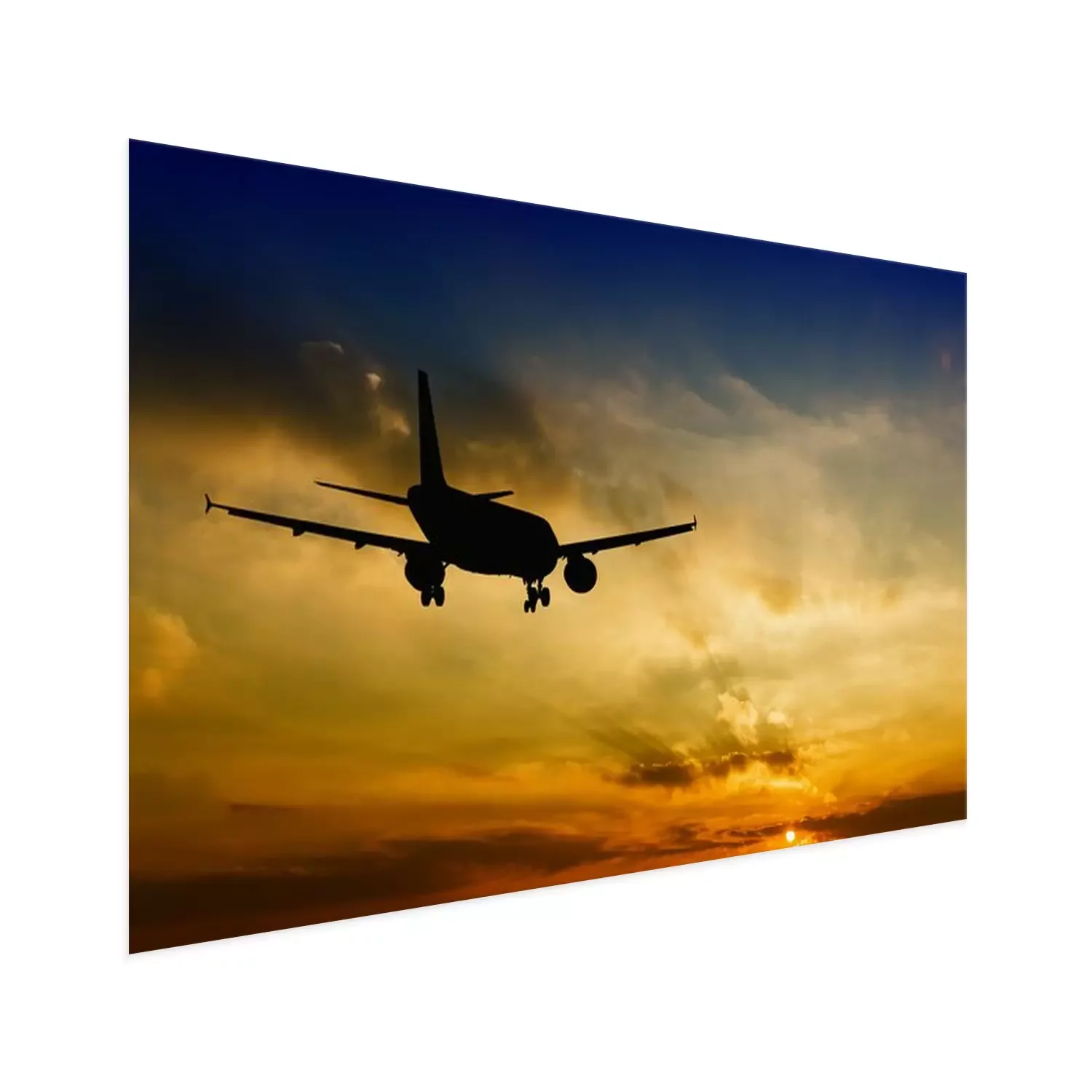 Poster: Mooi uitzicht van het silhouet van vliegtuig