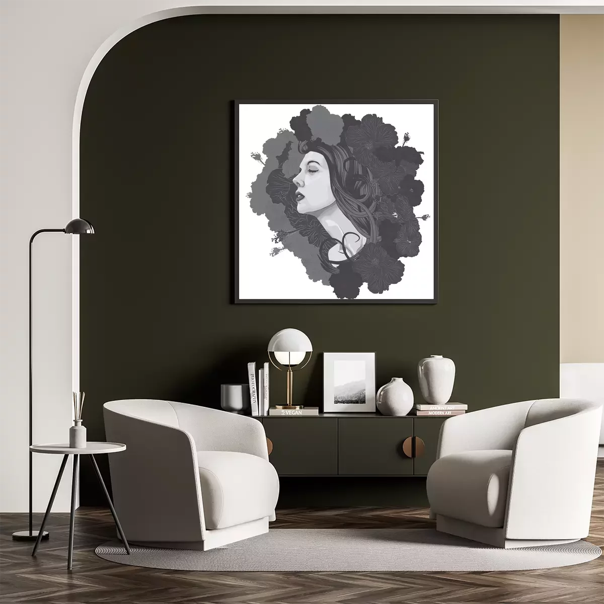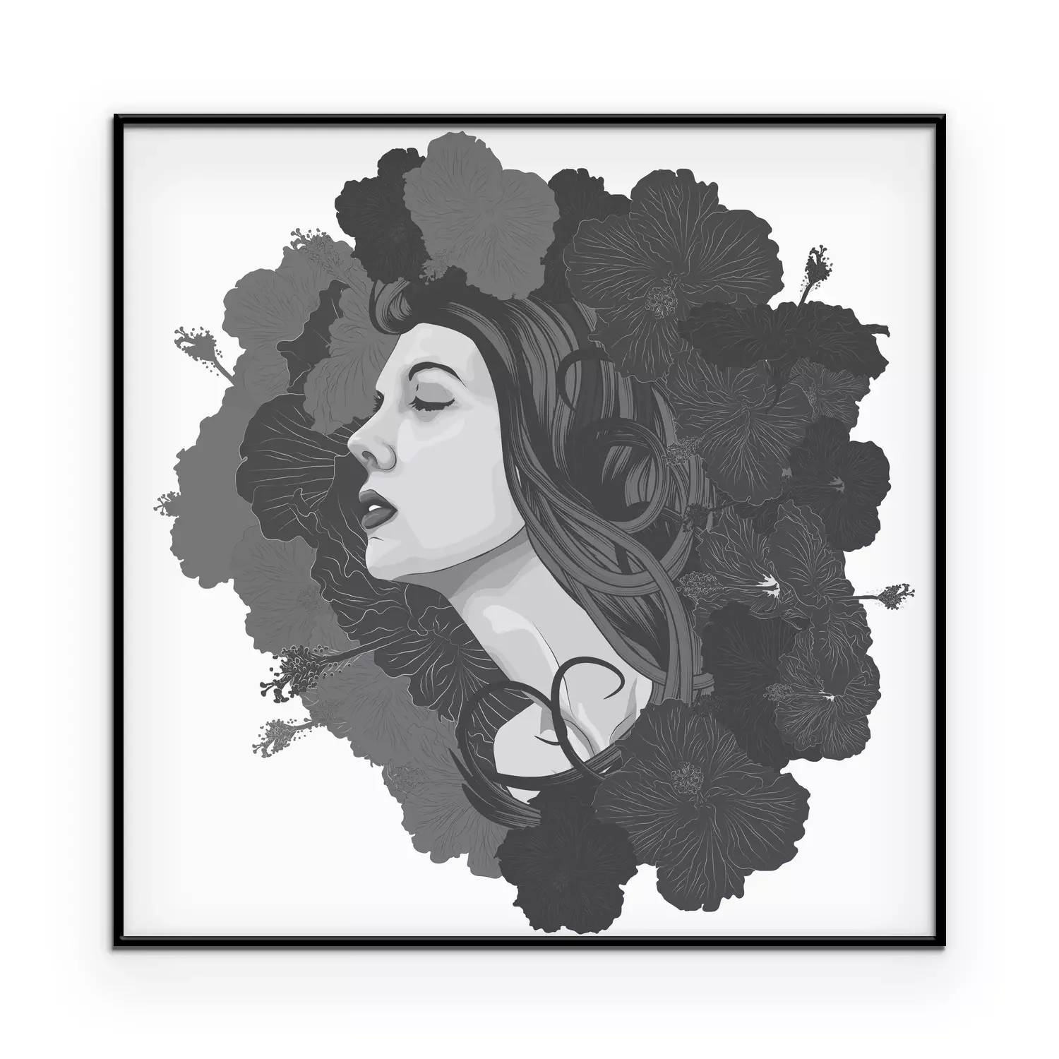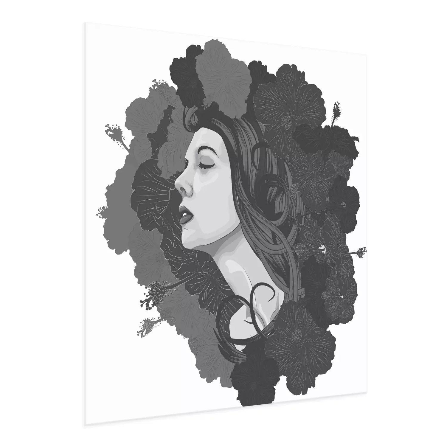 Poster: Mooie vrouw gezicht met bloemen als achtergrond