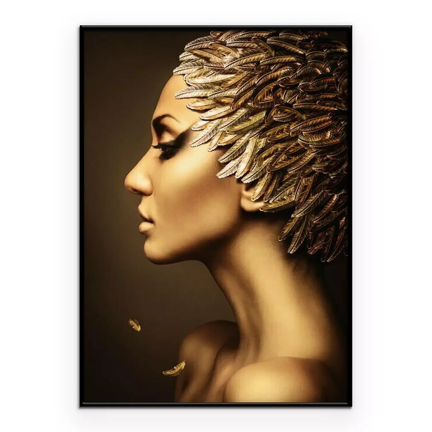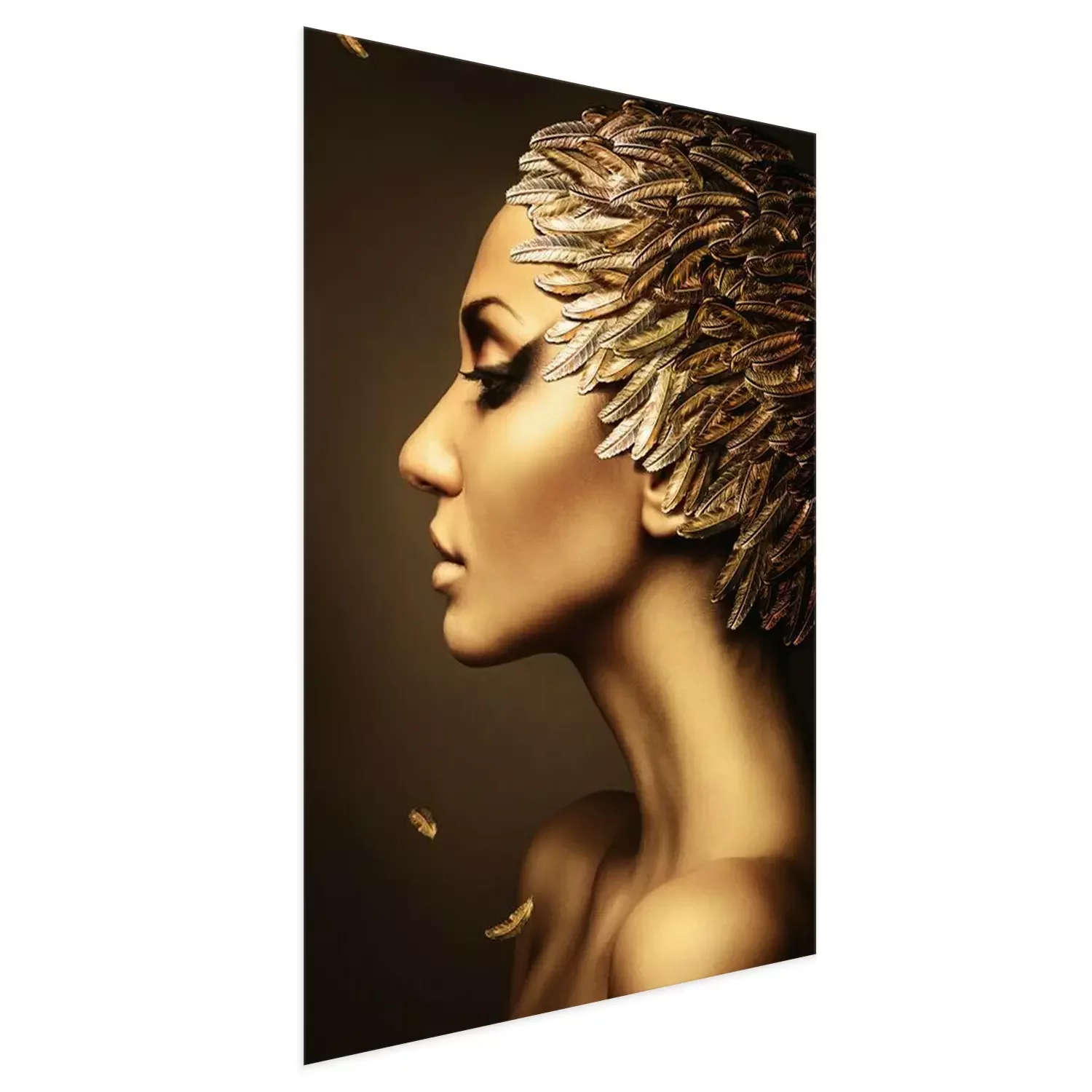 Poster: mooie vrouw met gouden veren hoed