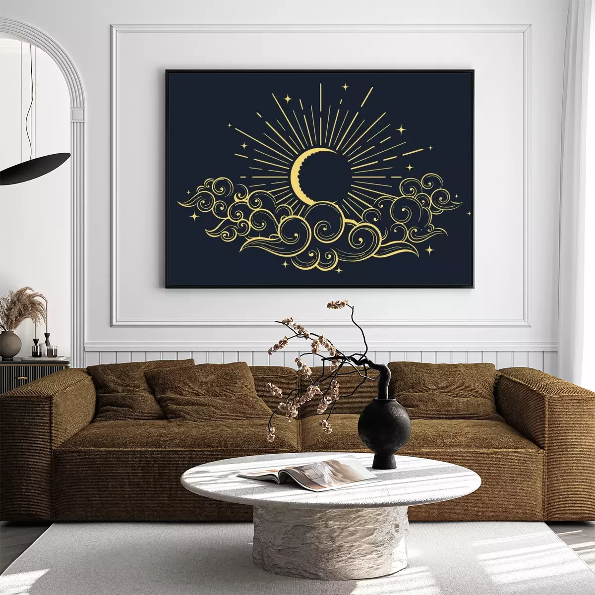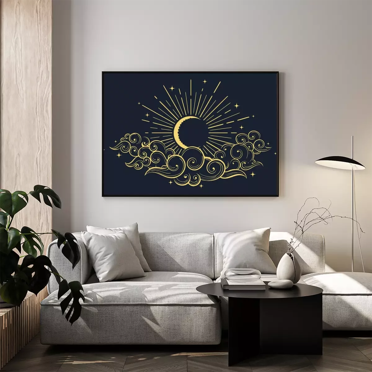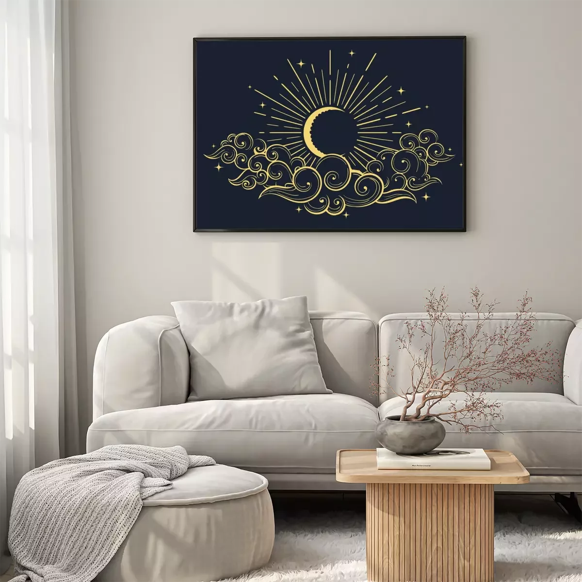 Poster Moon and Clouds at Midnight Drawn in Oriental Style