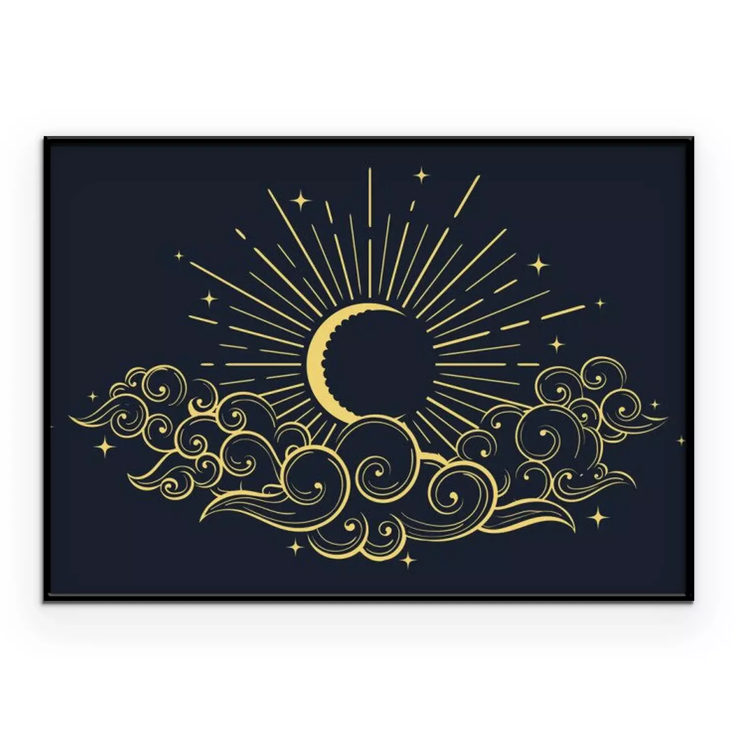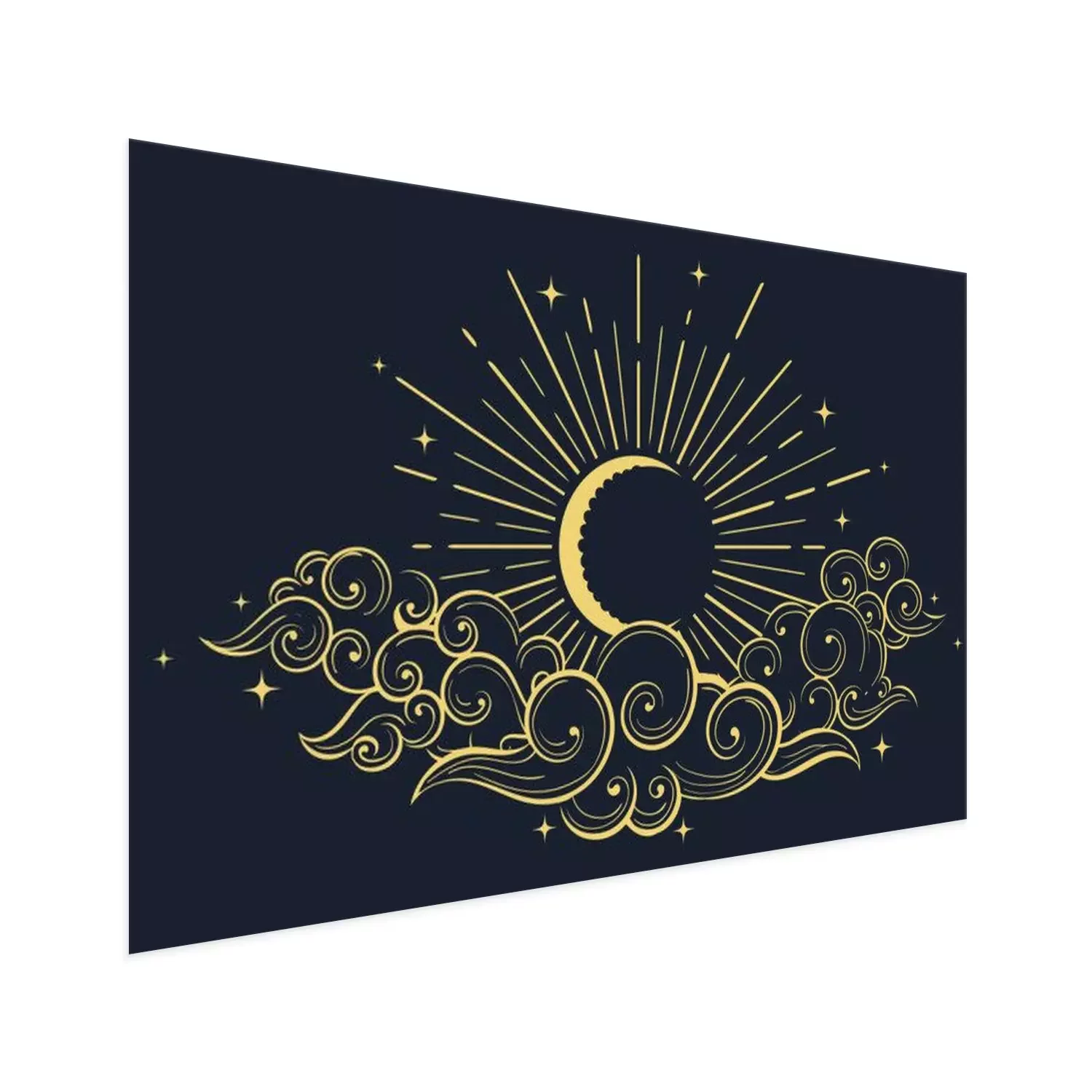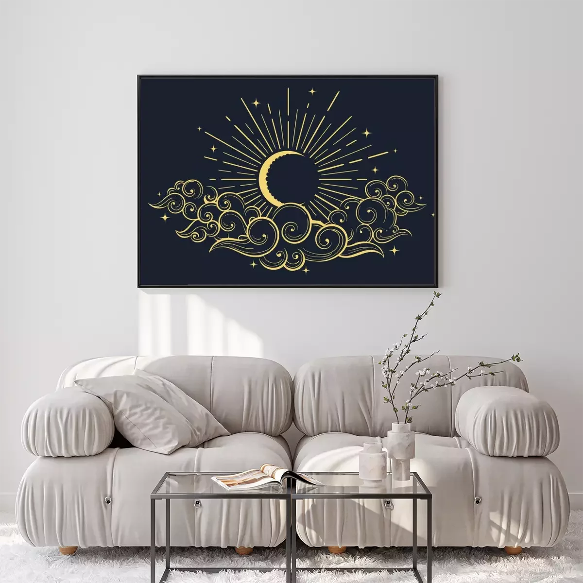 Poster Moon and Clouds at Midnight Drawn in Oriental Style