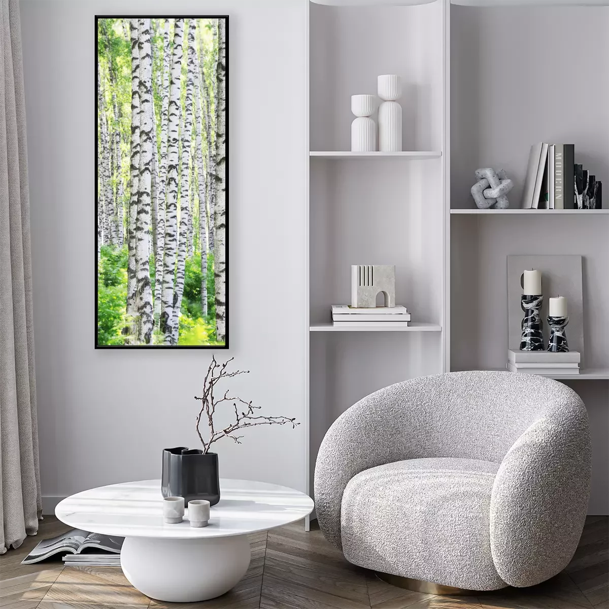 Poster: Motief van berk en gele bladeren in grafische vormgeving