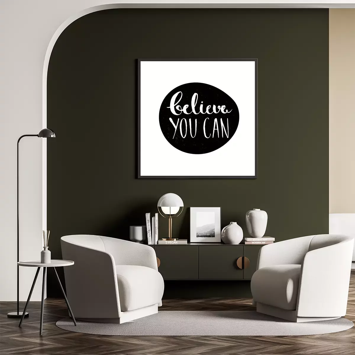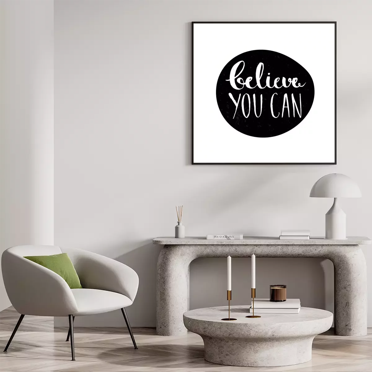 Een eenvoudige slogan op een artistieke achtergrond