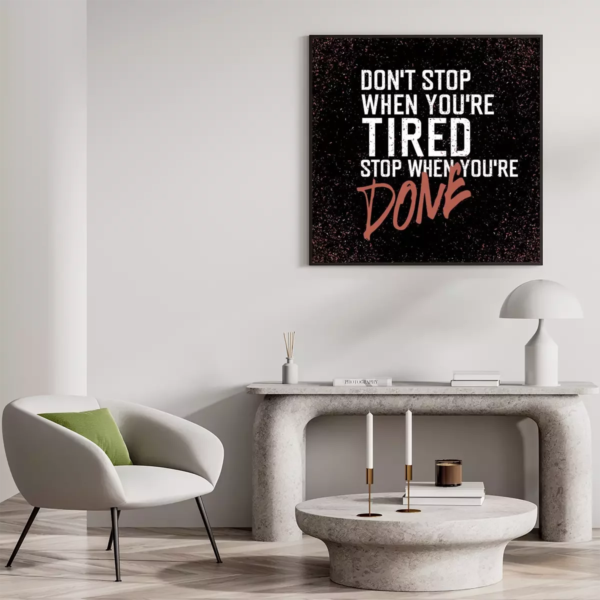 Poster: Motiverende slogan in industriële esthetiek