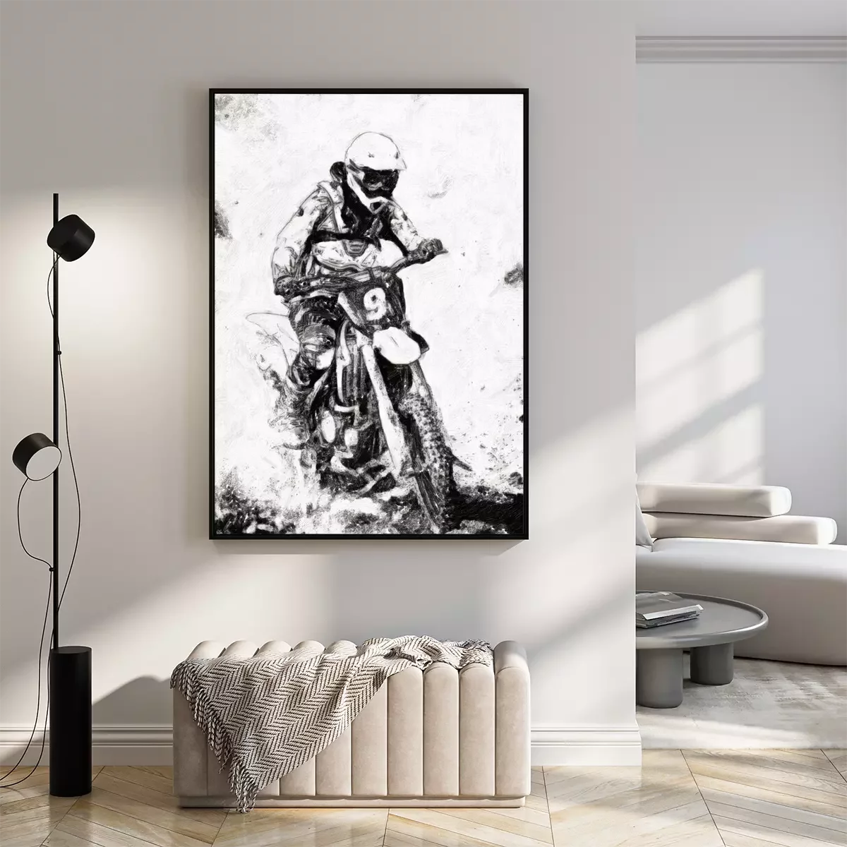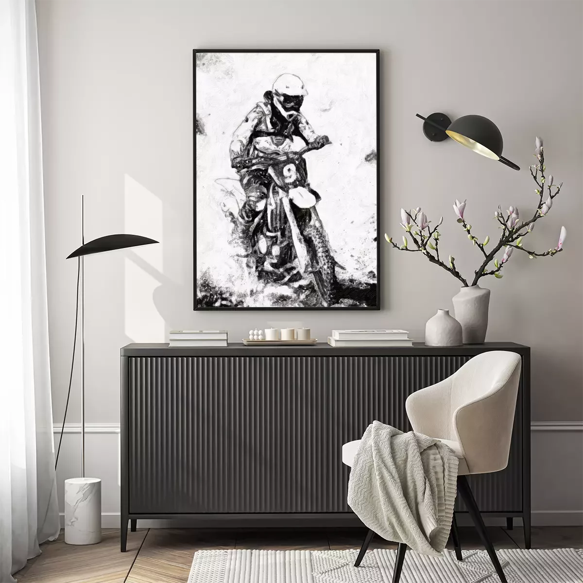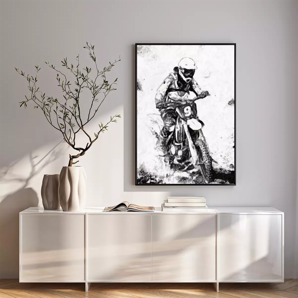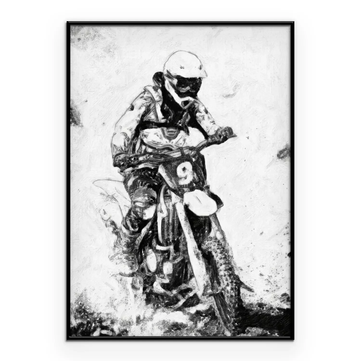 Poster: motorcross - B & W olieverf