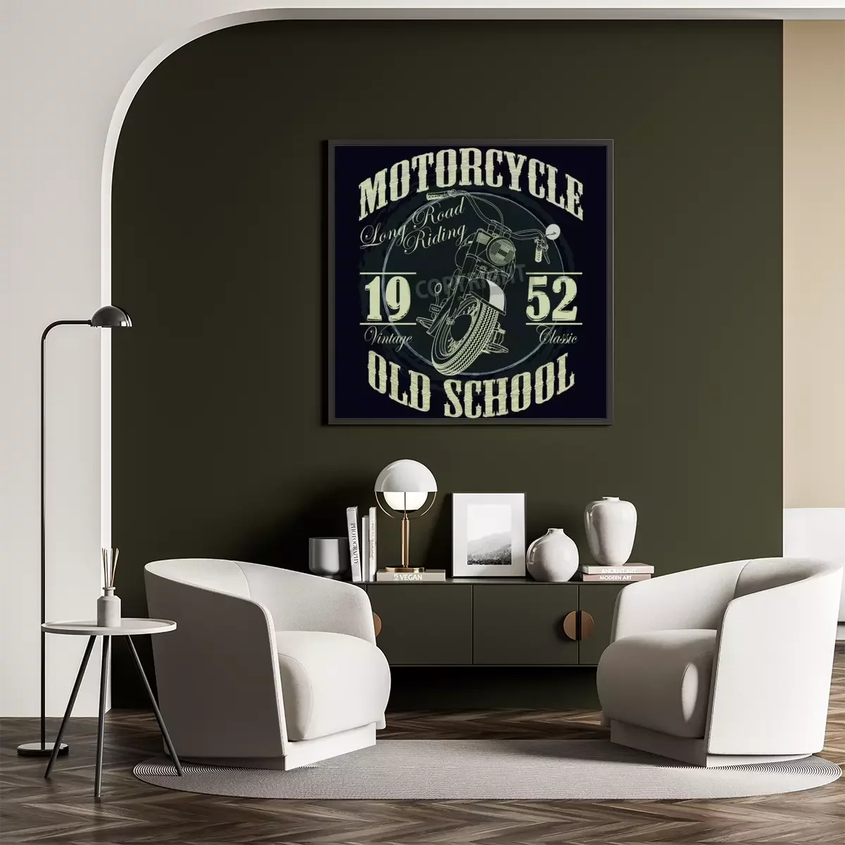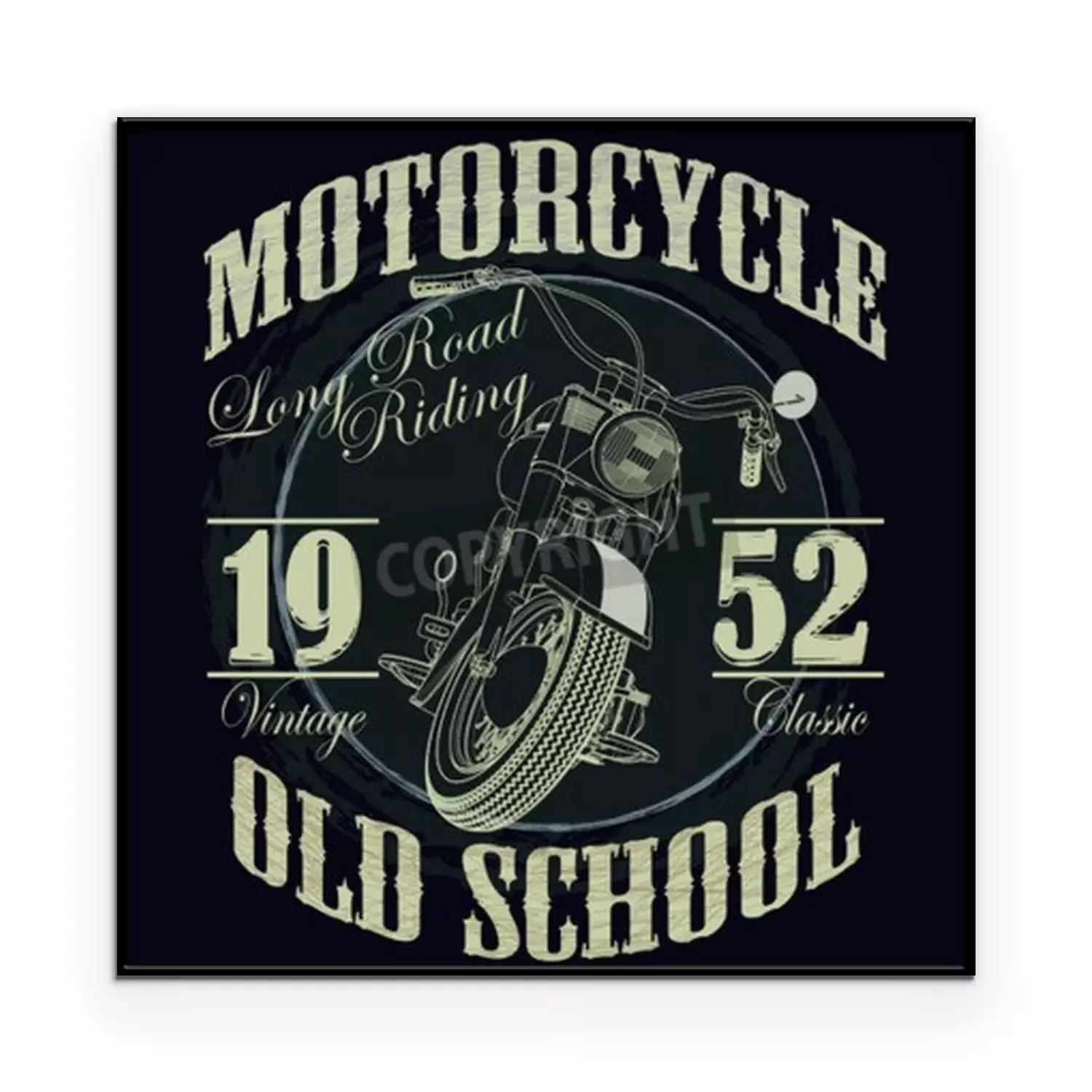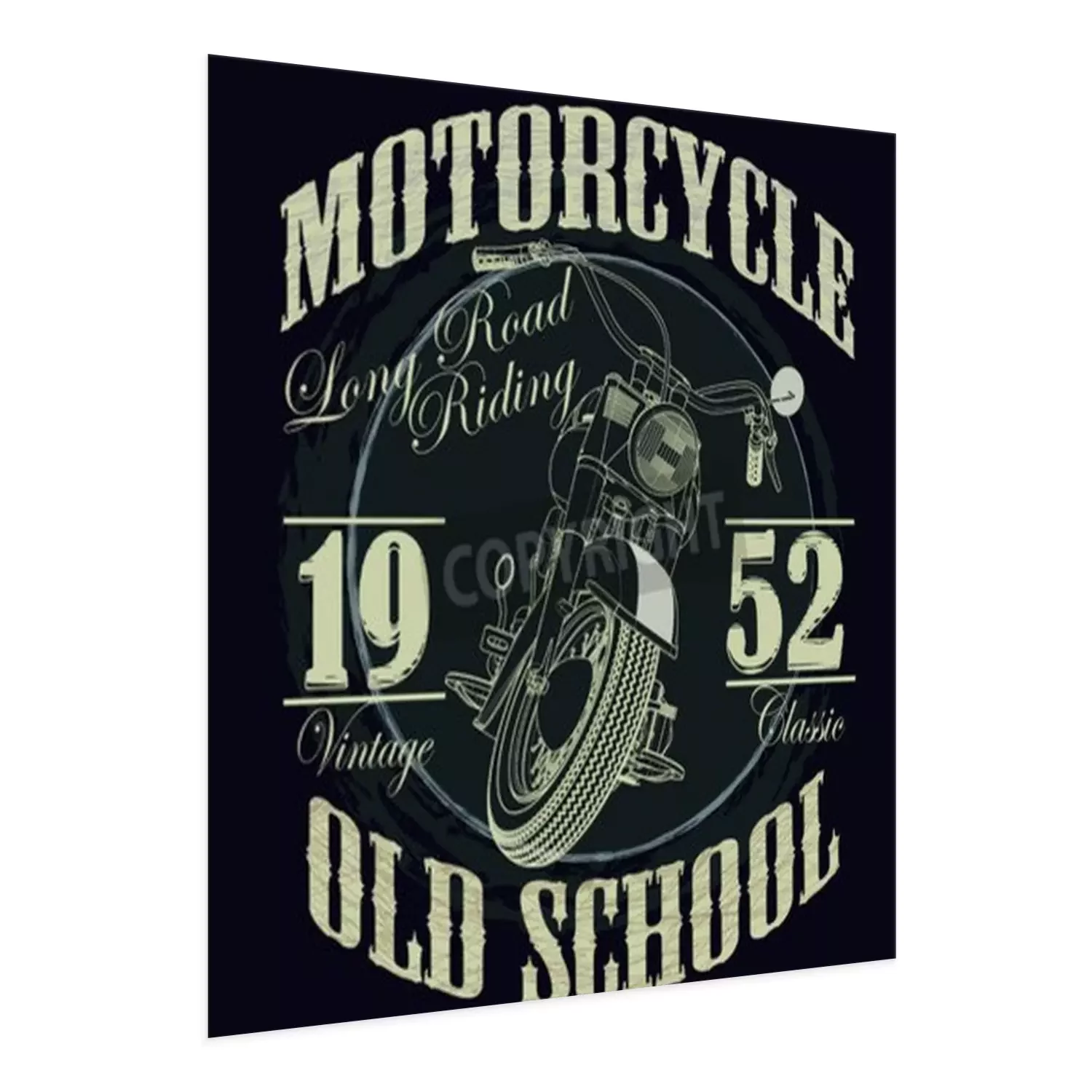 Poster: Motorfiets met letters op een zwarte achtergrond in vintage stijl