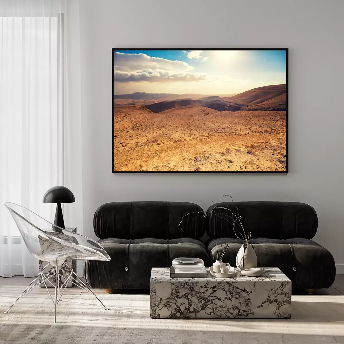 Poster Mountainous desert with a beautiful cloudy sky. Desert in Israel at sunset