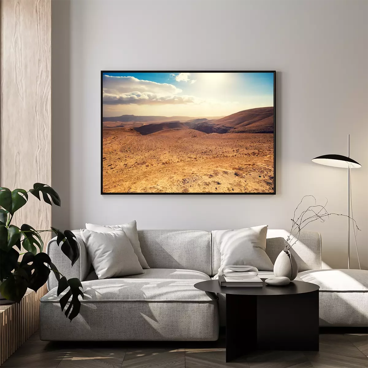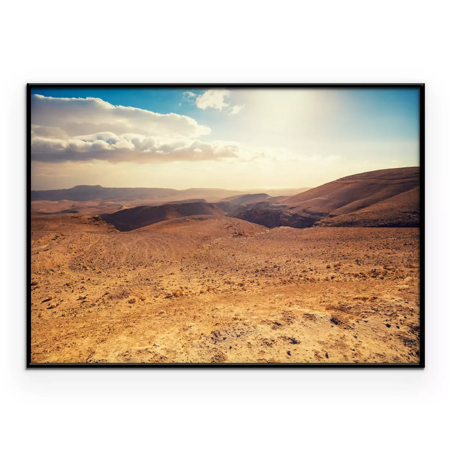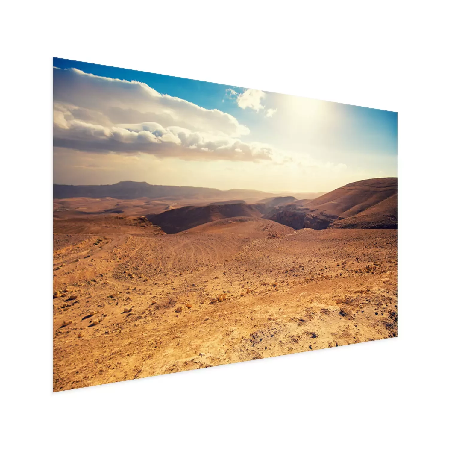 Poster: Mountainous desert with a beautiful cloudy sky. Desert in Israel at sunset