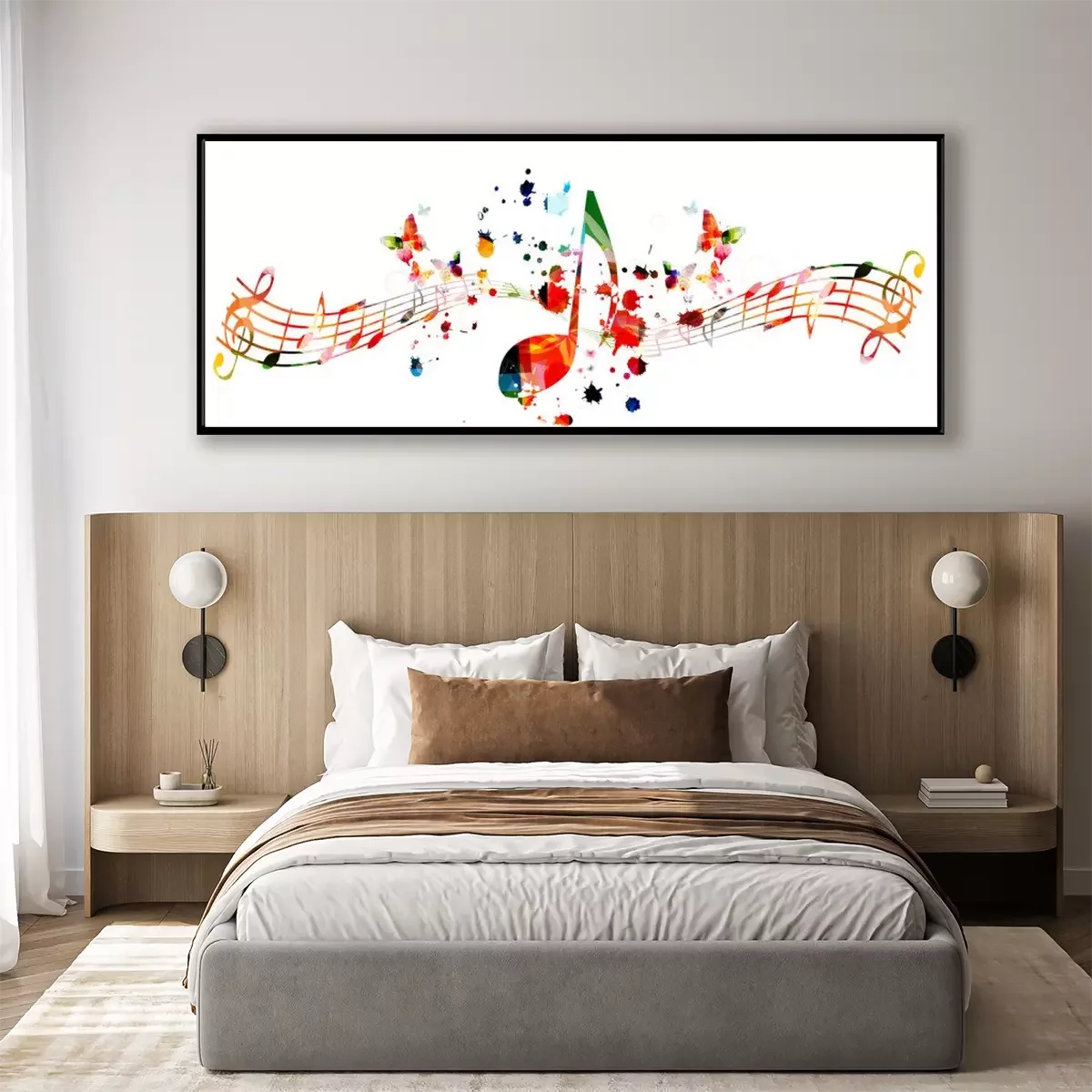 Poster Music background with colorful music notes vector illustration design. Artistic music festival poster, live concert events, party flyer, music notes signs and symbols