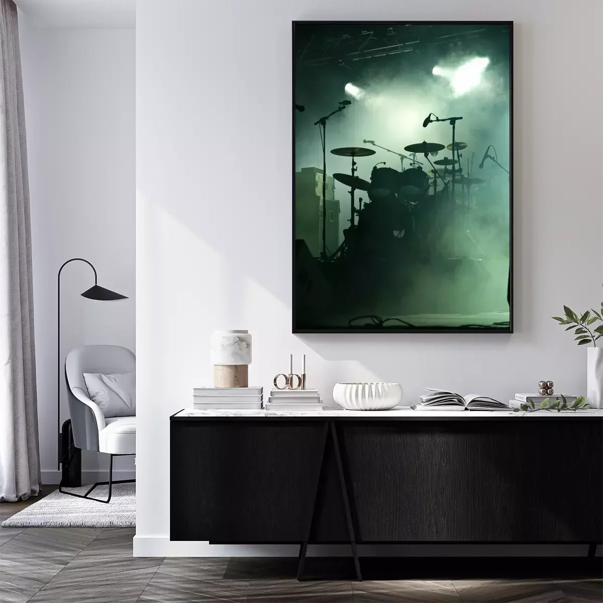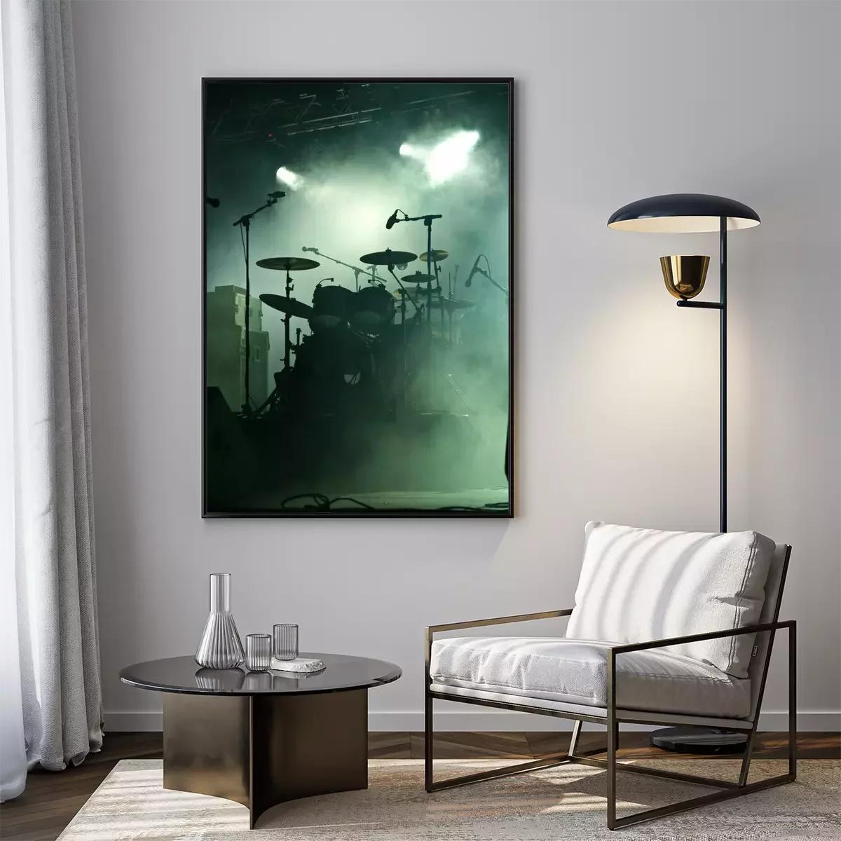 Poster: Muziek en drums op het podium
