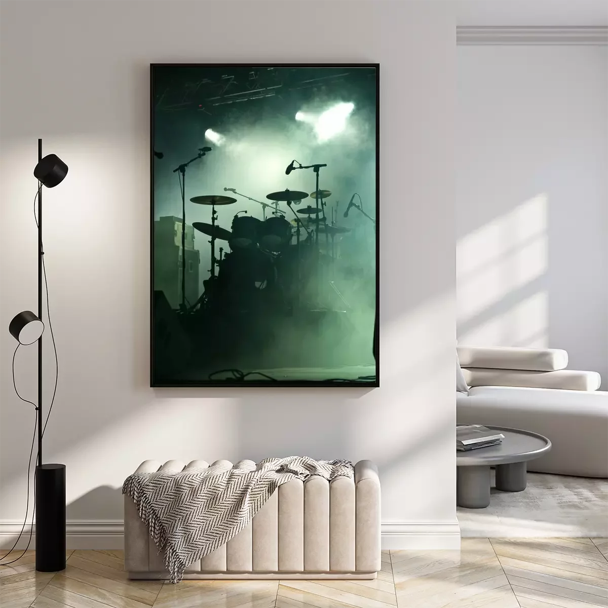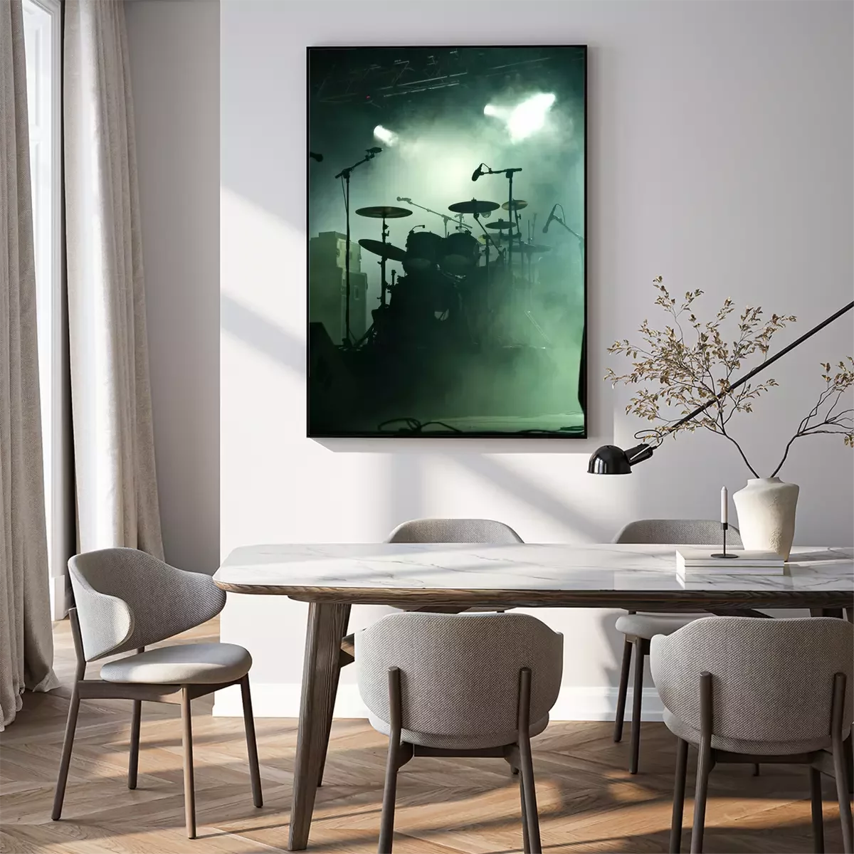 Poster Muziek en drums op het podium