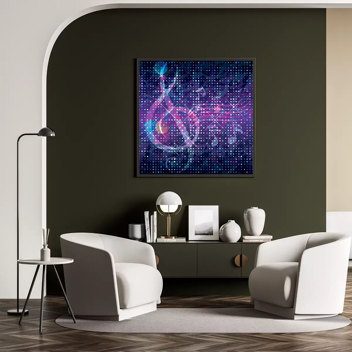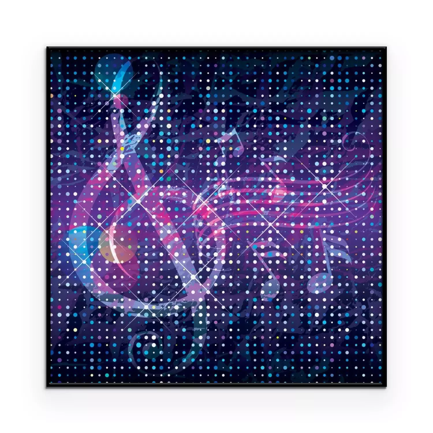 Poster: Muziek en lichtgevende noten