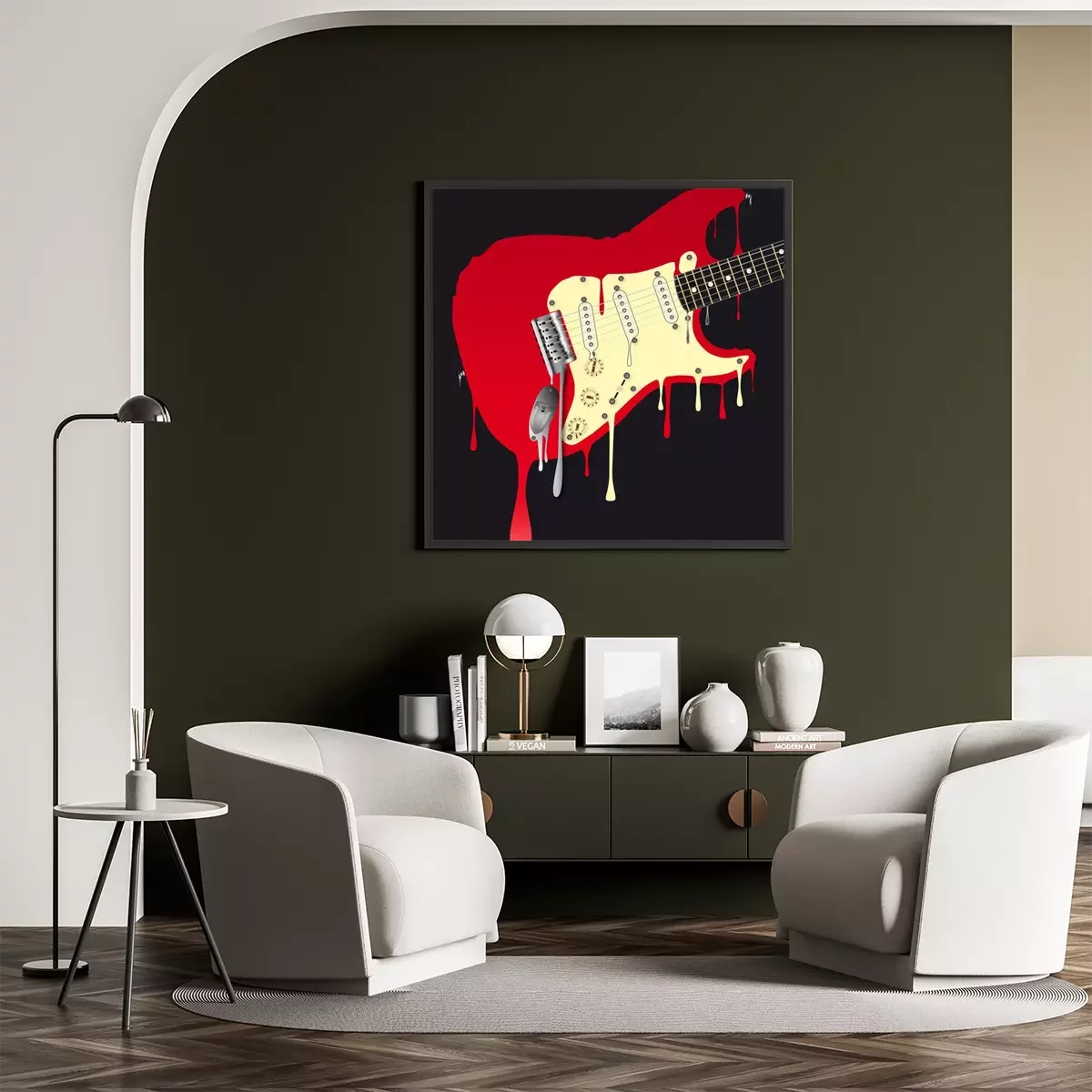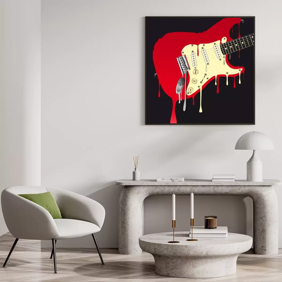 Poster: Muziek en rode gitaar