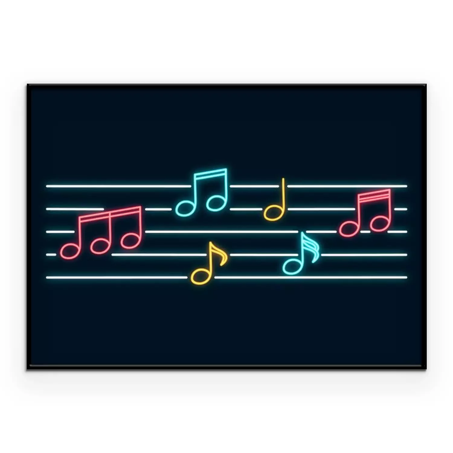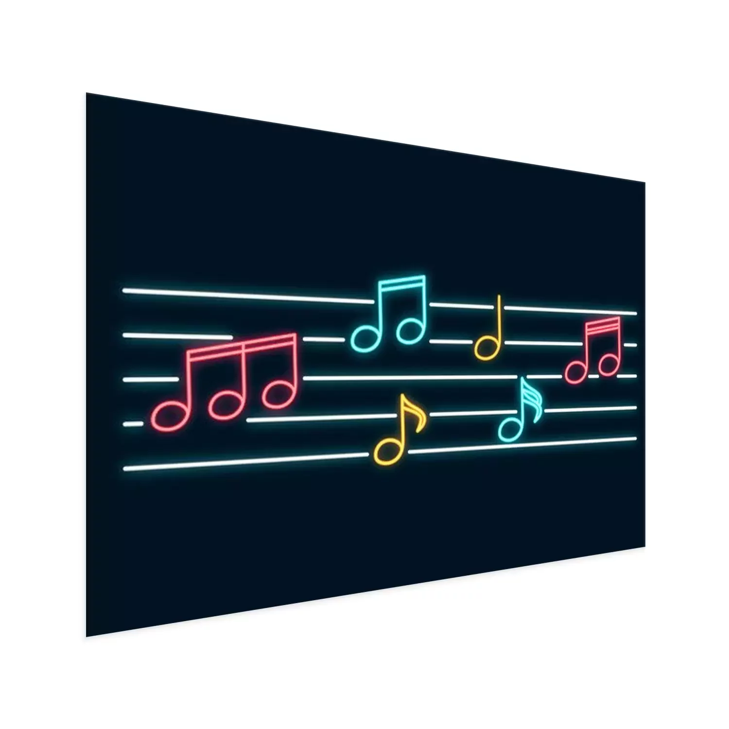 Poster Muziek notities neon teken grens. Led Concept voor muziekwinkel met sleutel. Vector geïsoleerde illustratie.