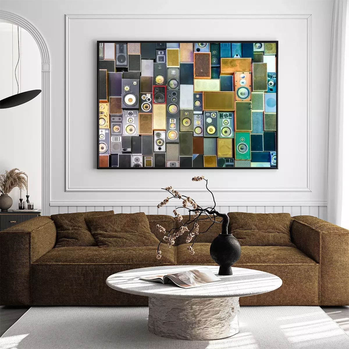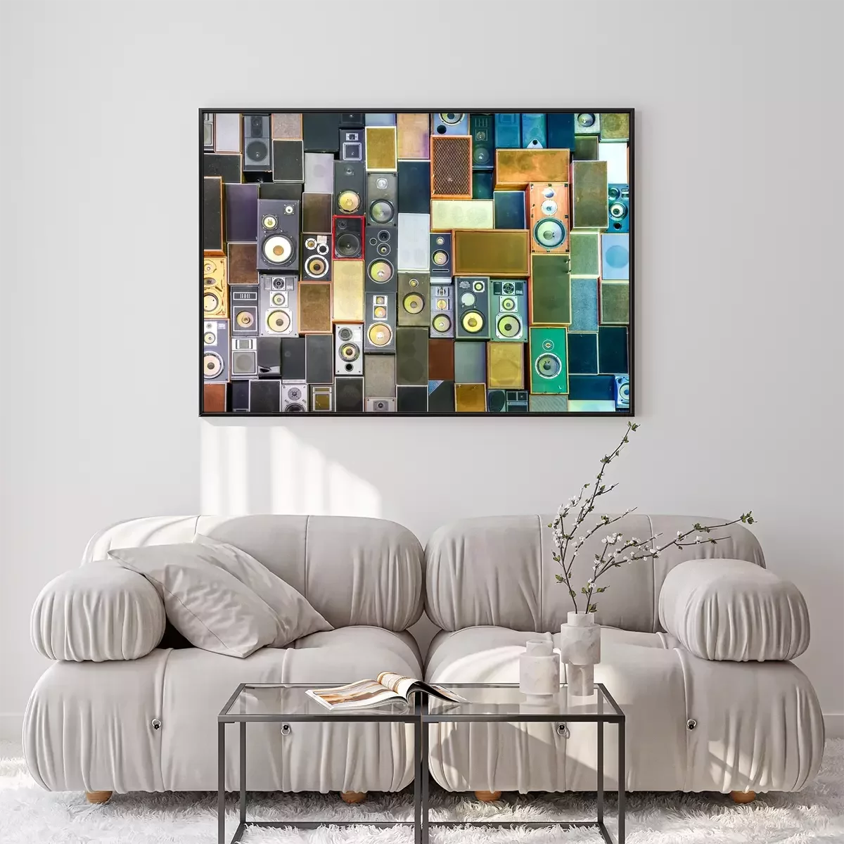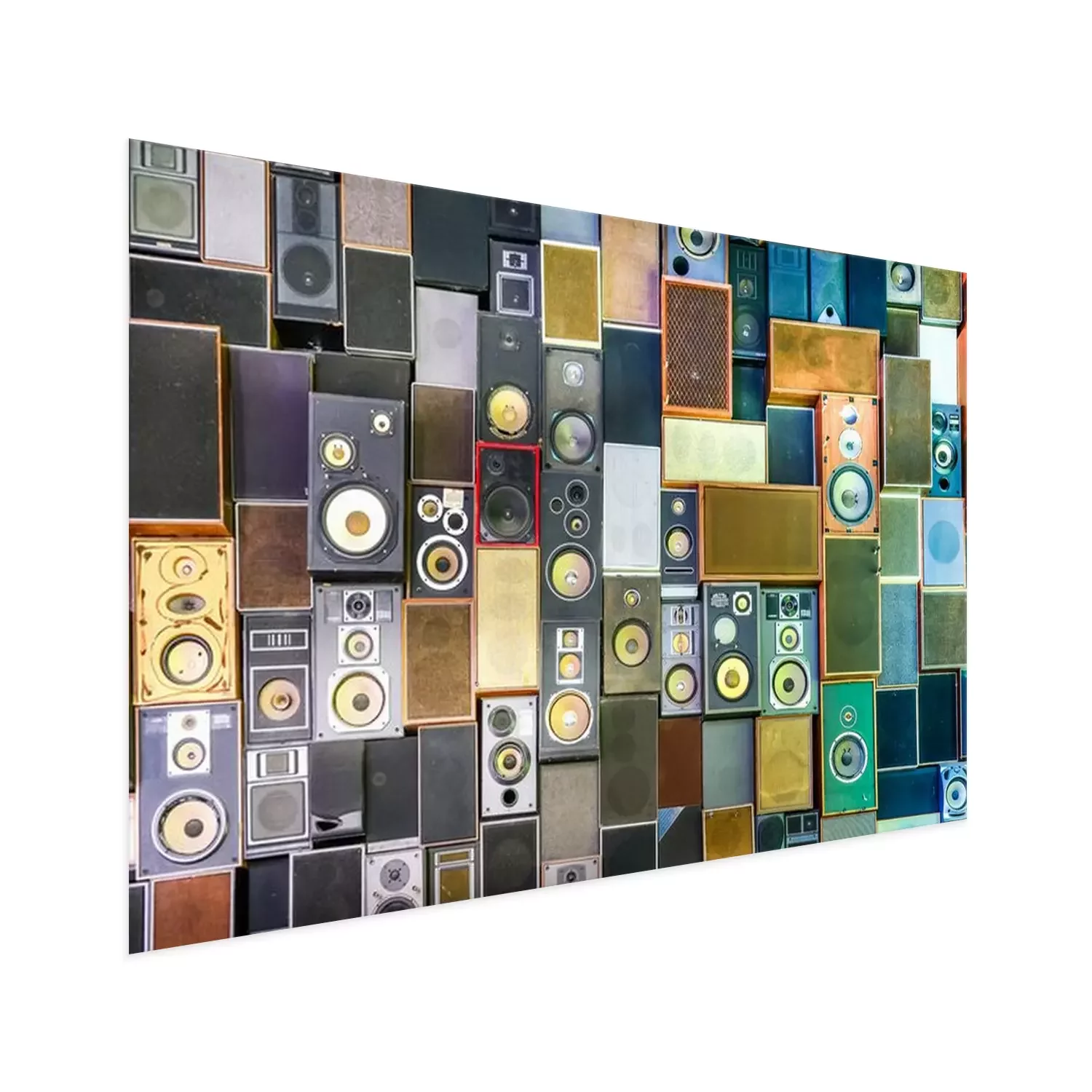 Poster: Muziek speakers aan de muur in retro vintage stijl