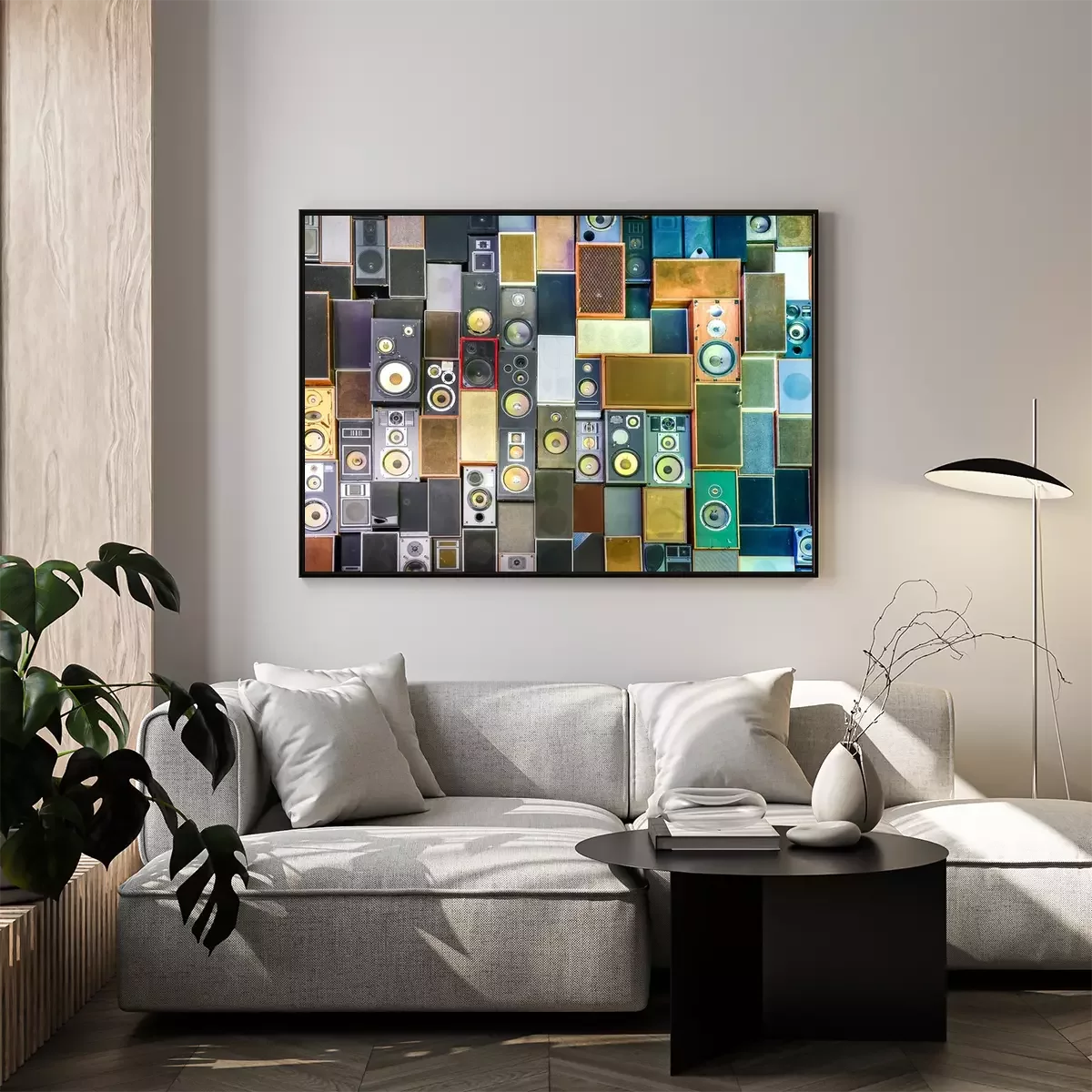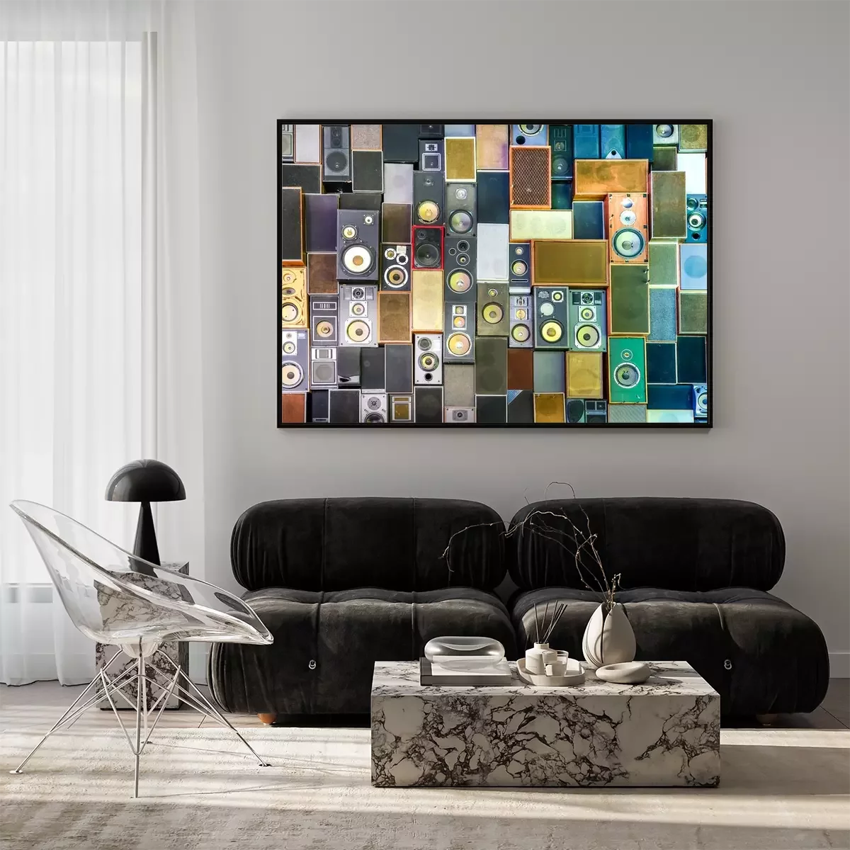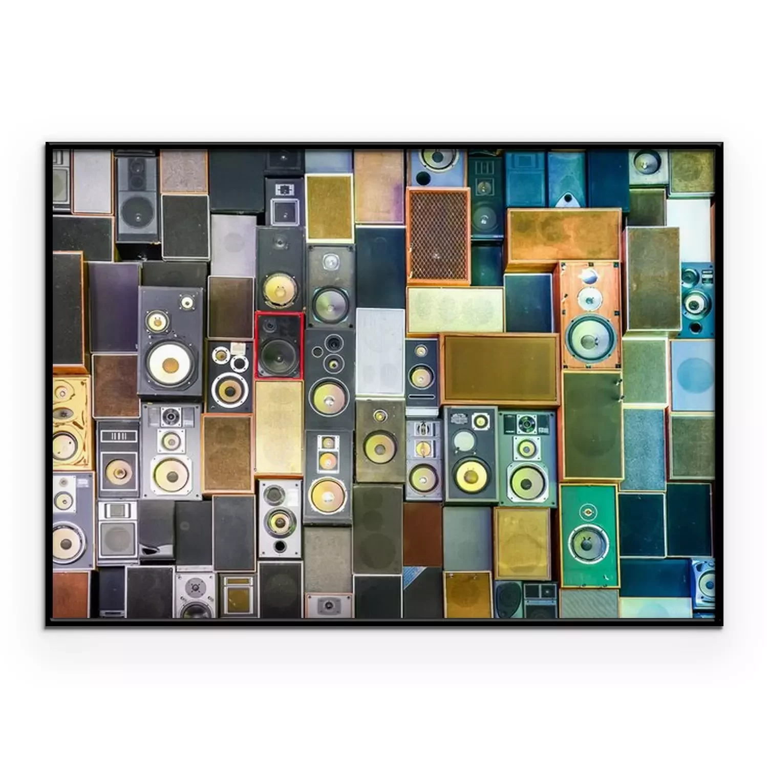 Poster: Muziek speakers aan de muur in retro vintage stijl