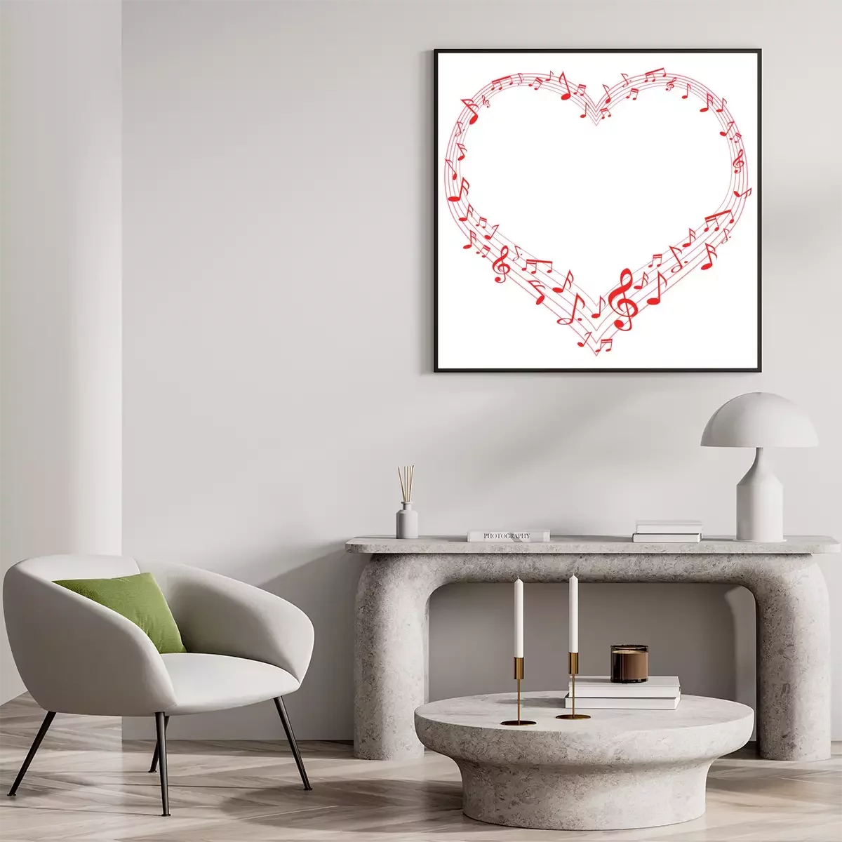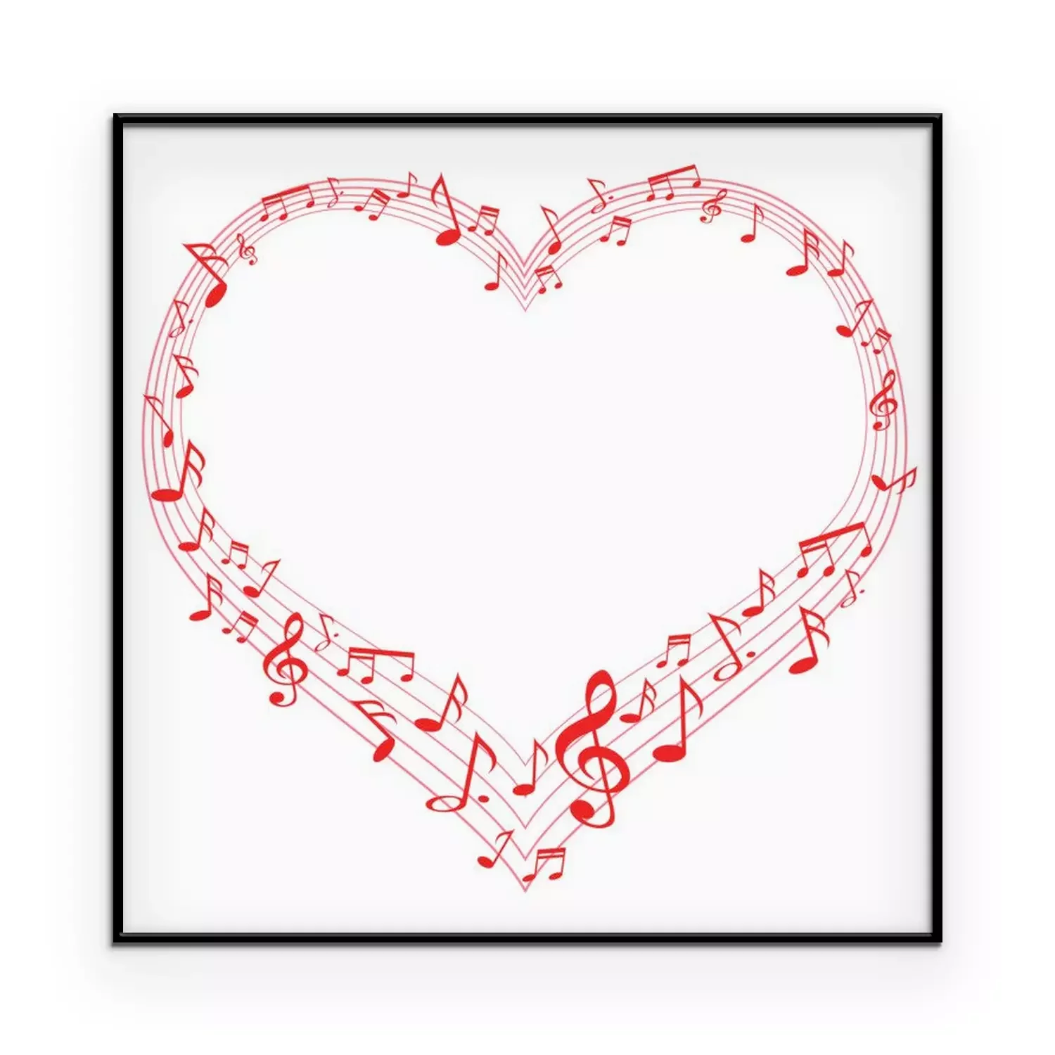 Poster: Muziek van liefde, muzieknoten in hartvorm