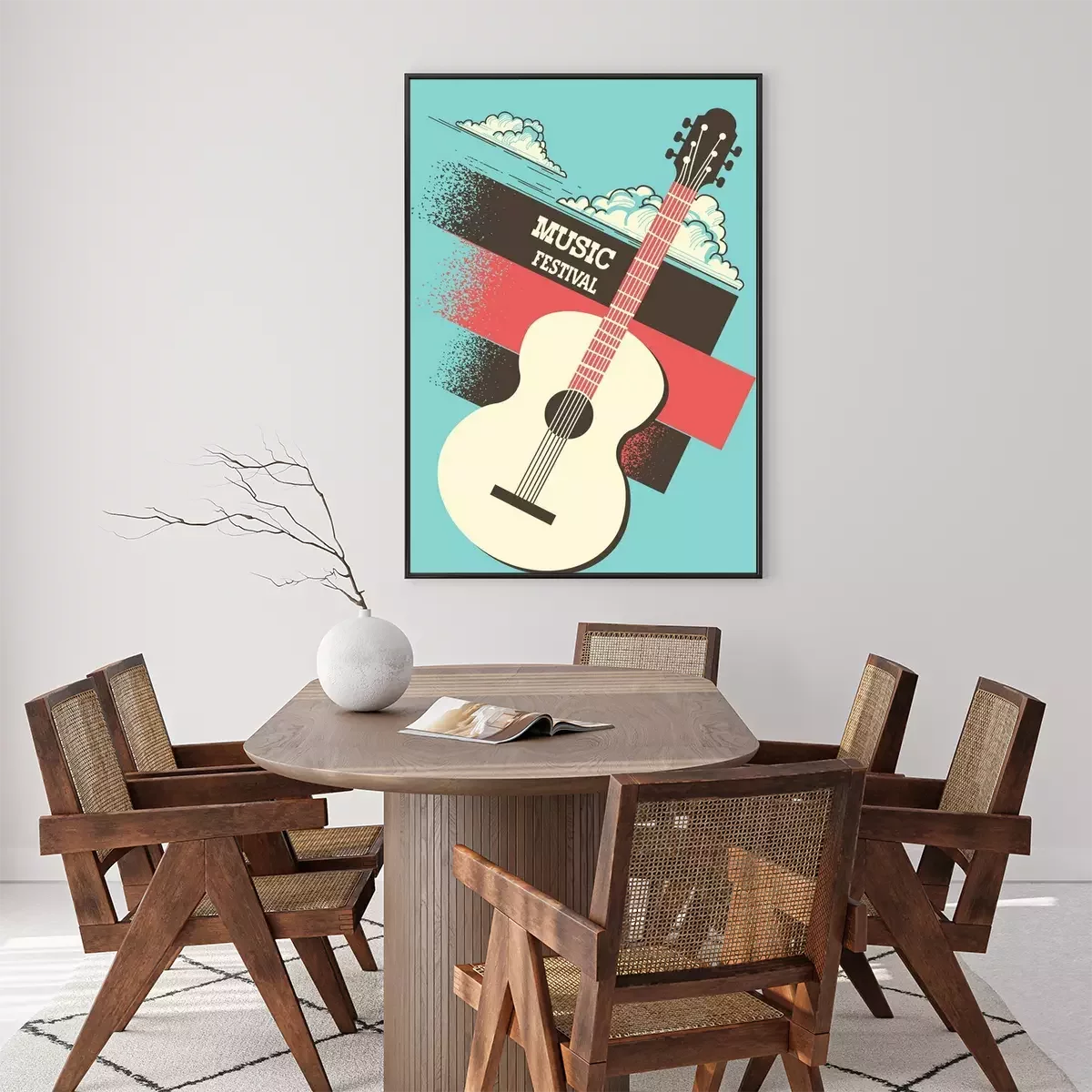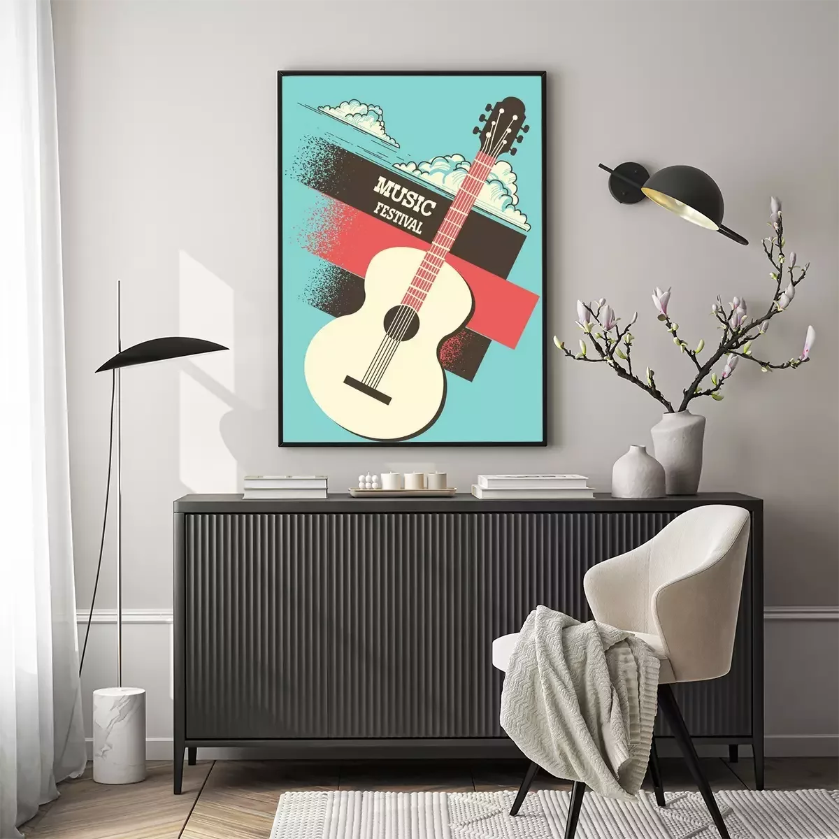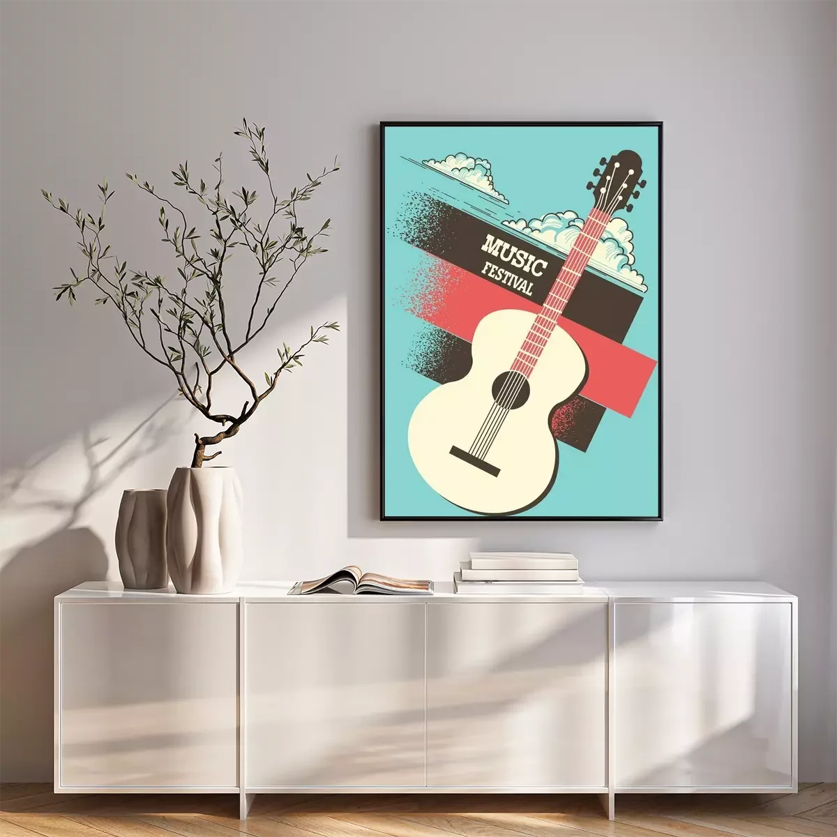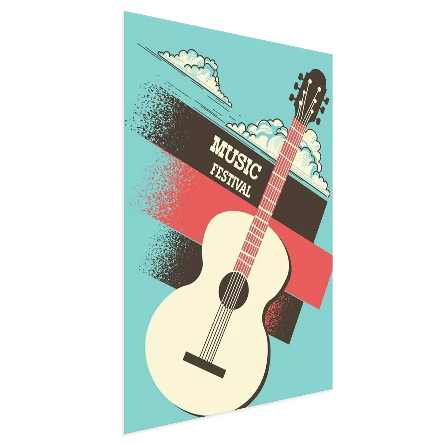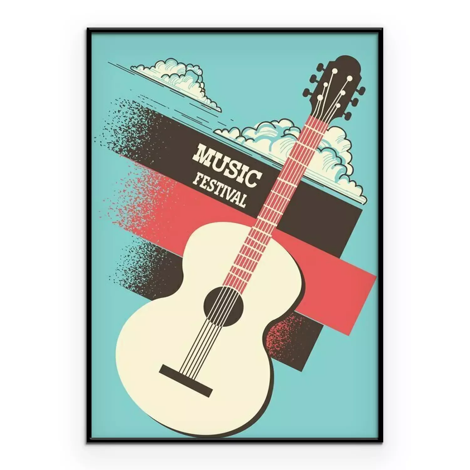 Poster: Muziekafficheachtergrond met akoestische gitaar en retro decoratie
