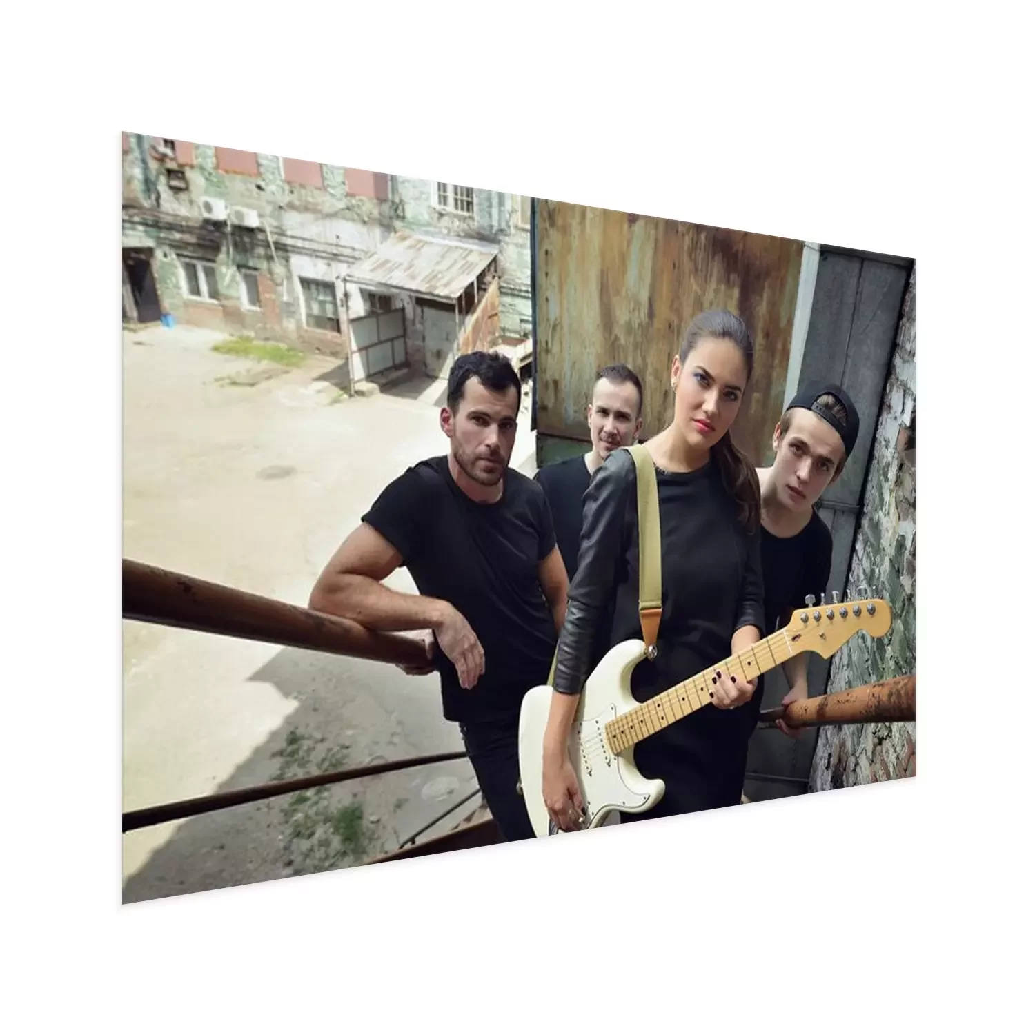 Poster Muziekband outdoor portret. Muzikanten en vrouw solist poseren