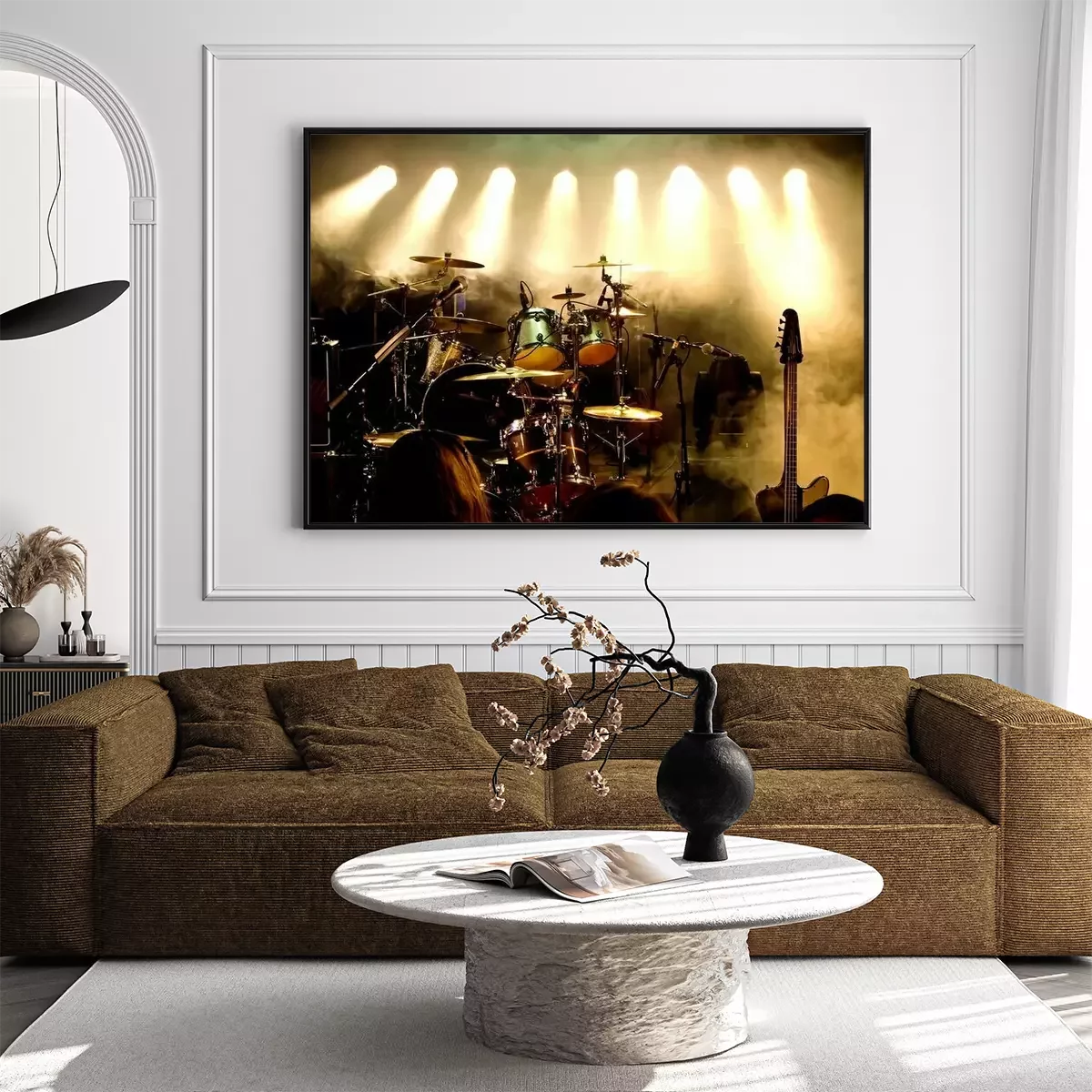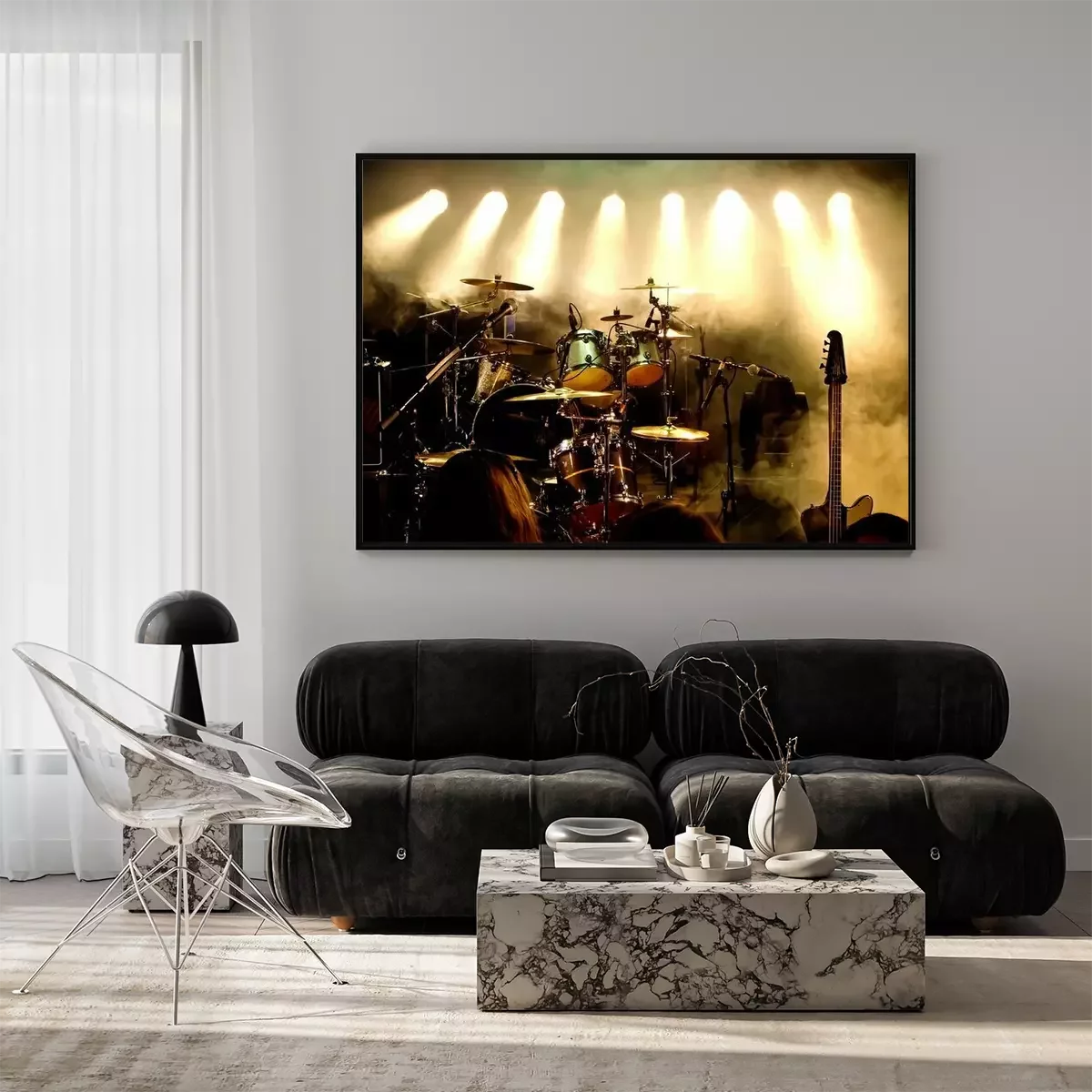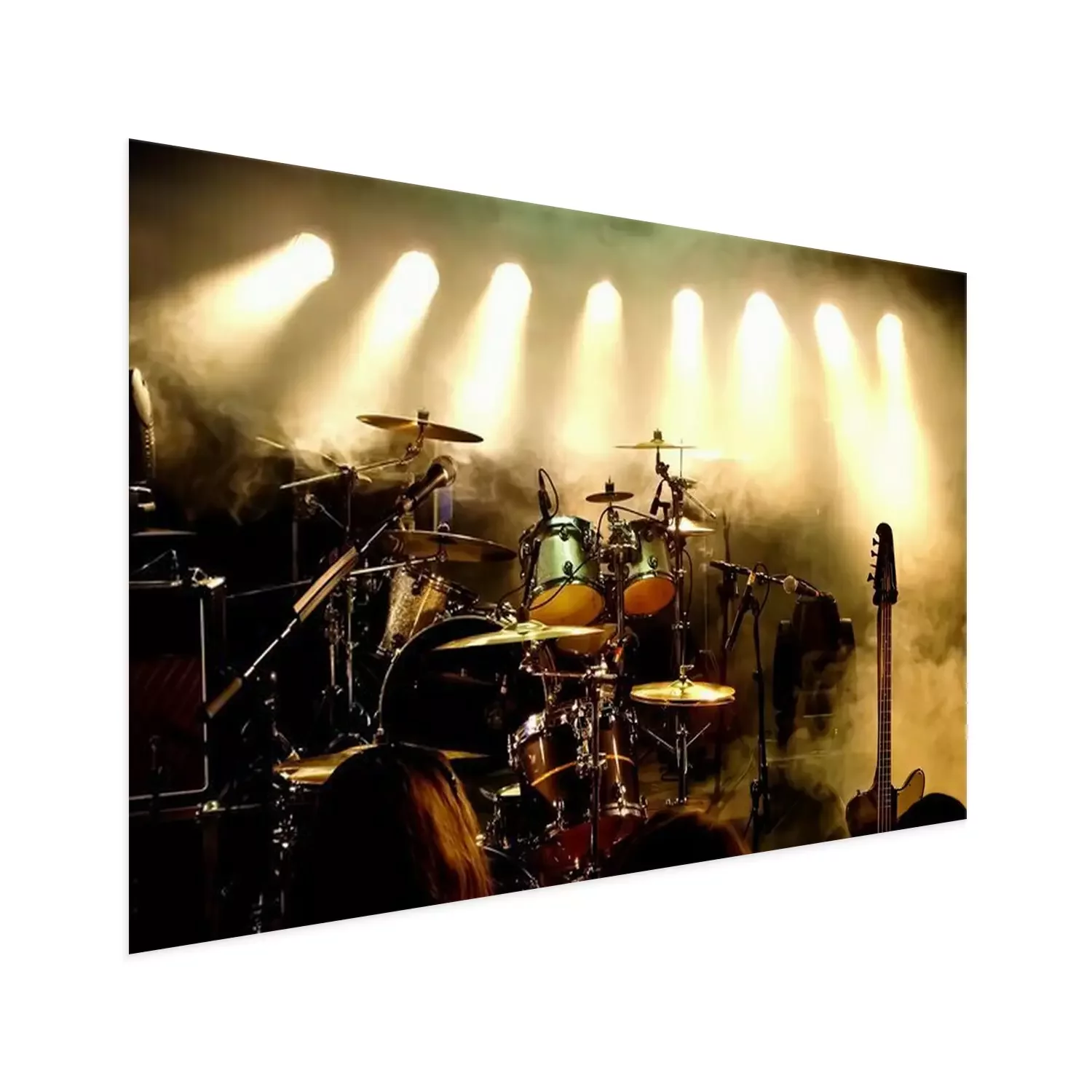 Poster: Muziekinstrumenten, Drums / Gitaar op het podium