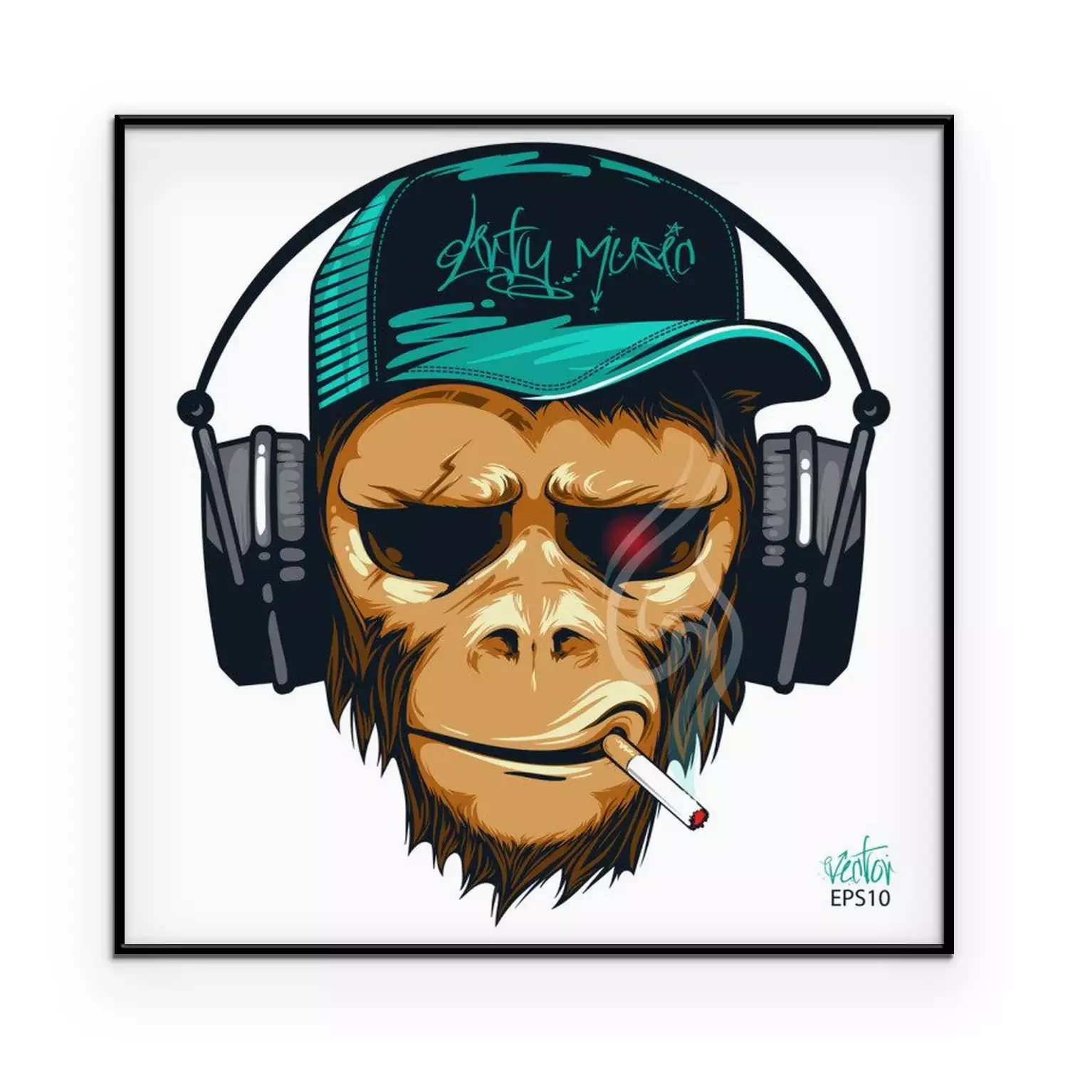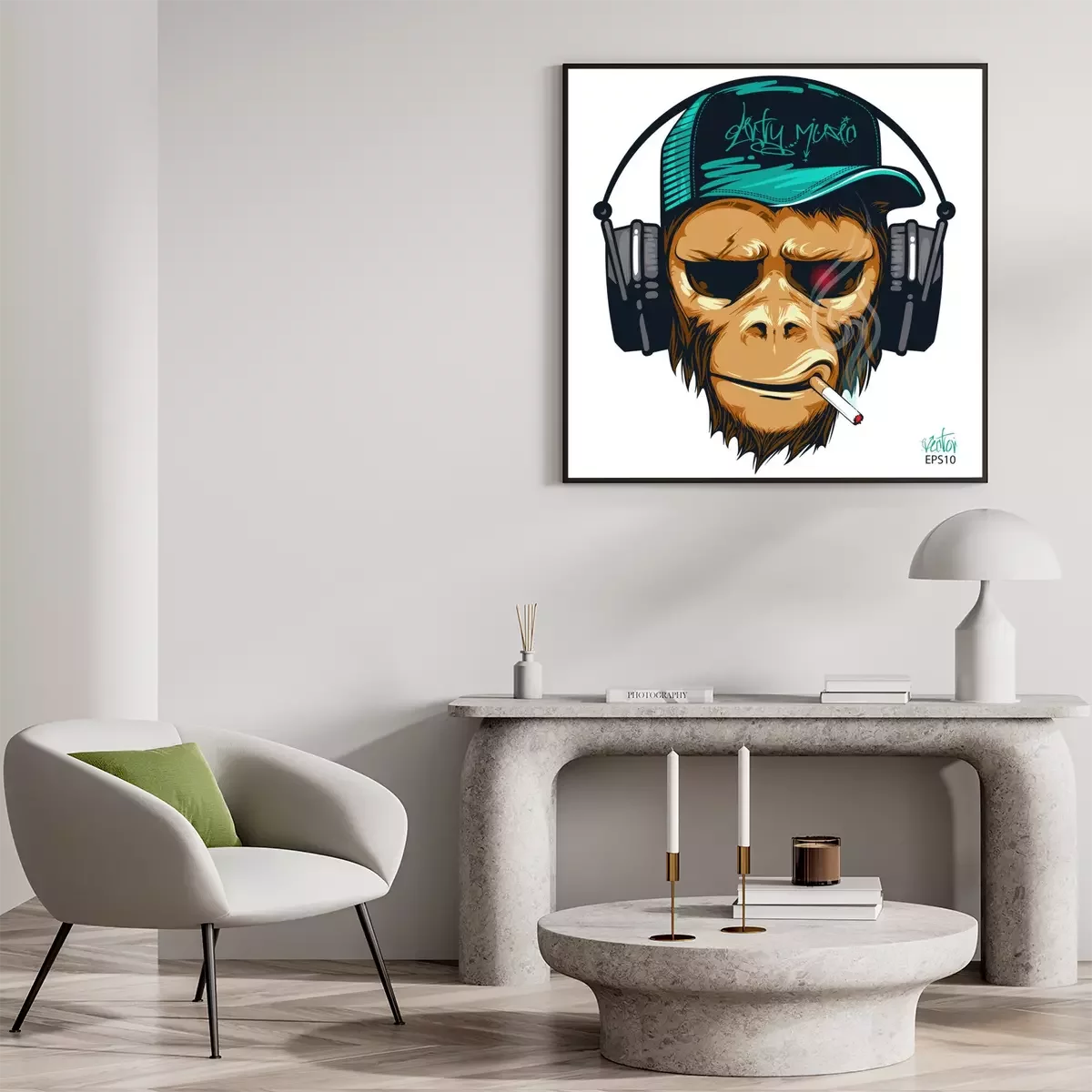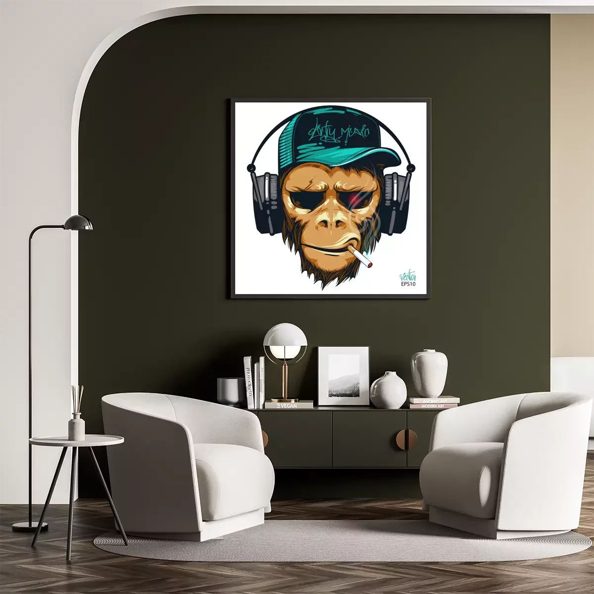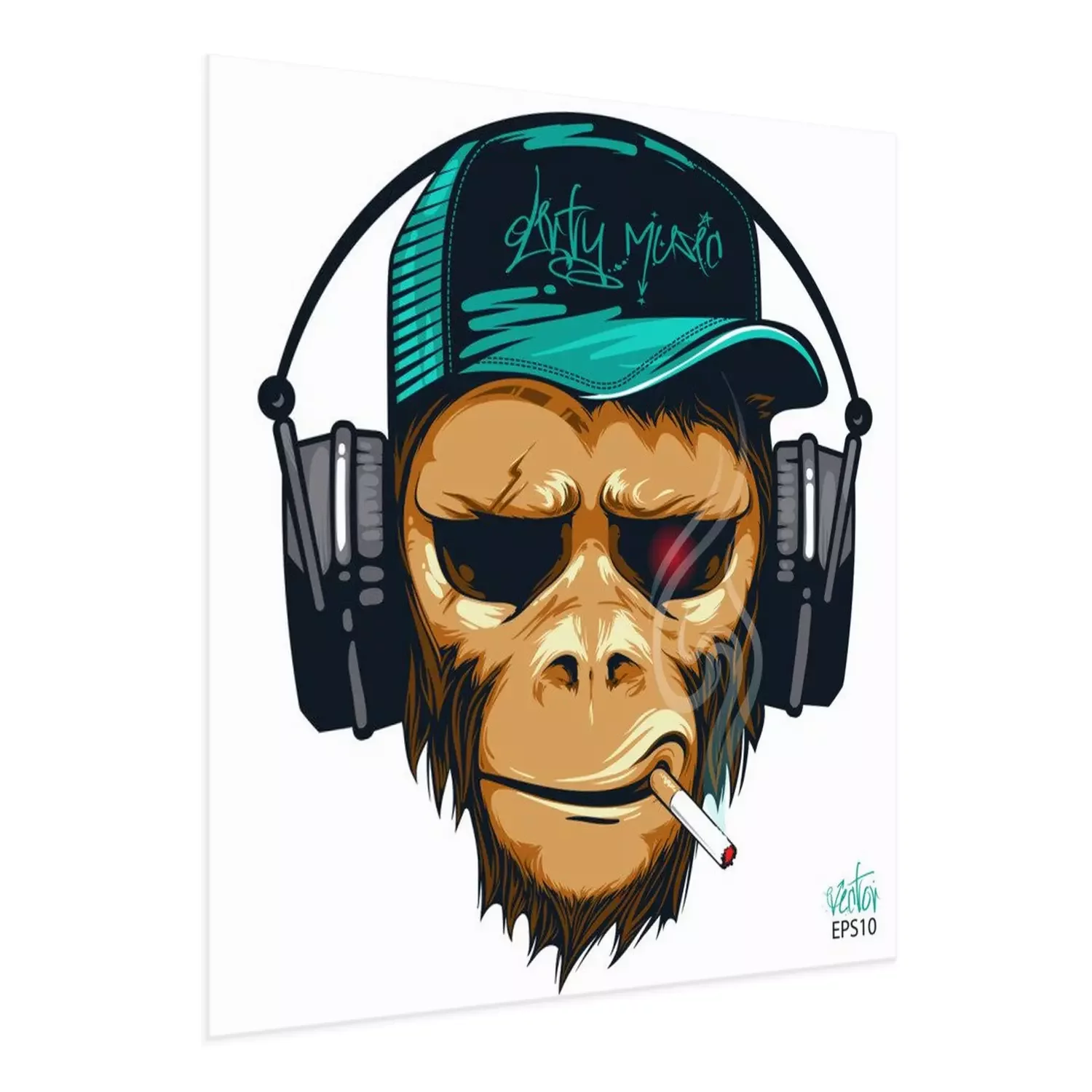 Poster: Muziekventilator hipster aap in hoofdtelefoon. DJ-chimpansee