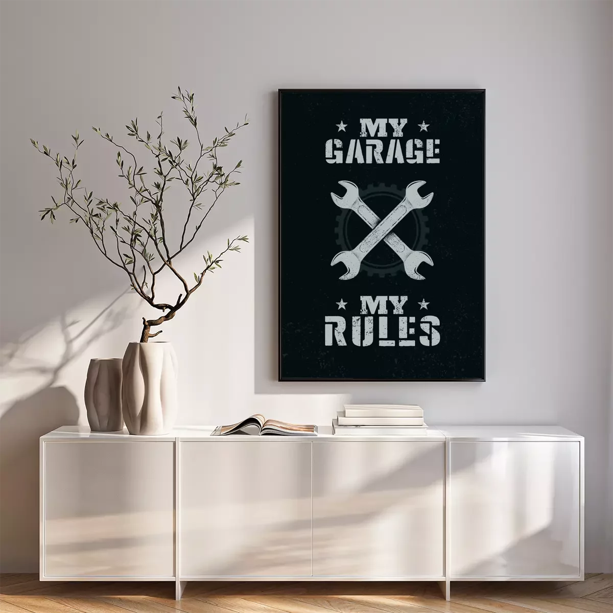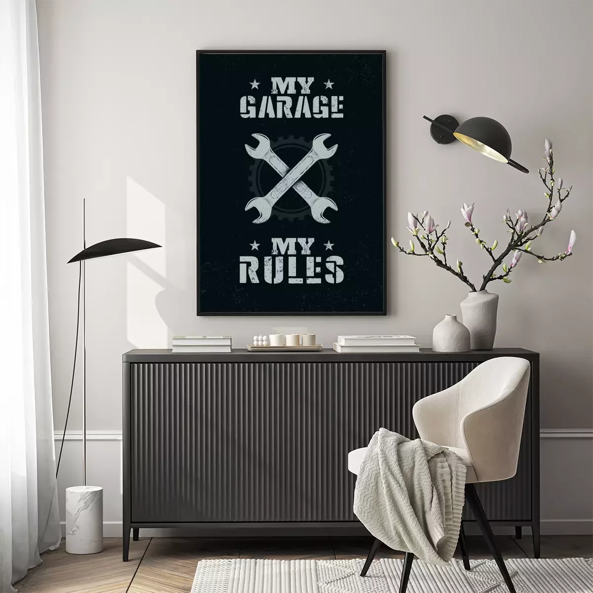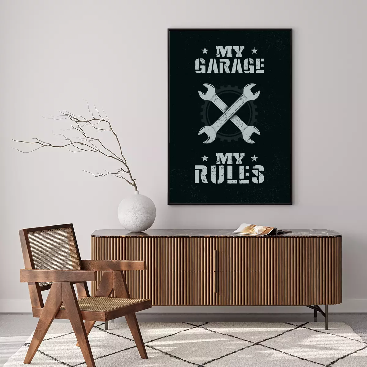 Poster: My Garage. My Rules. Creative Man Cave Motivation Interior Poster Design Concept