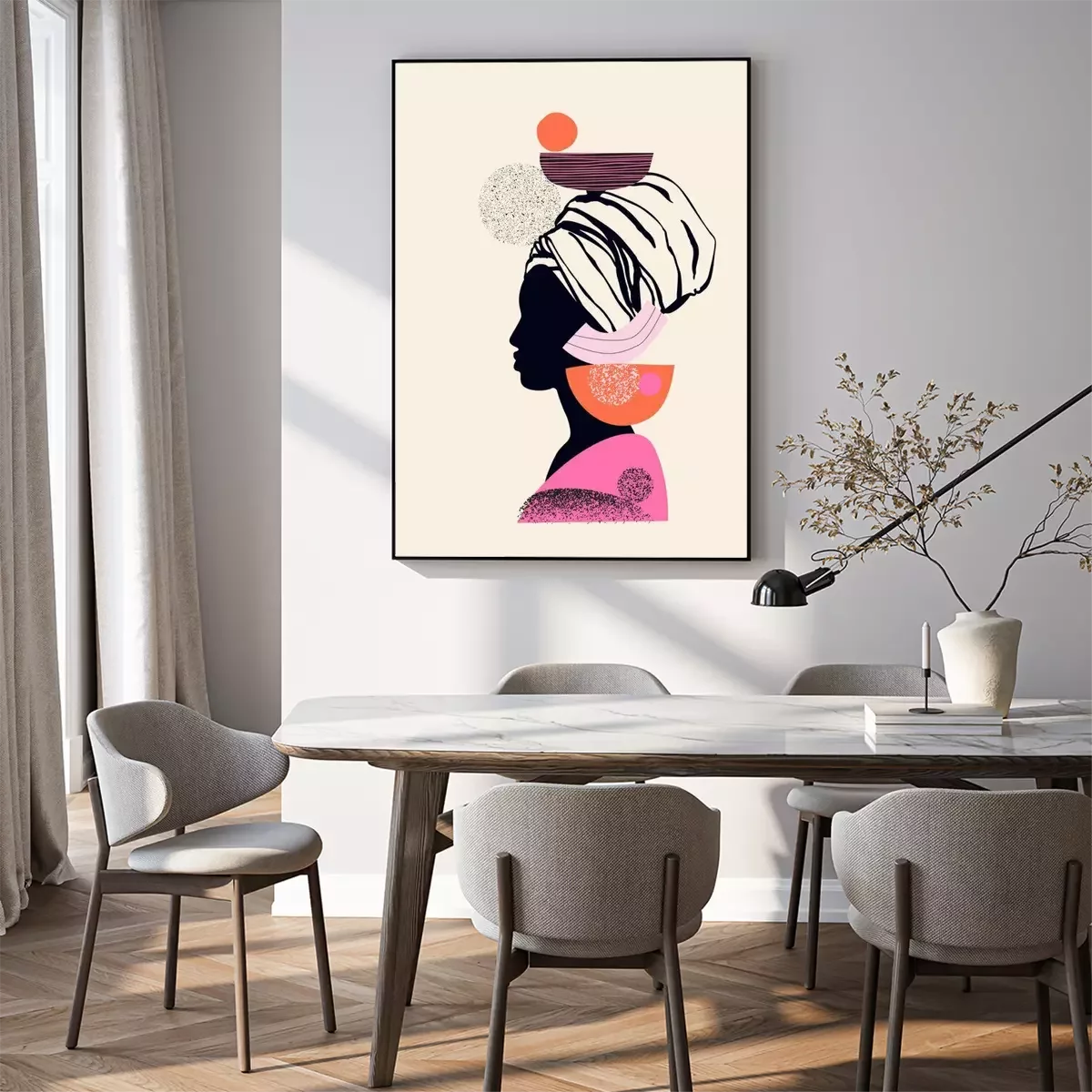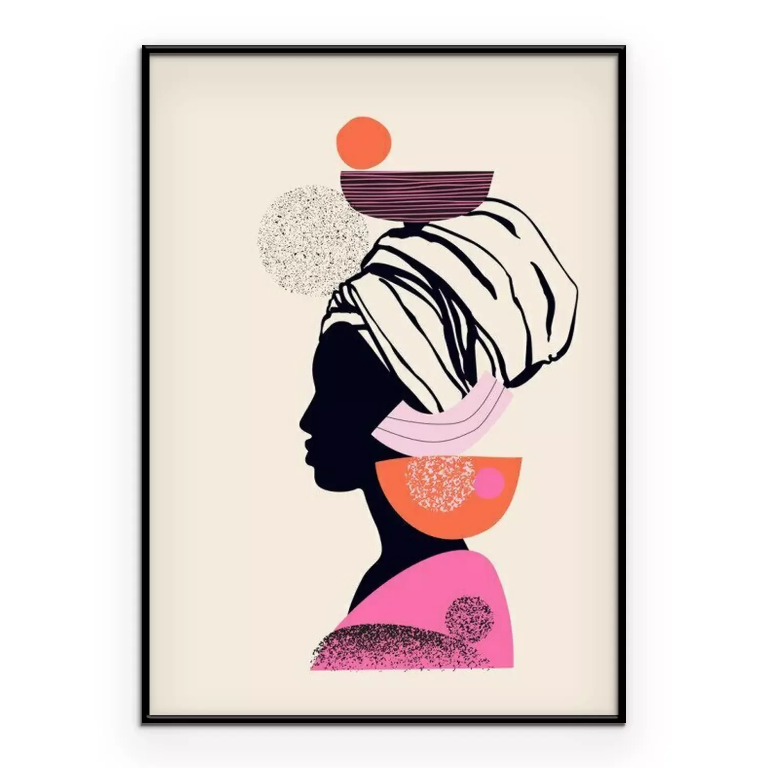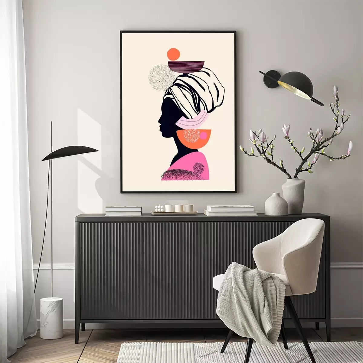 Poster: Natural beauty silhouettes drawing with geometrical shapes, grainy grunge textures, doodles