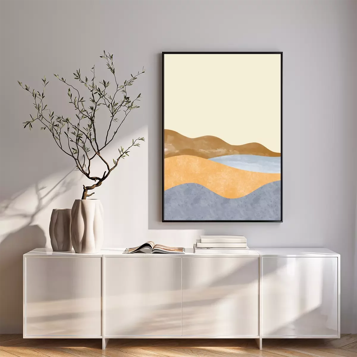 Poster: Natural Landscape background with hand painted illustrations. Mountain in poster design. Abstract arts background . Vector illustration