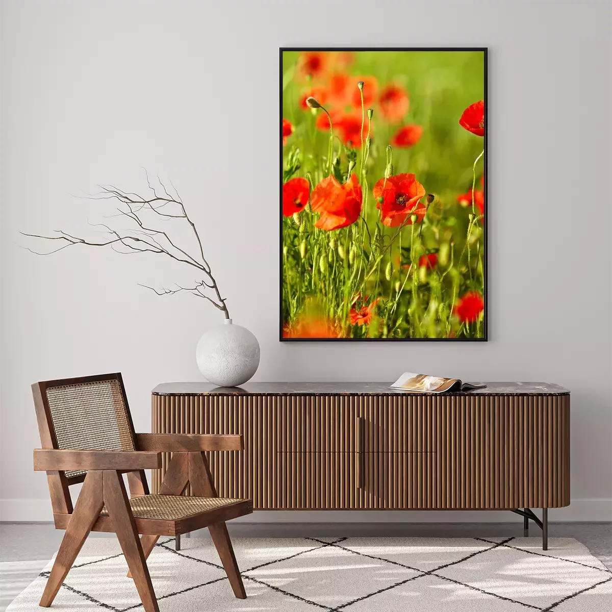 Poster: Natuur en landschappen met klaprozen op de achtergrond