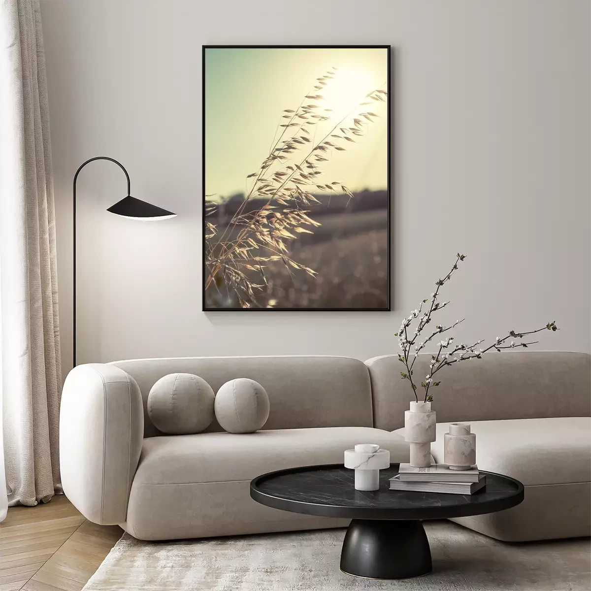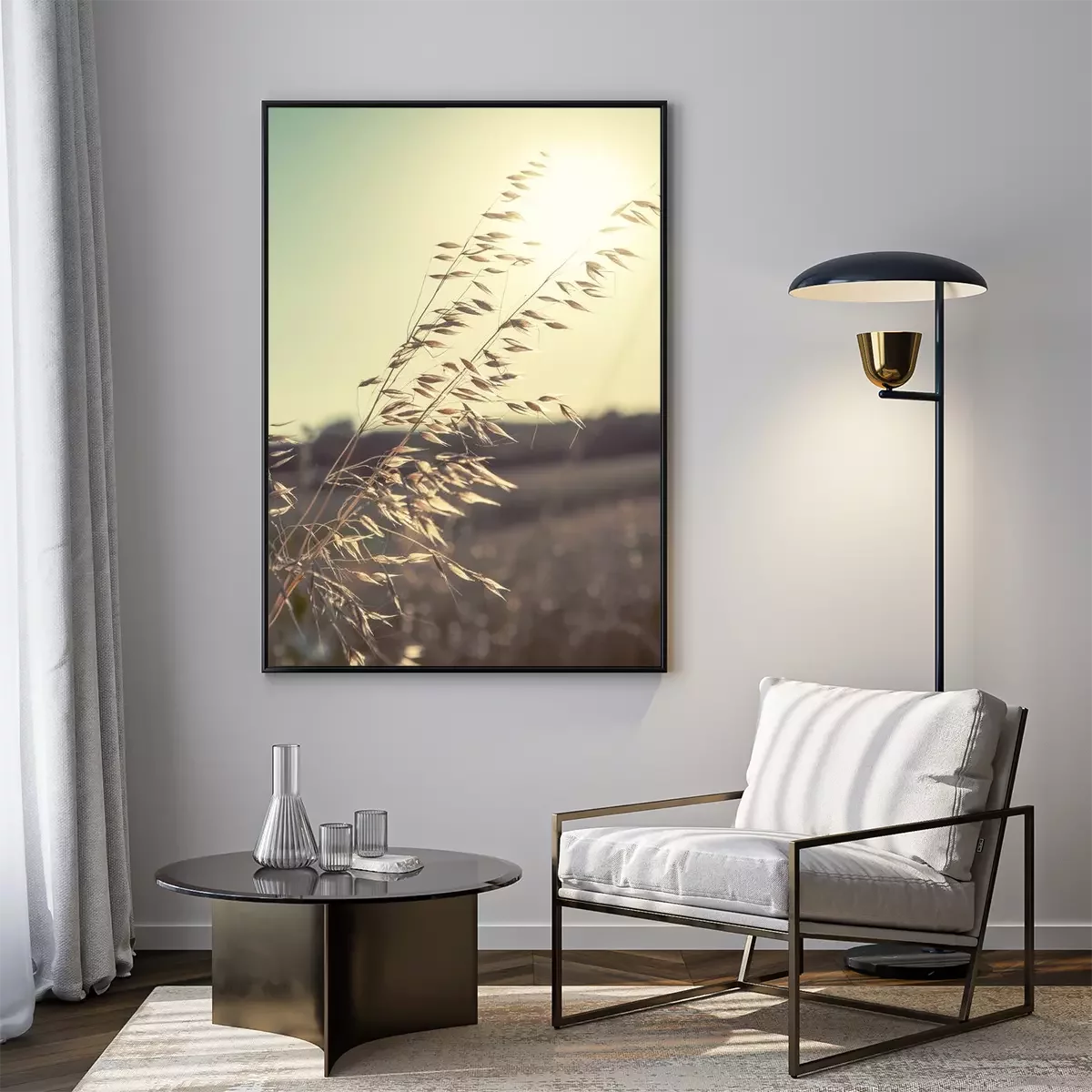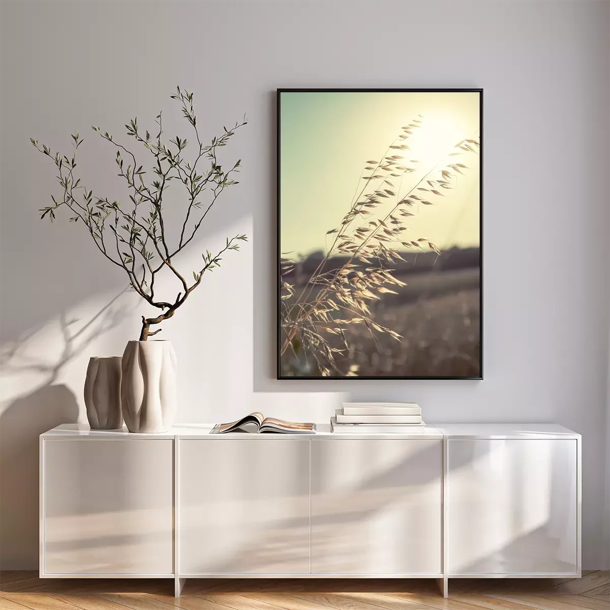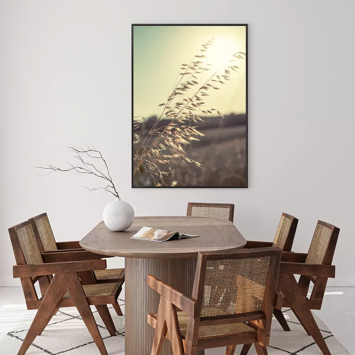 Poster: Natuur en landschappen van oren tegen de achtergrond van de zon