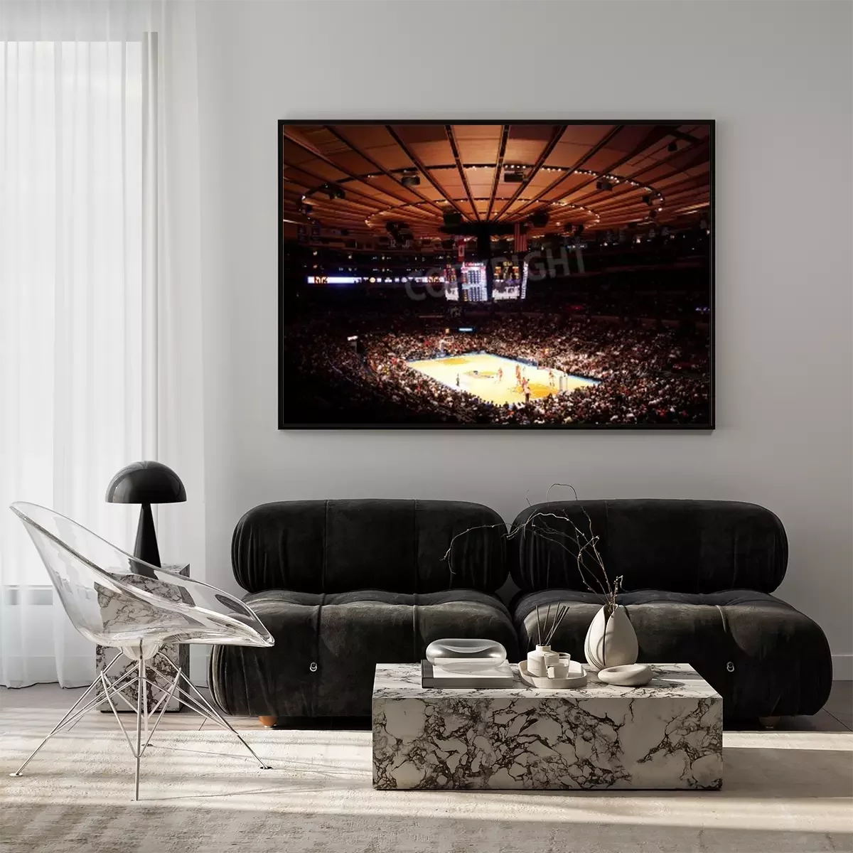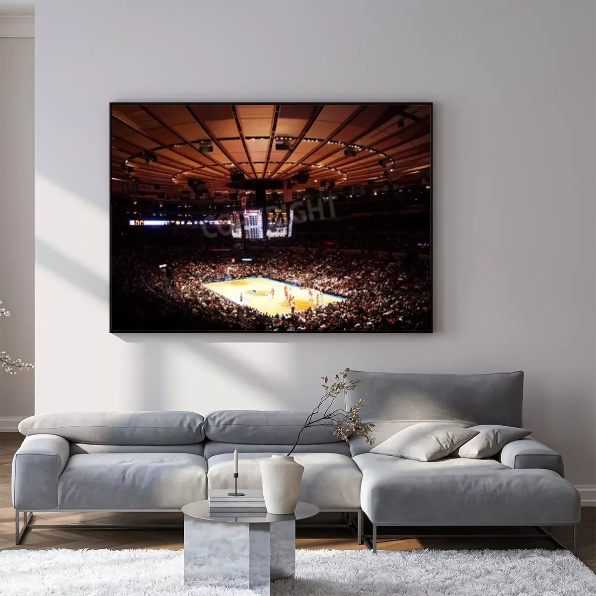 Poster: New York City, Verenigde Staten - 8 december 2010: Panorama van New York Knicks NBA wedstrijd tegen Toronto Raptors in Madison Square Garden
