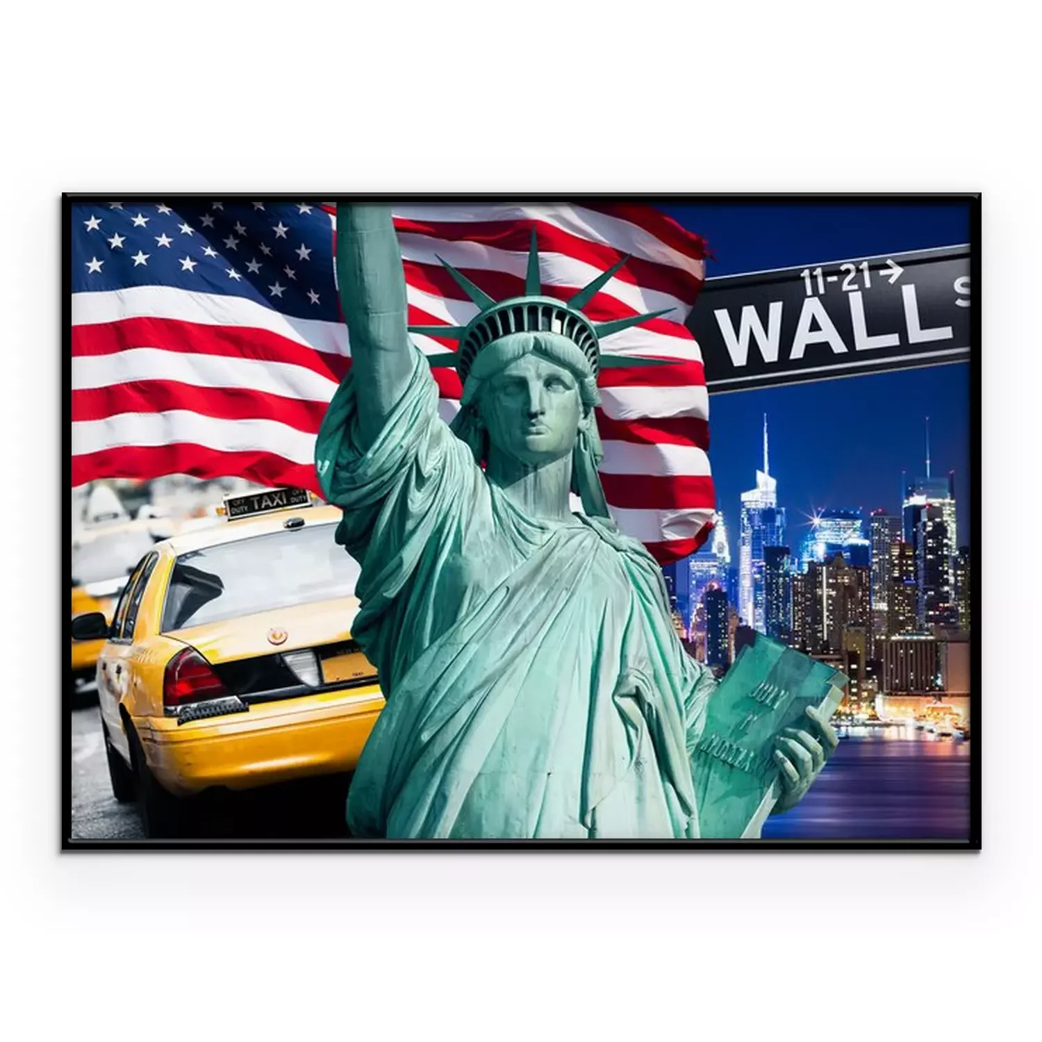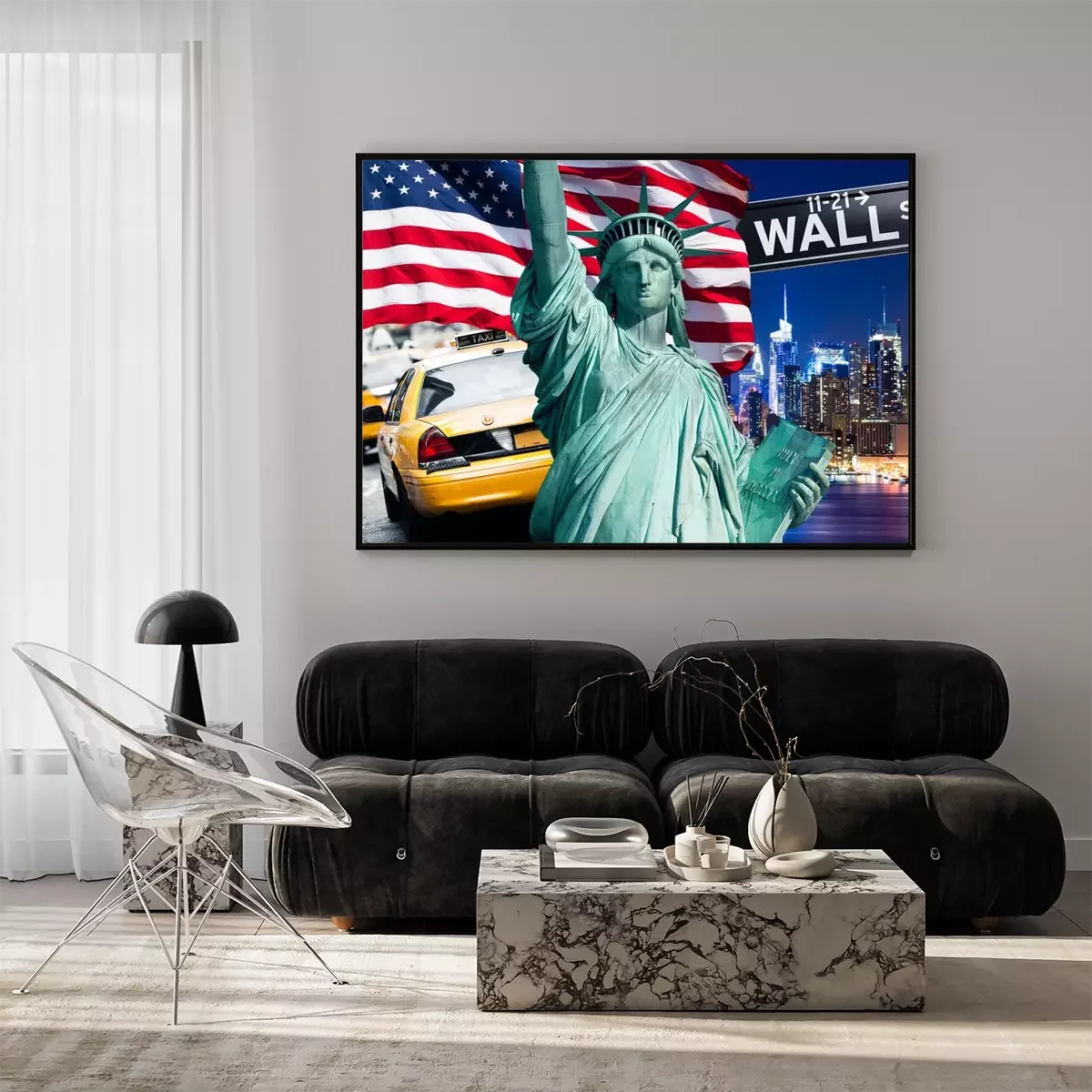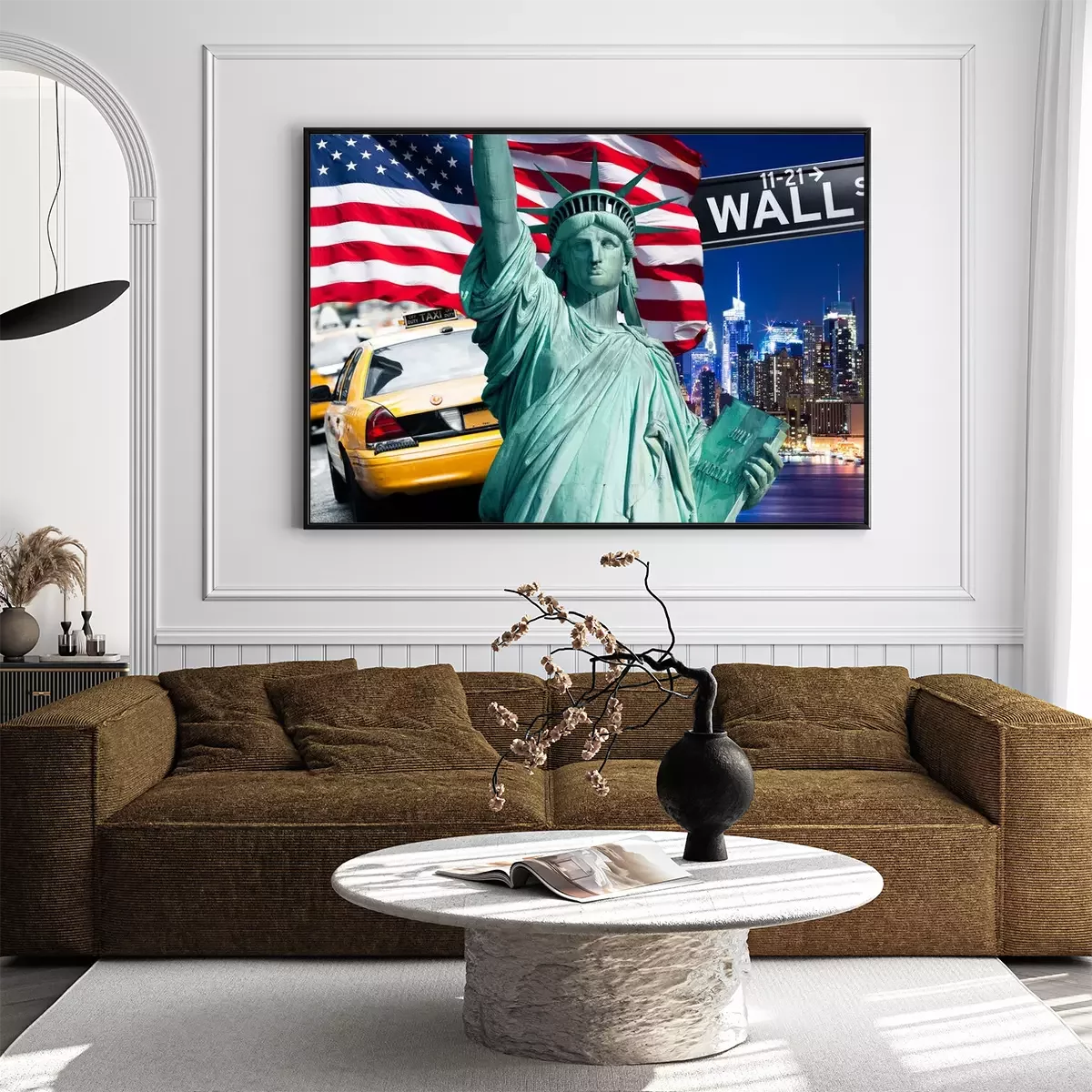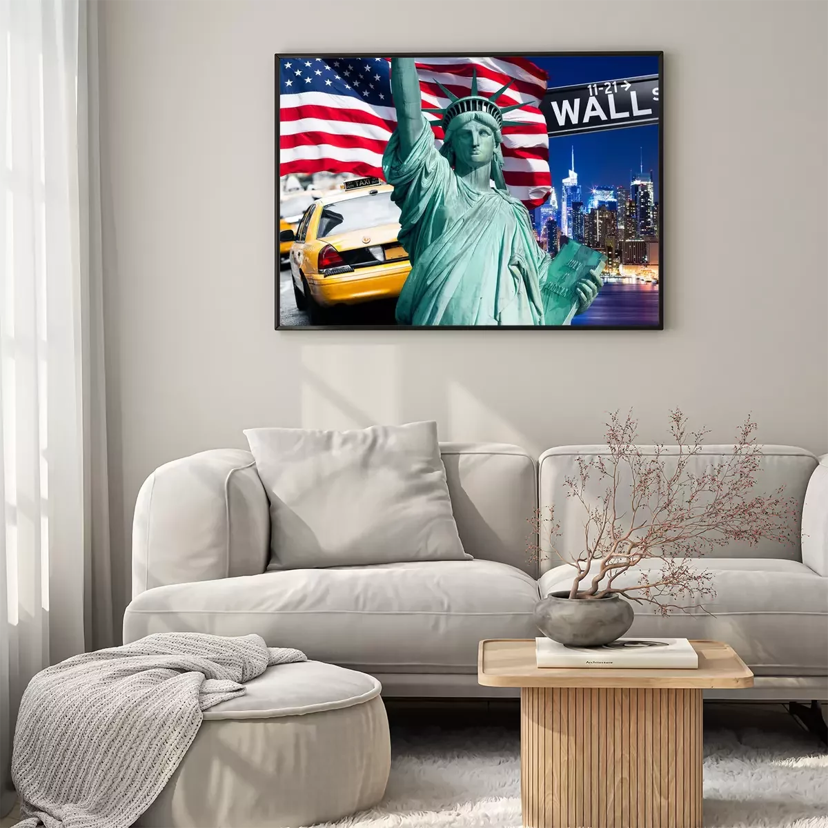 Poster New Yorkse taxi en het Vrijheidsbeeld