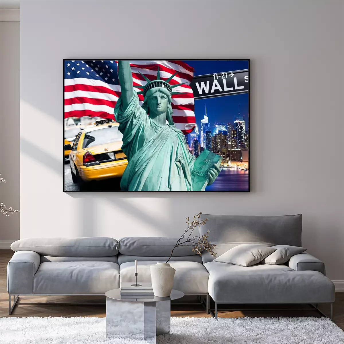 Poster: New Yorkse taxi en het Vrijheidsbeeld