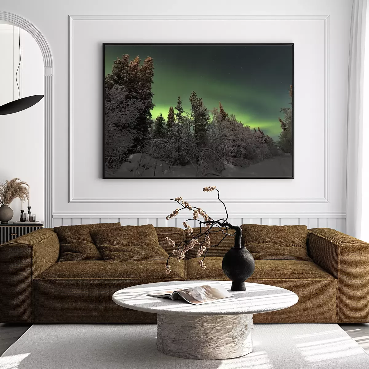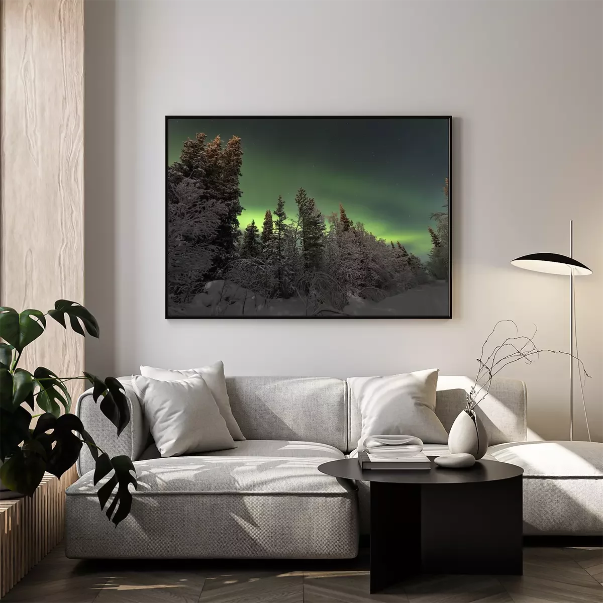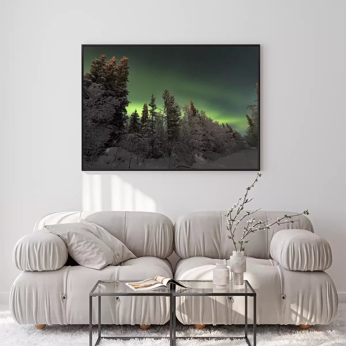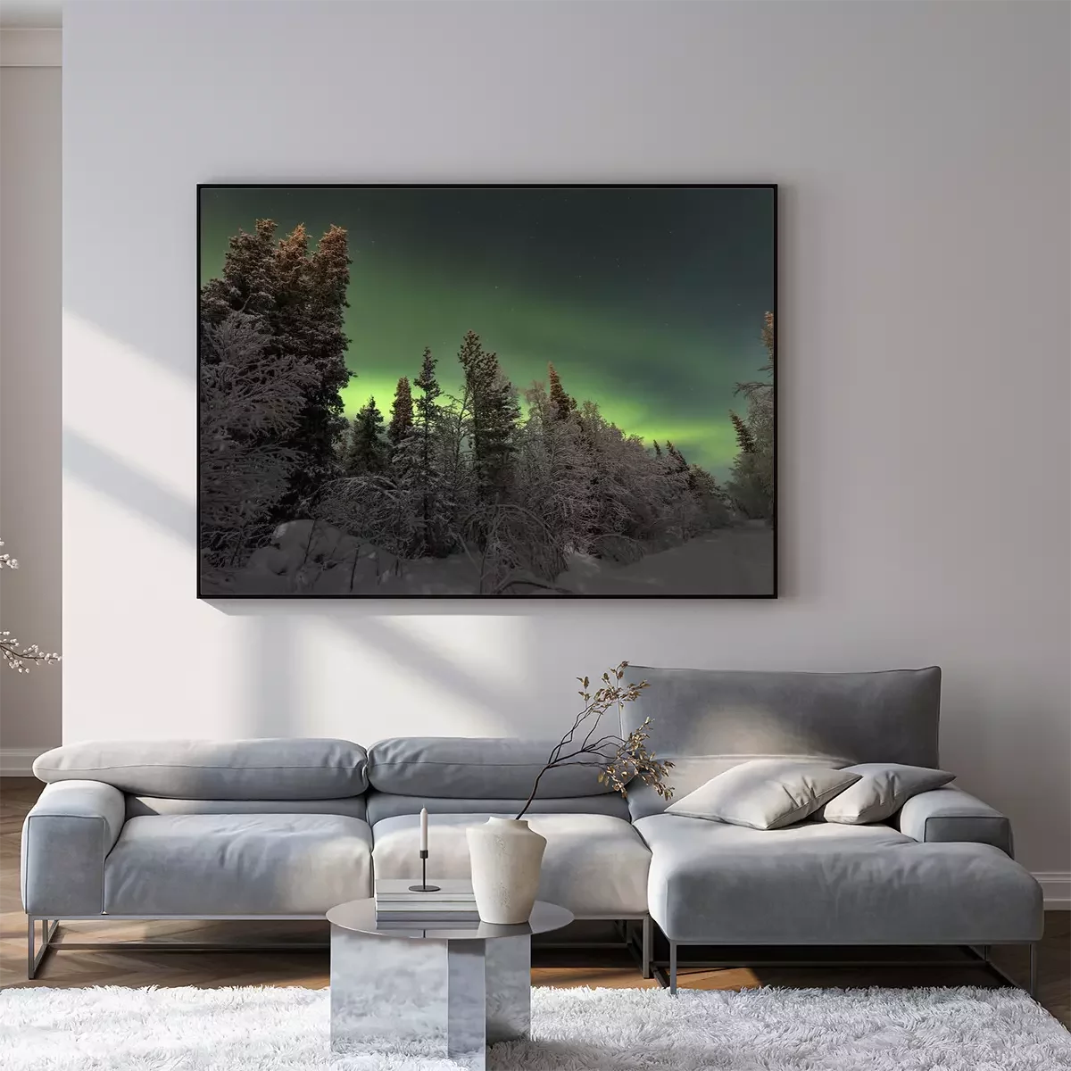 Poster: Noordelijke lichten in het sparrenbos