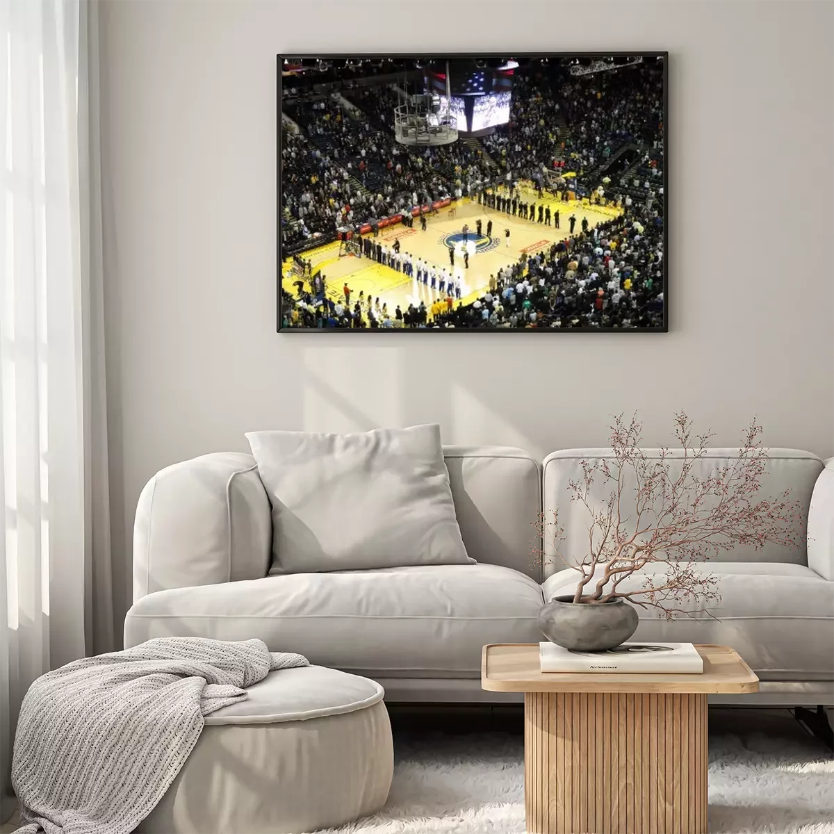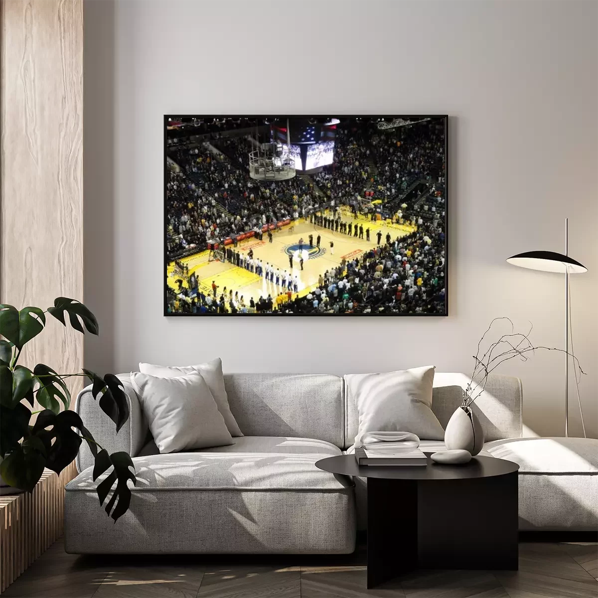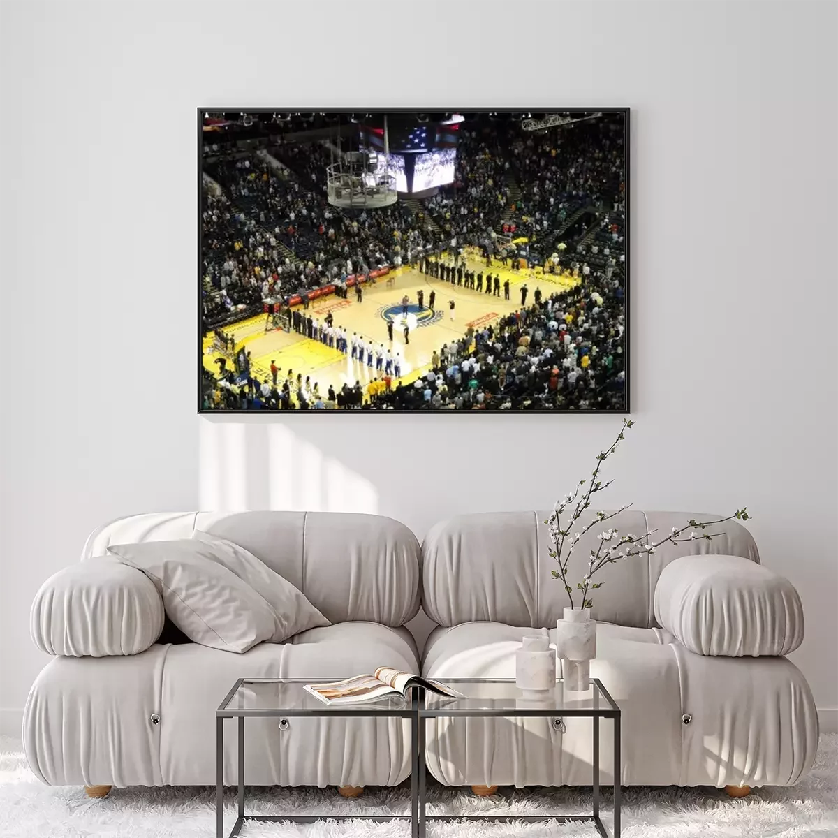 Poster: OAKLAND, CA - 22 februari: Celtics vs. Warriors: De spelers bevinden zich in lijnen tijdens het zingen van het volkslied bij Oracle Arena genomen, 22 februari 2011 Oakland Californië.