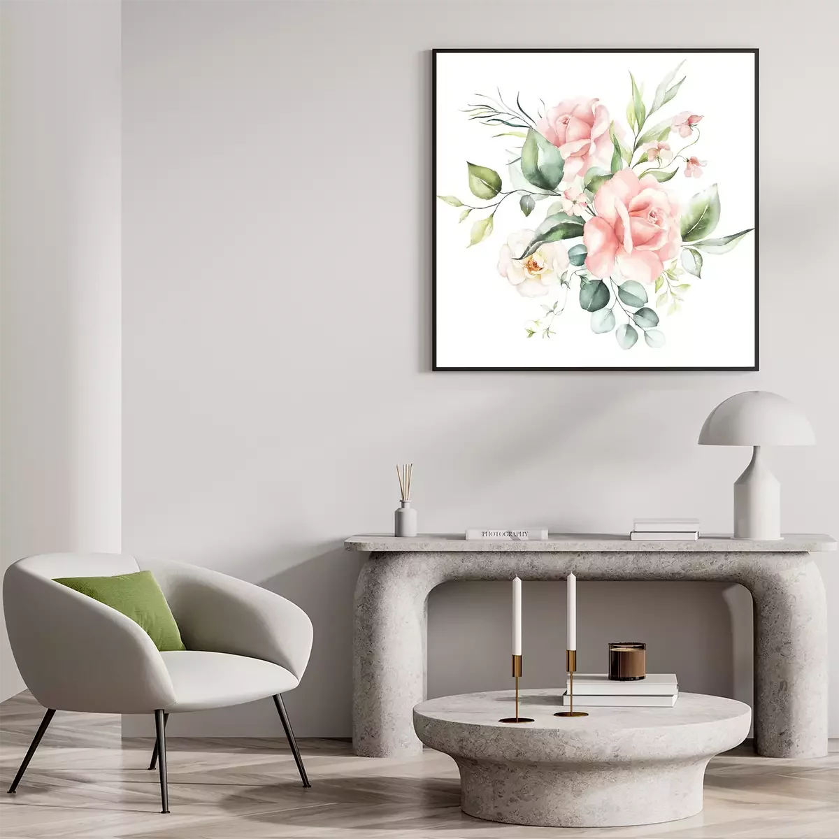 Seamless watercolor floral pattern - pink flowers, green leaves & branches on white background; for wrappers, wallpapers, postcards, greeting cards, wedding invitations, romantic events.