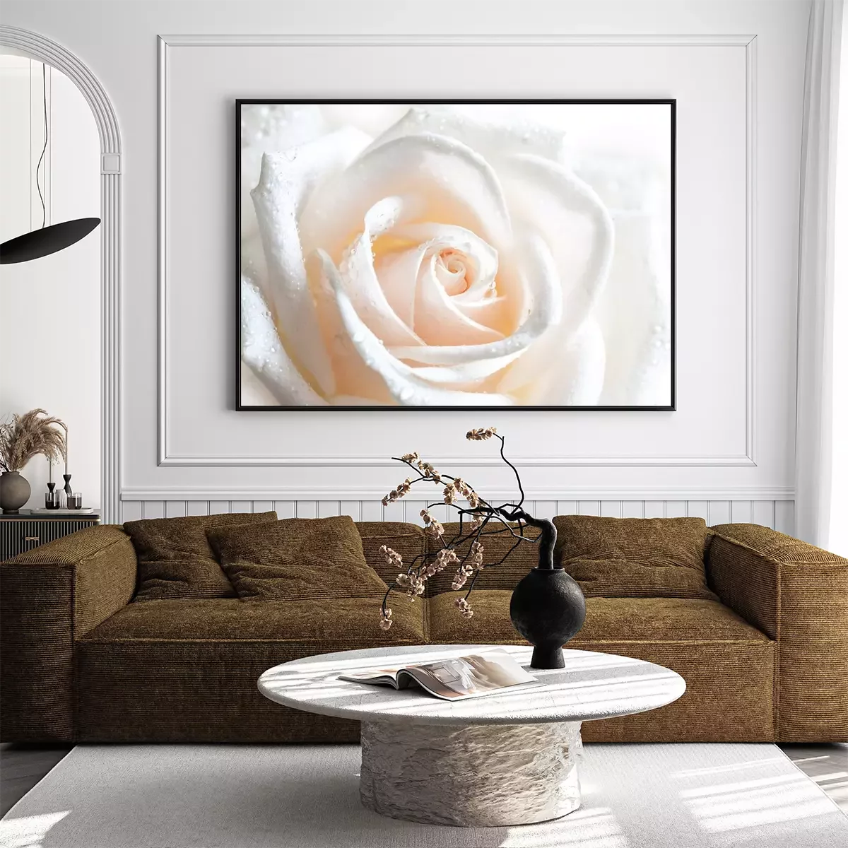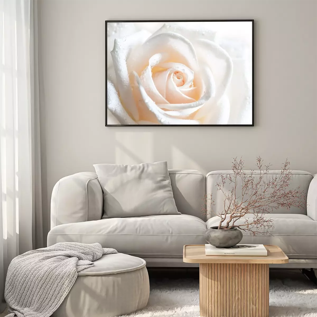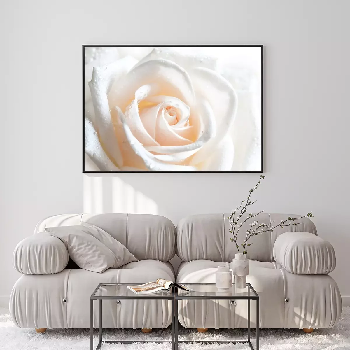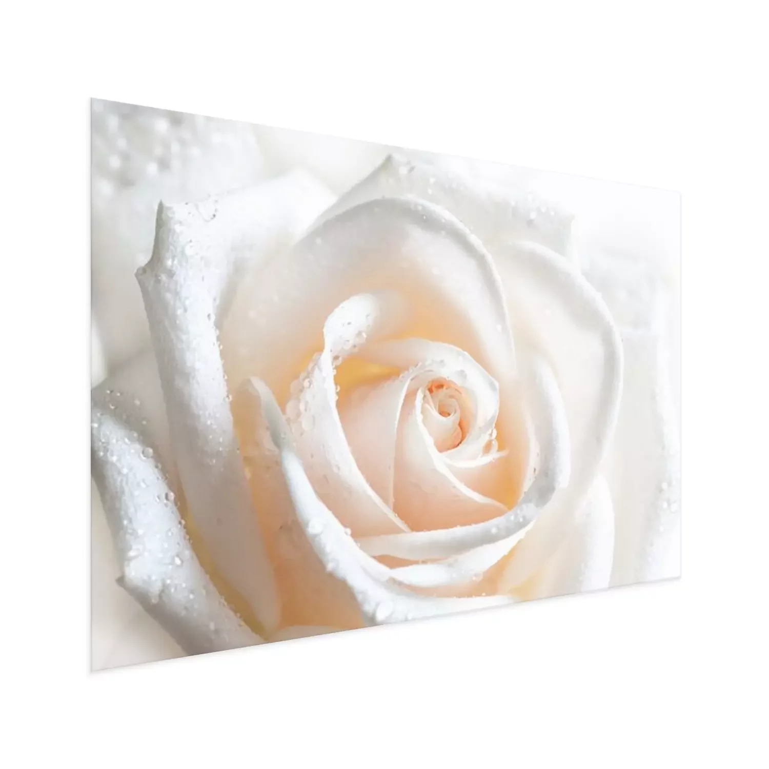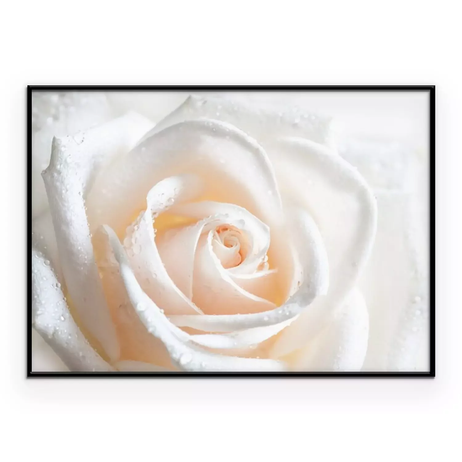 Poster: Ochtendrozen witte bloemblaadjes met dauwdruppels