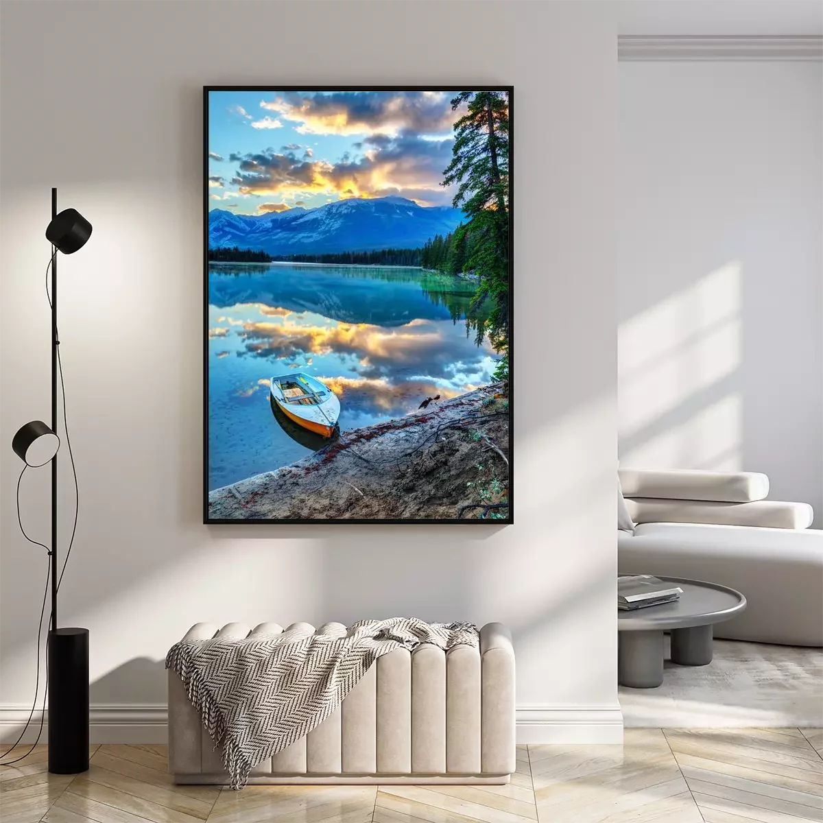 Poster: Ochtendzonsopgang over Edith Lake in Nationaal Park Jasper