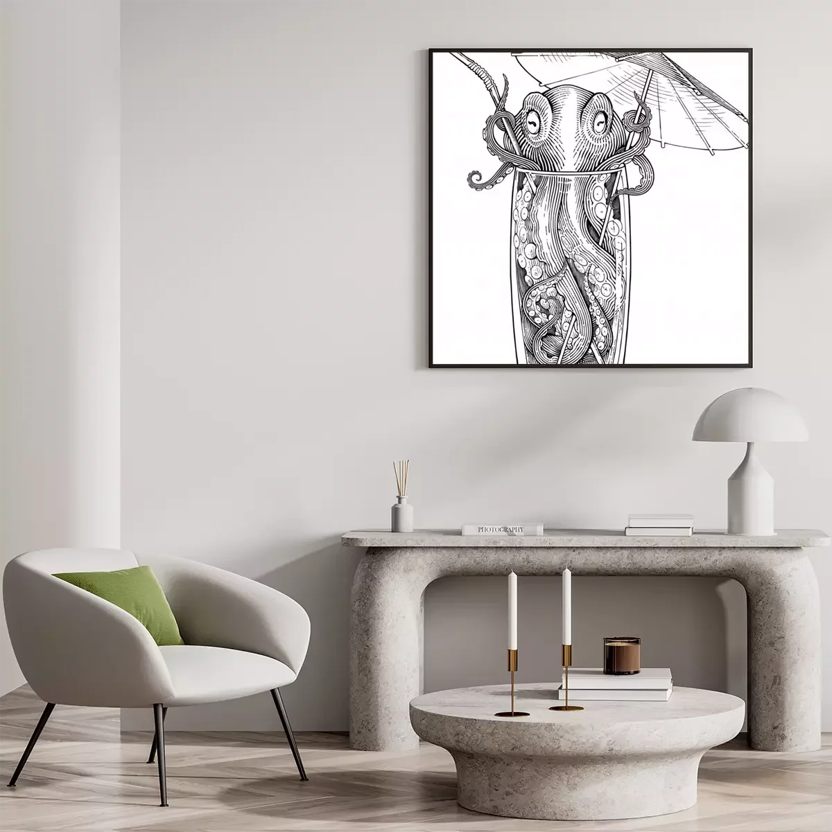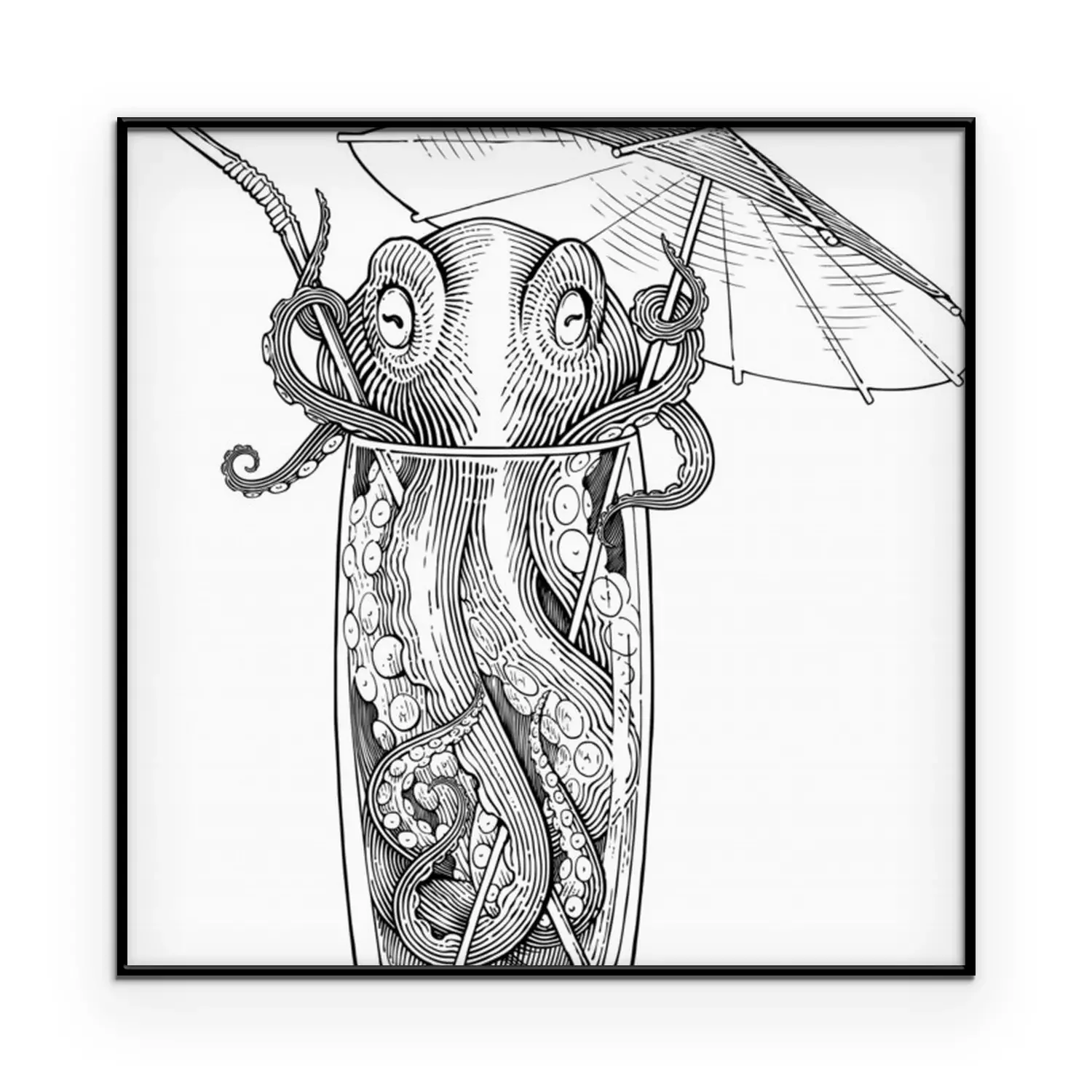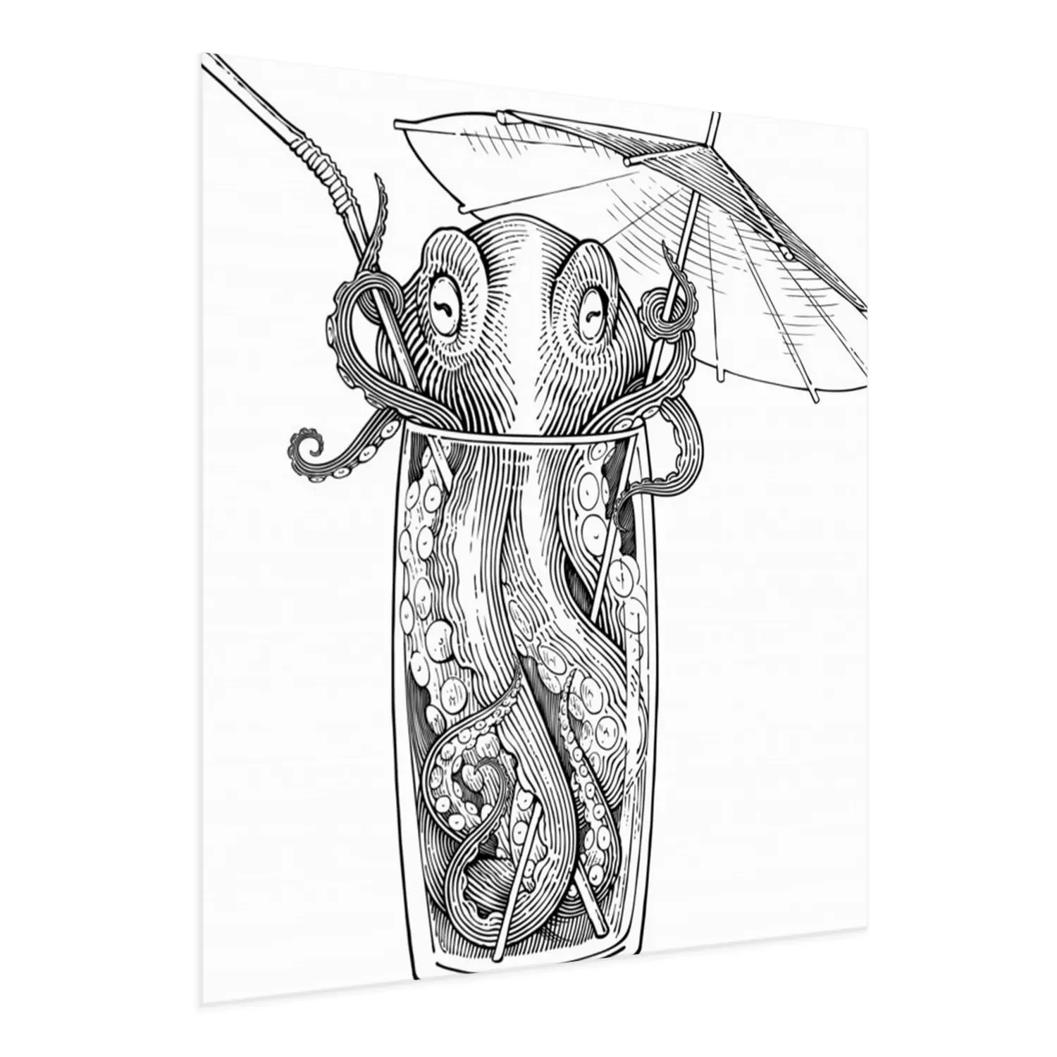 Poster: Octopus in een drankje met een paraplu