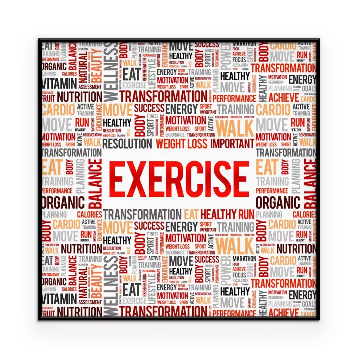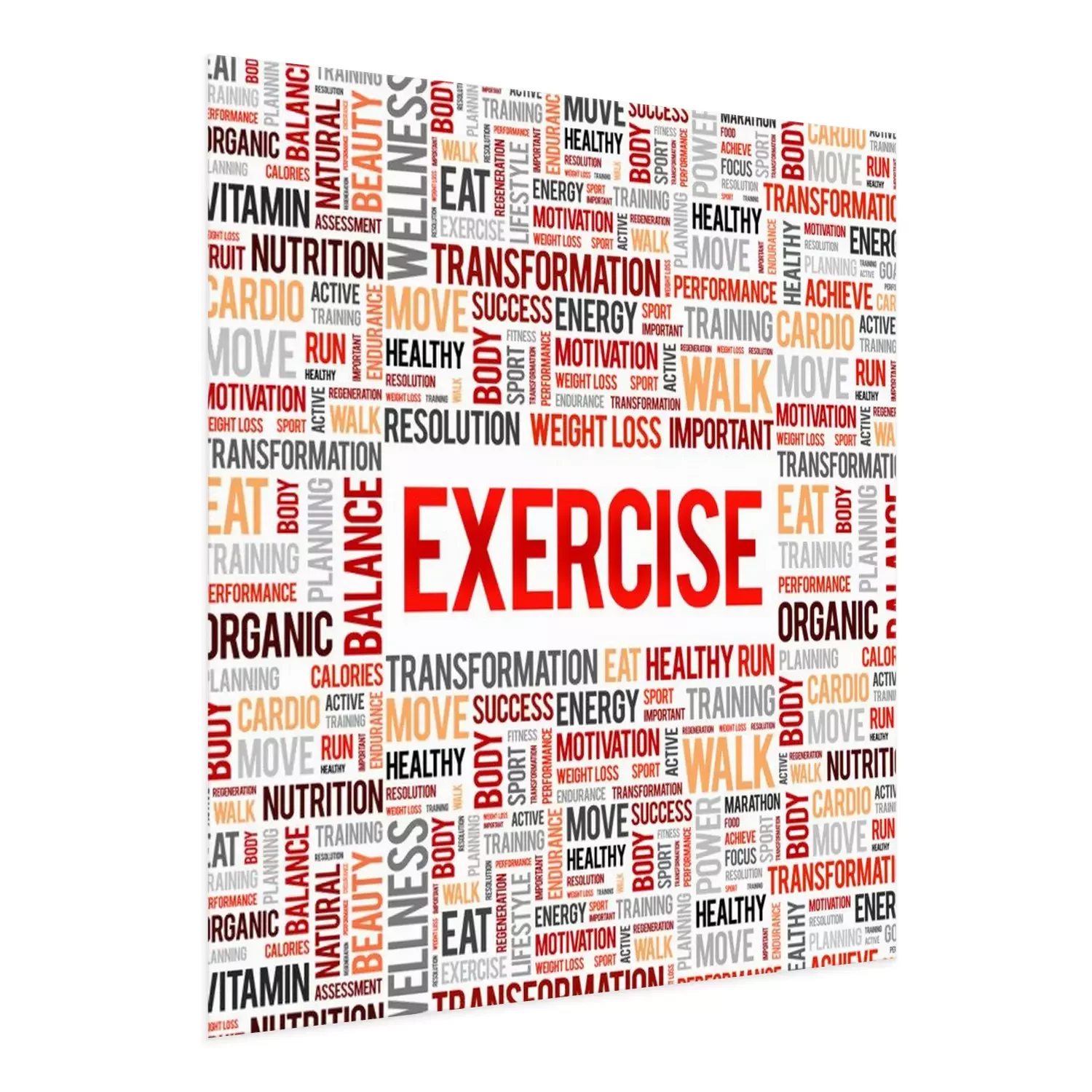 Poster: OEFENING word cloud achtergrond, gezondheid concept