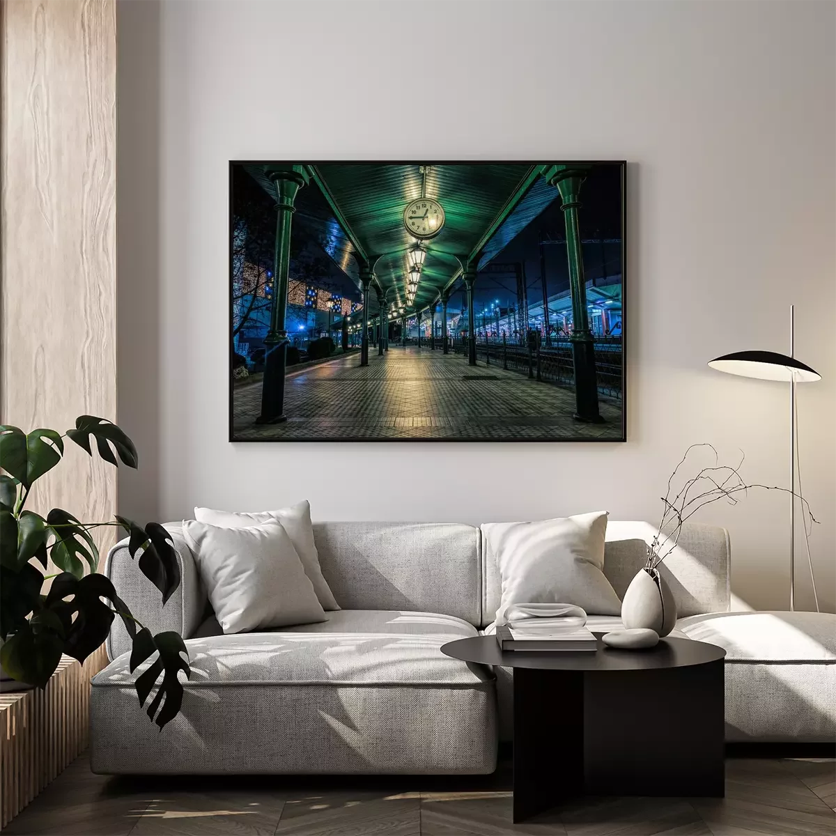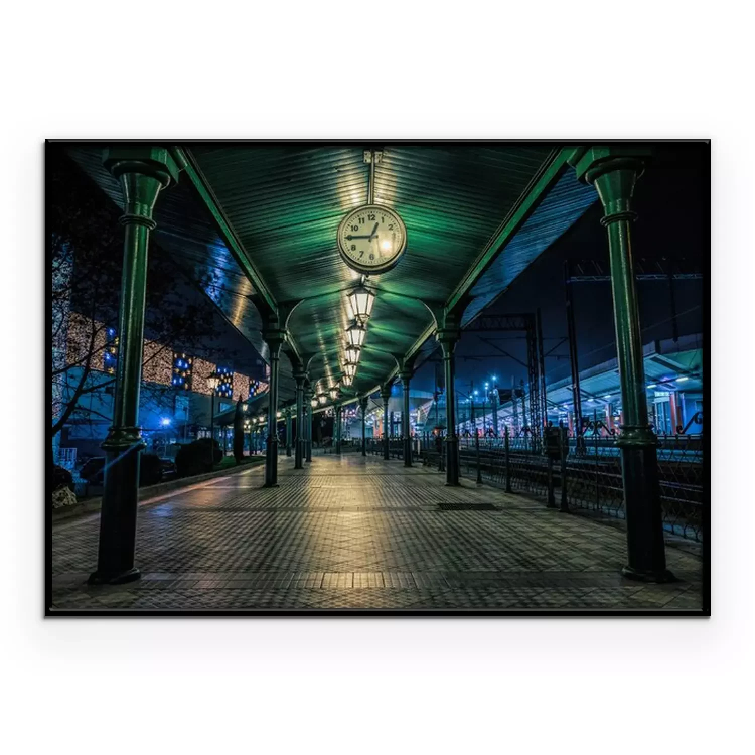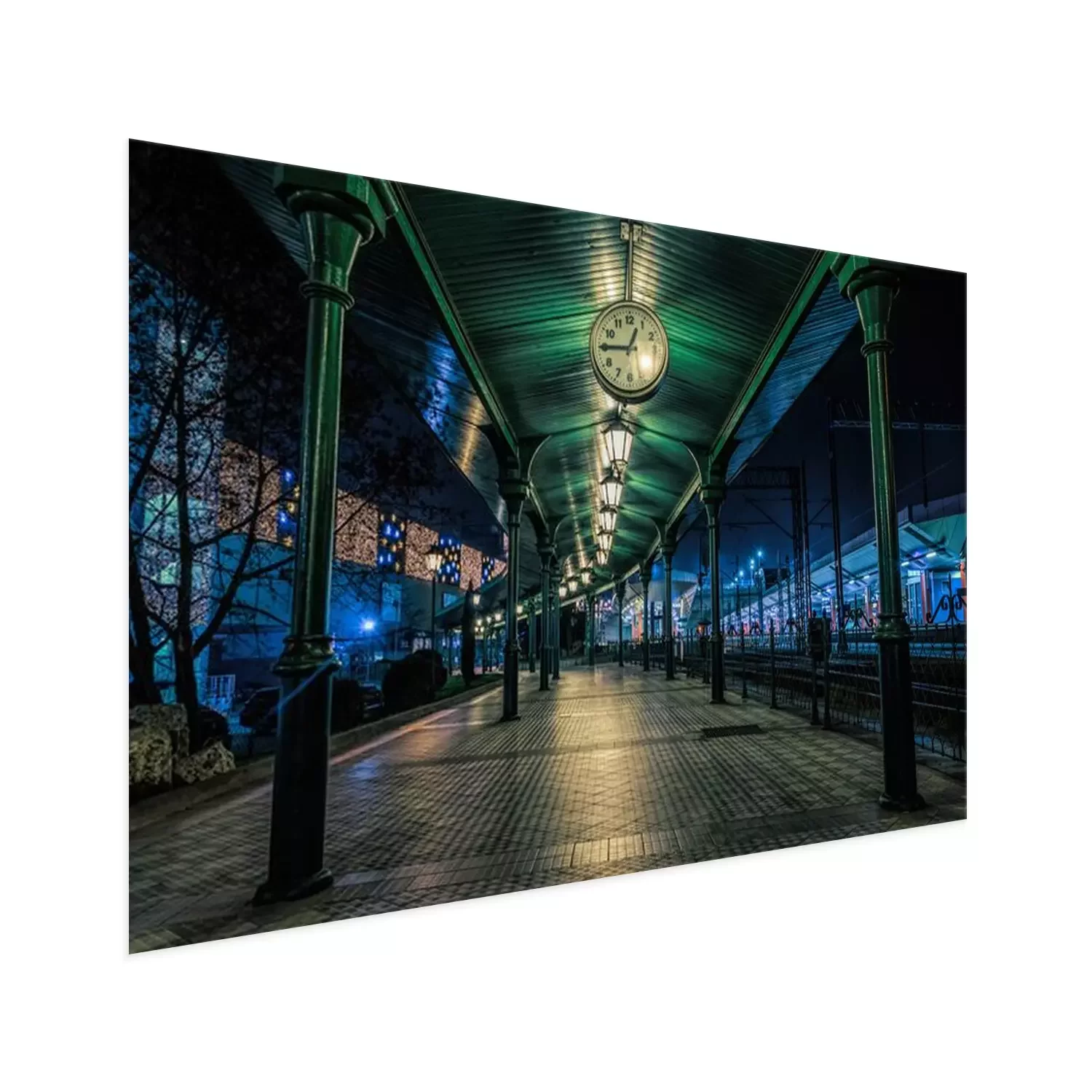 Poster: Old railway platform in Krakow, Poland. Christmas Eve