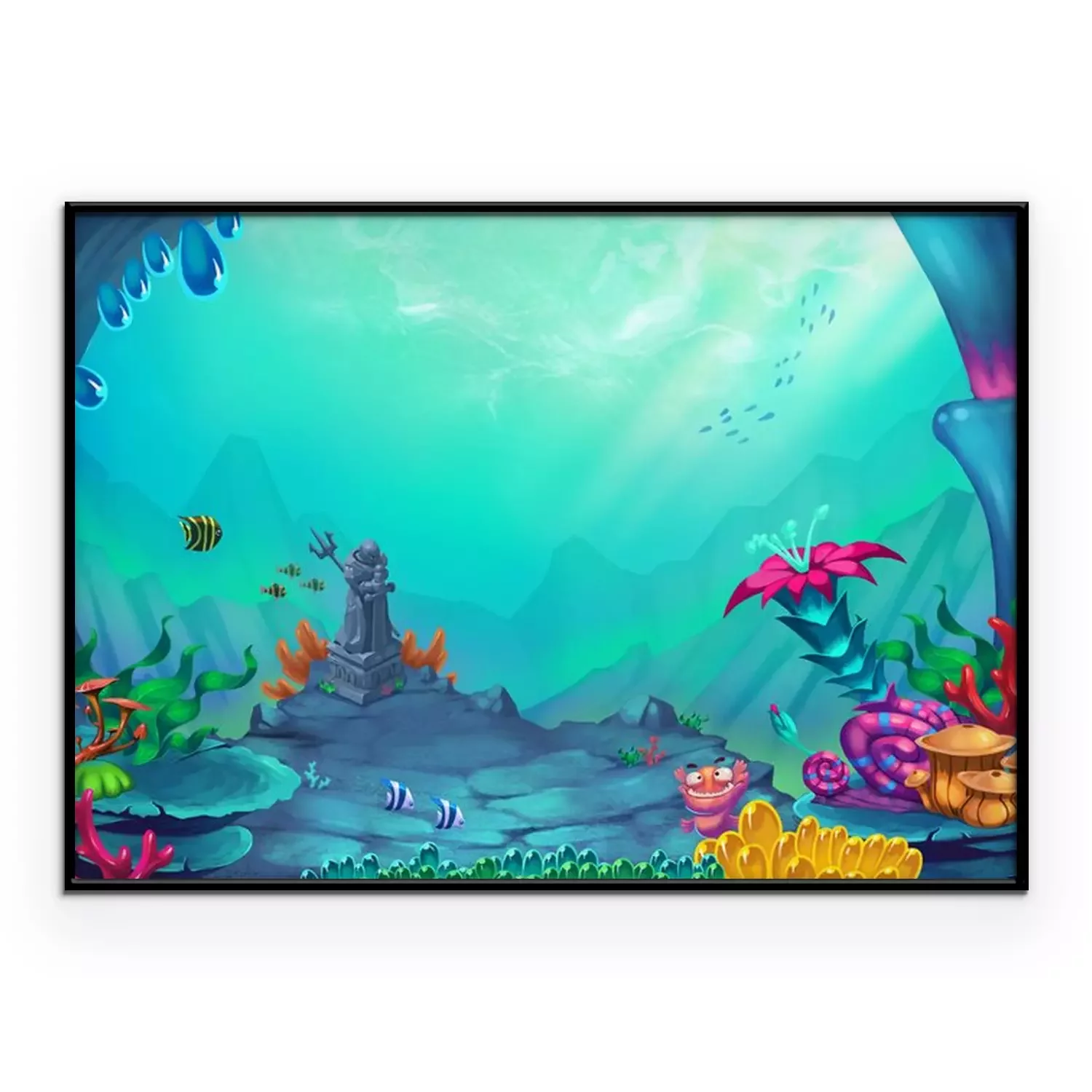 Poster: Onderwaterwereld en Poseidon-beeldhouwwerk