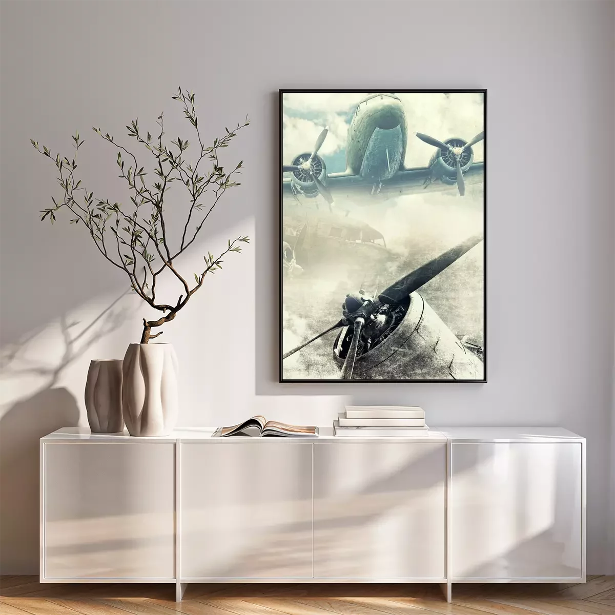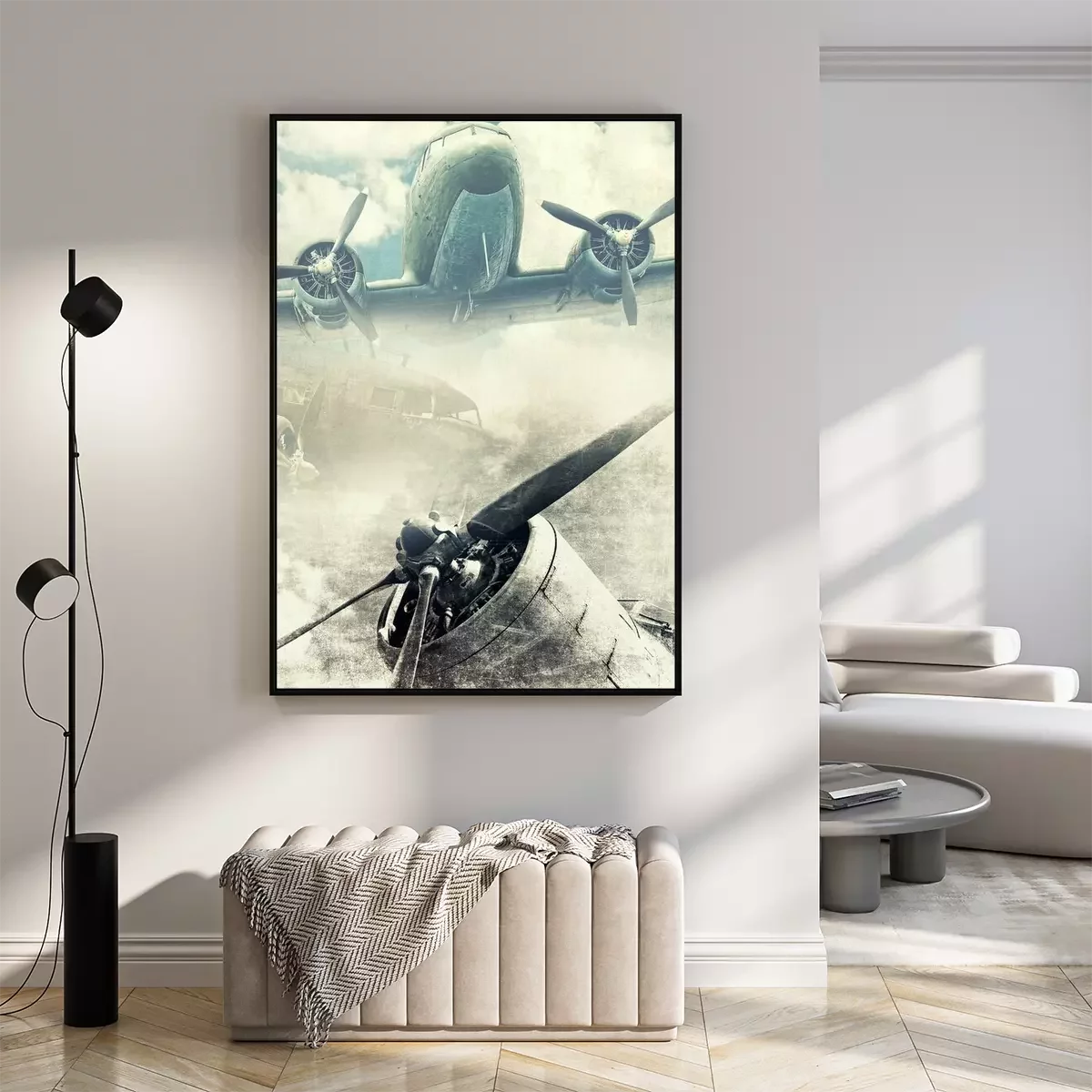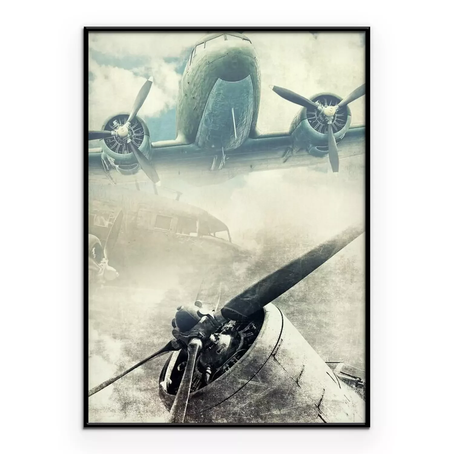 Geïsoleerde vintage militaire postkaart, vliegtuigmotoren