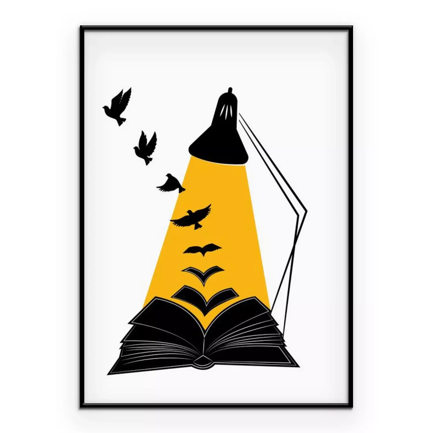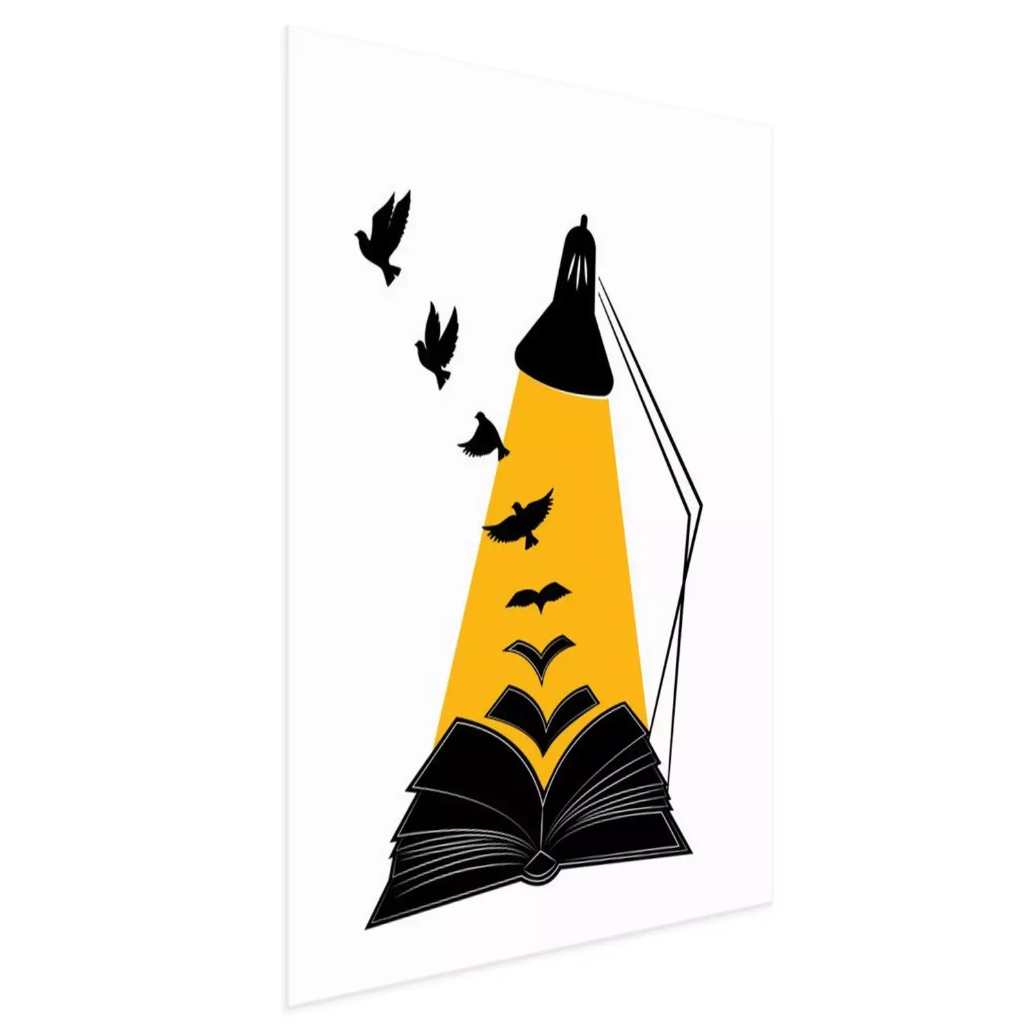 Poster Open book illustration with flying birds silhouettes, vector. Synonym Education gives you wings. Poster design isolated on white background, graphic design, wall decals, wall artwork