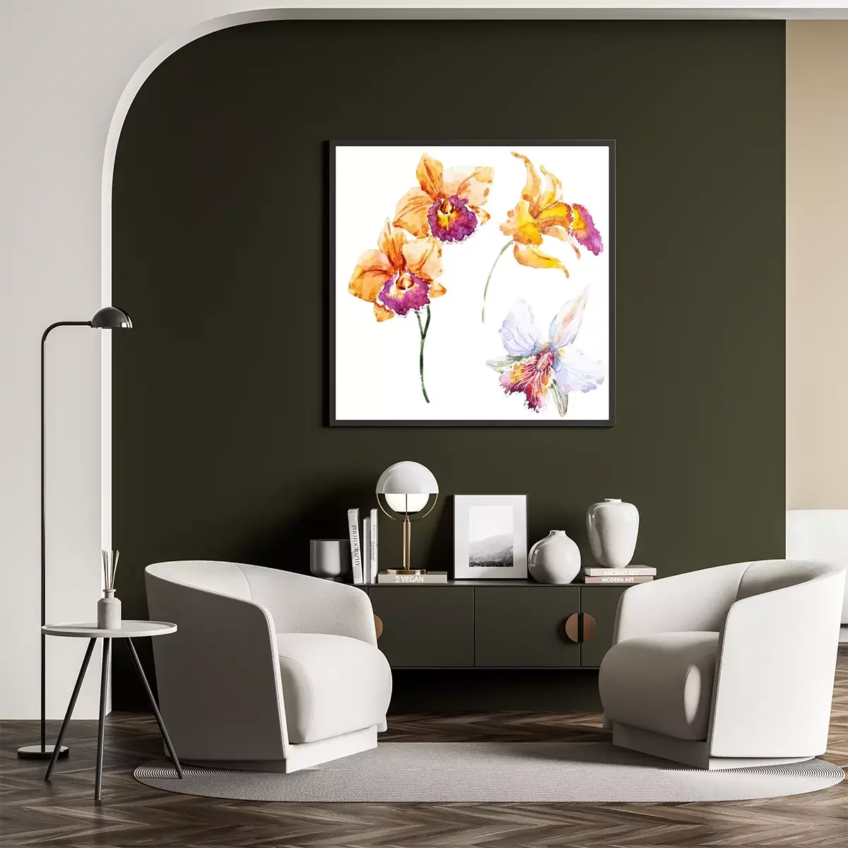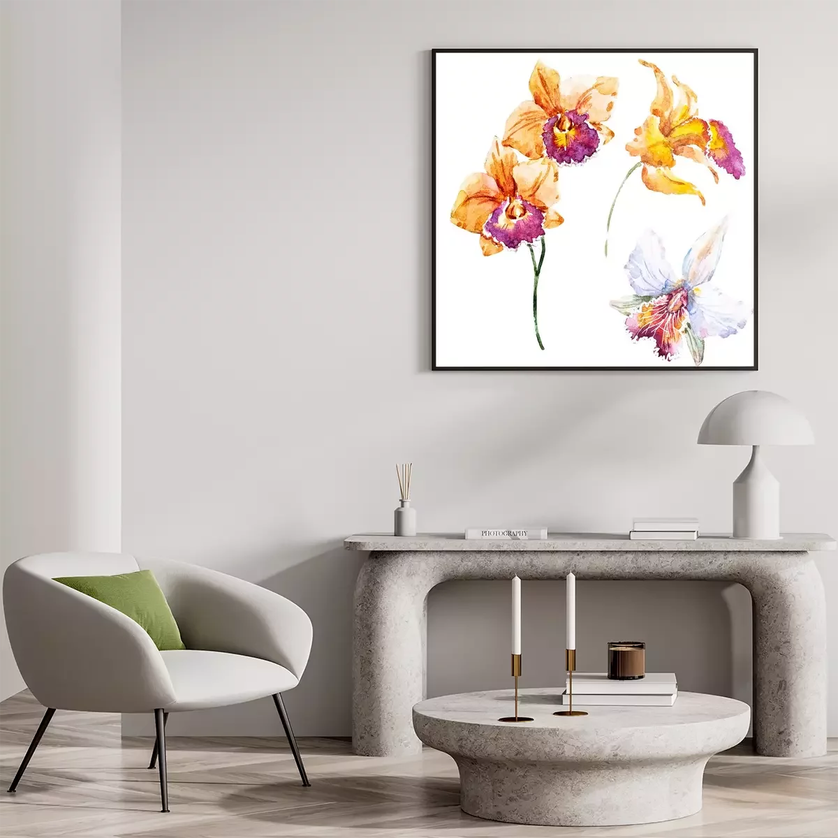 Poster: Oranje orchideebloemblaadjes geschilderd met waterverf